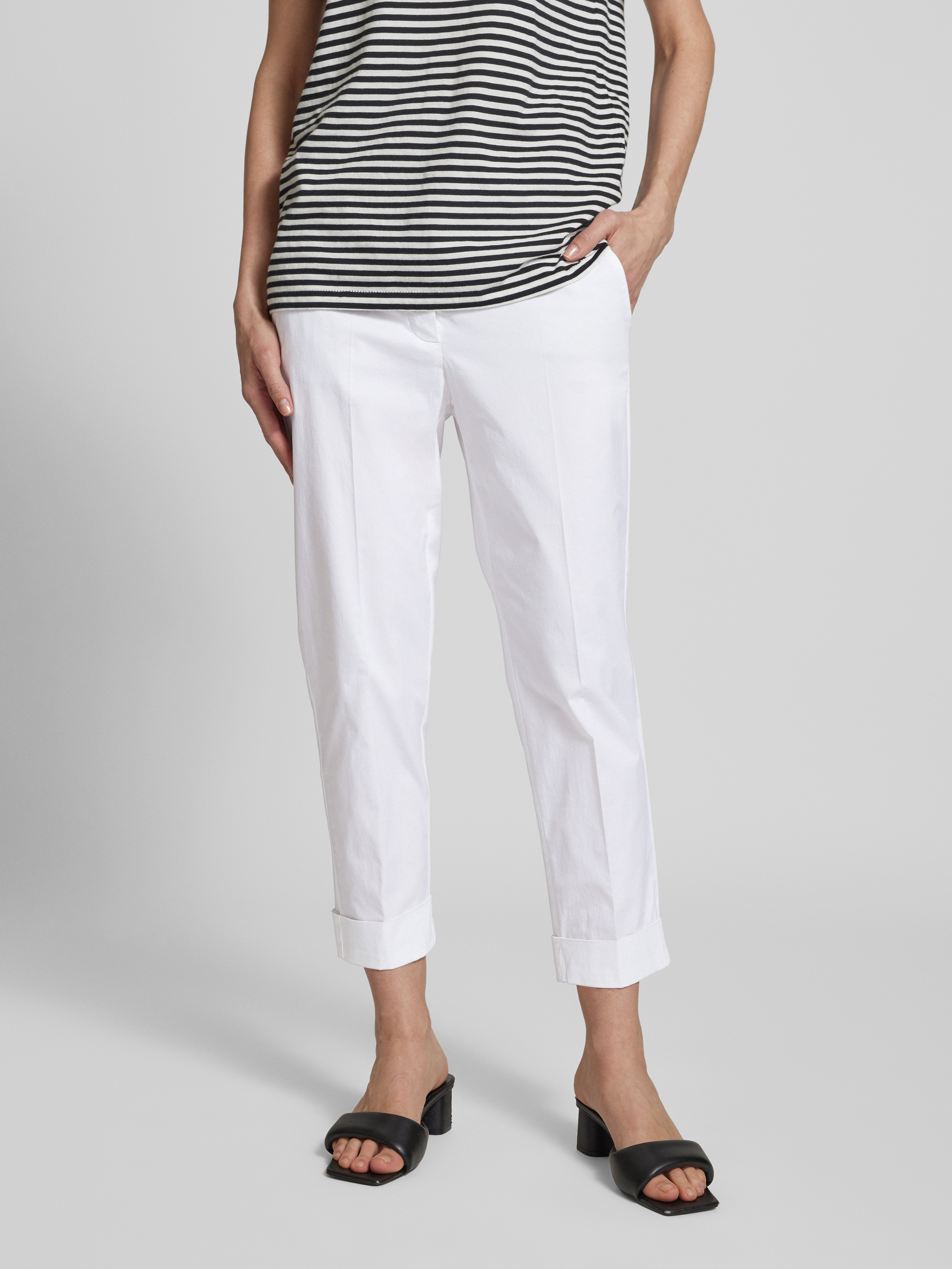 Chinosy o skróconym kroju regular fit model ‘DORA’ - biały