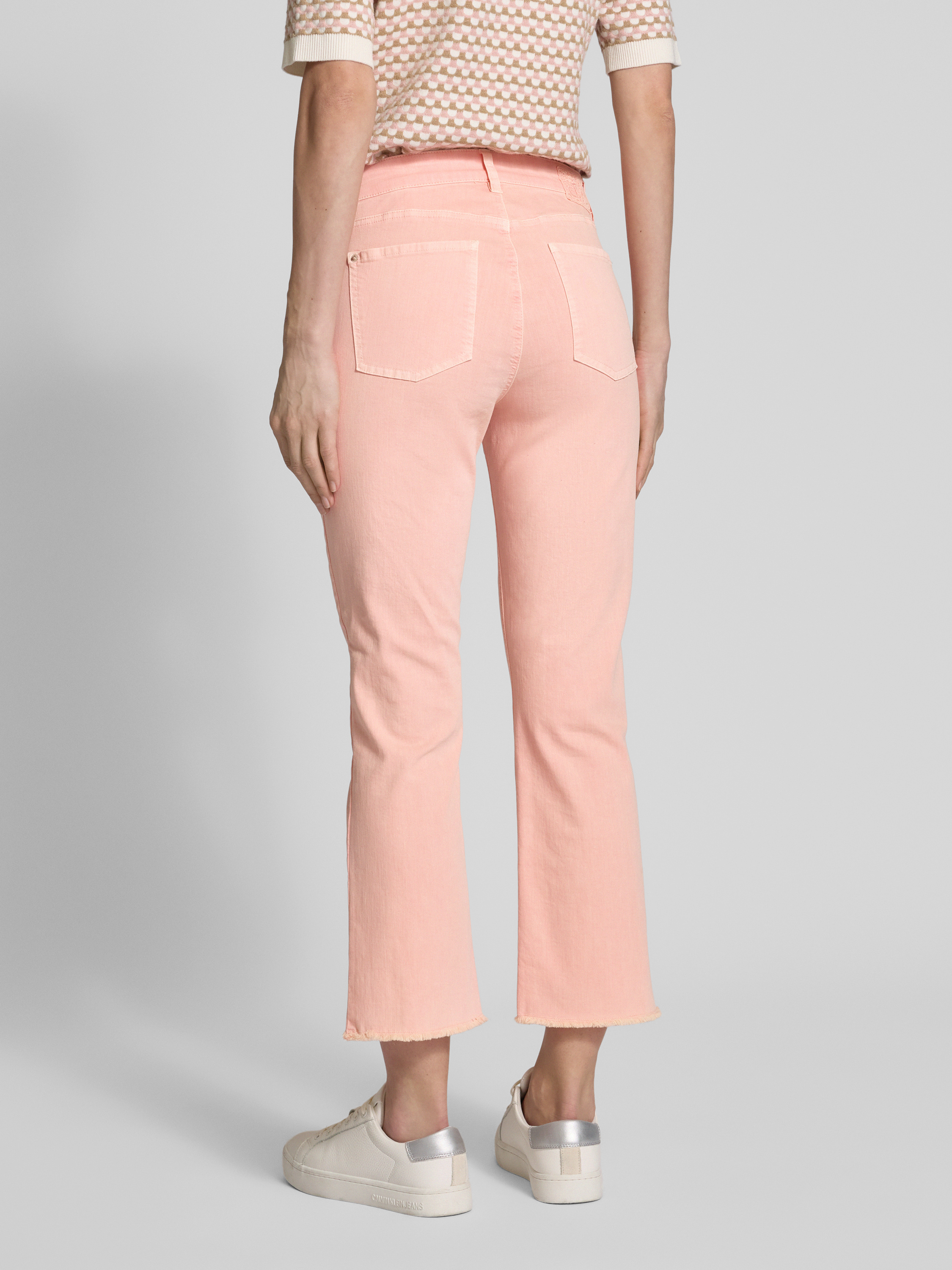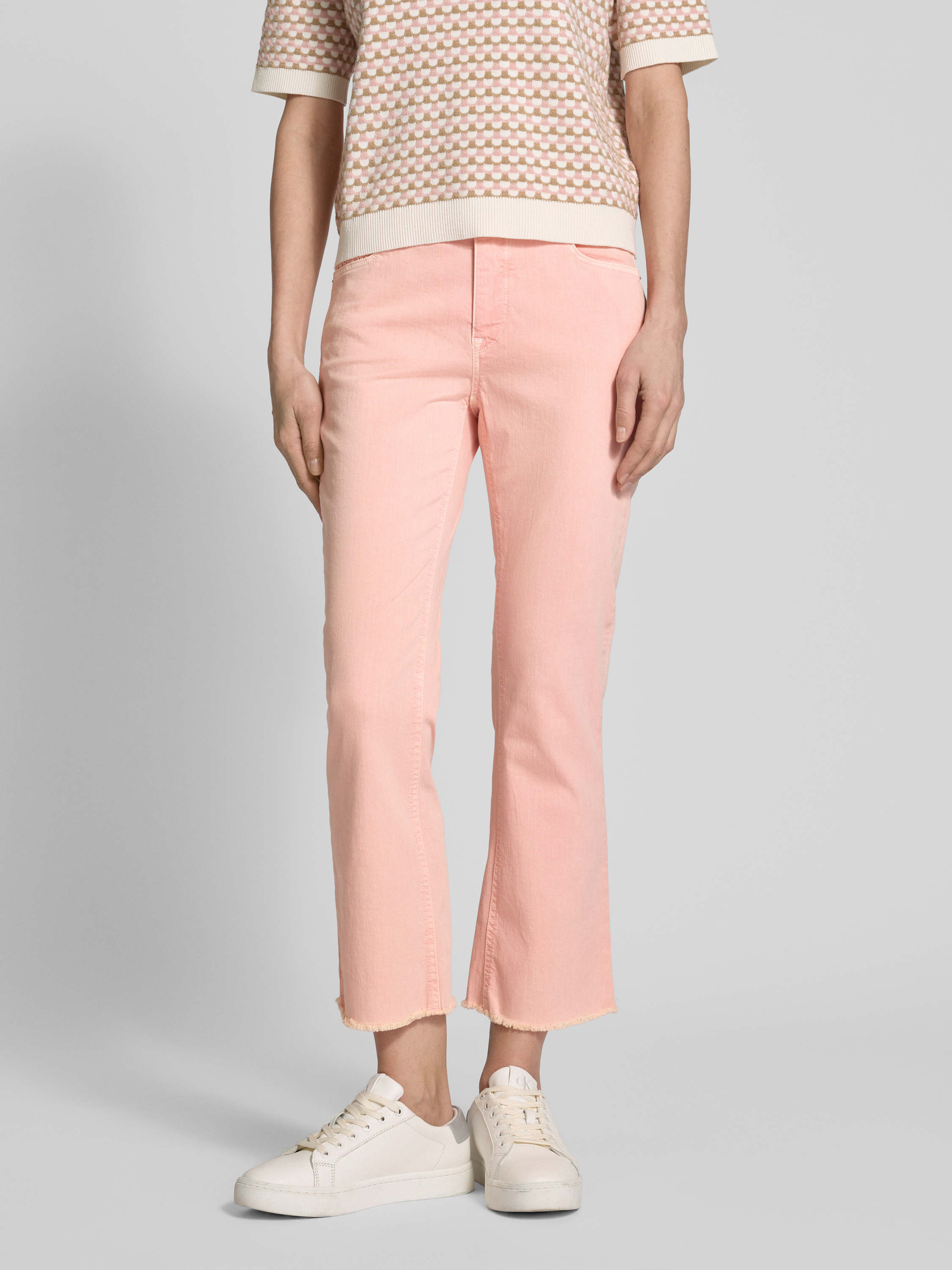 Jeansy o kroju regular fit z frędzlami - różowy