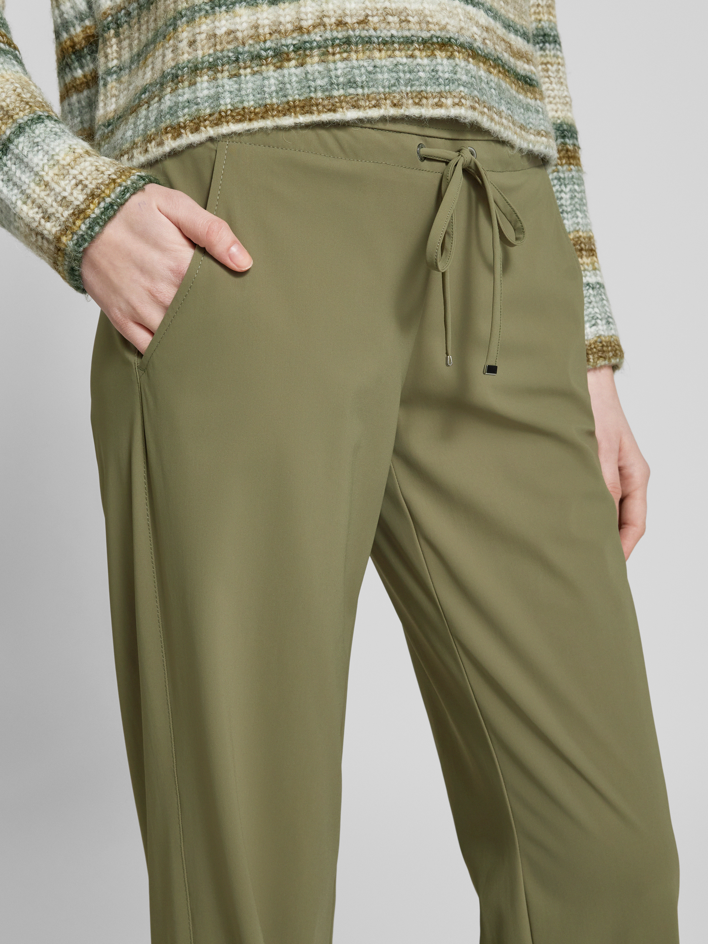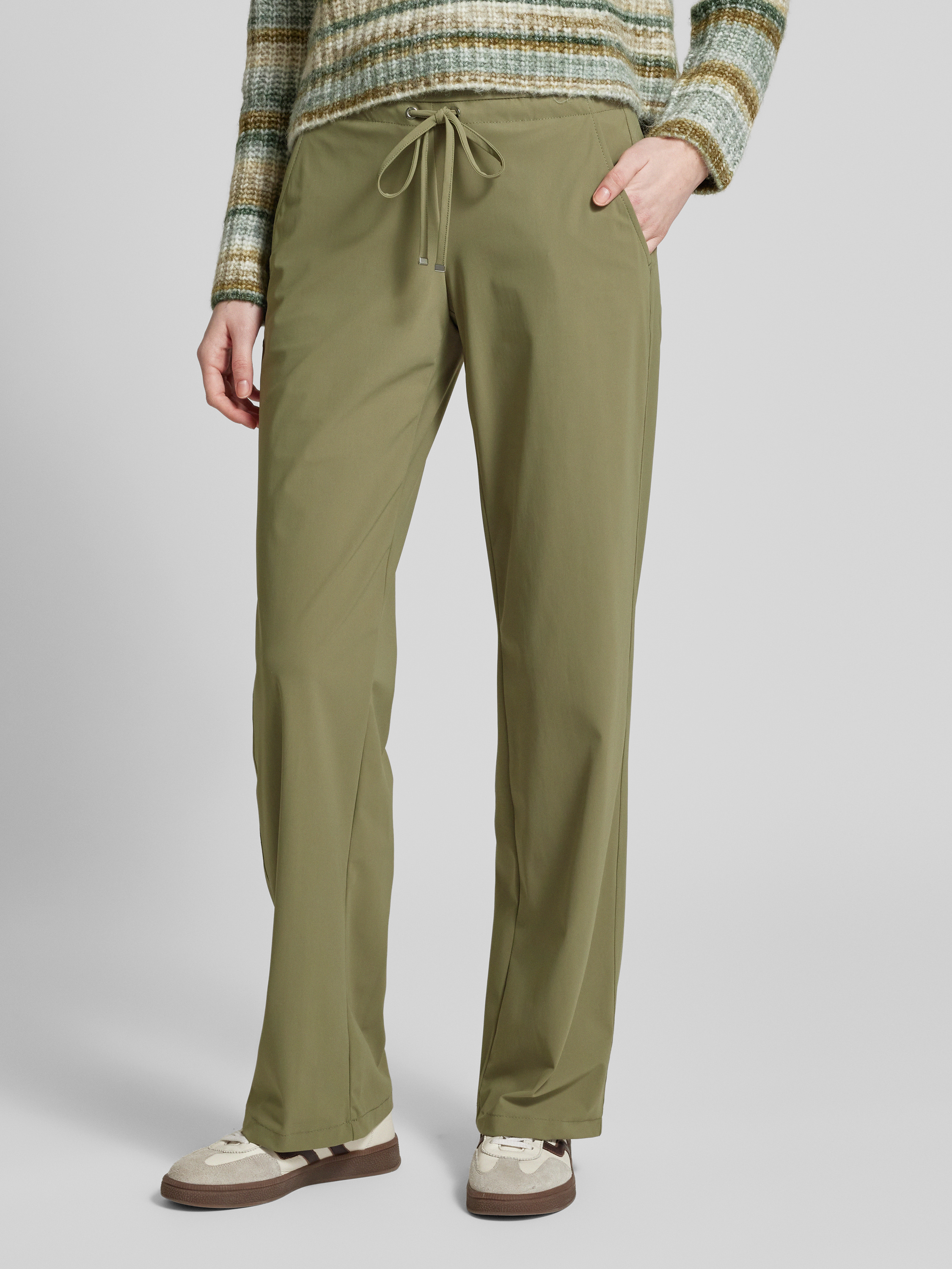 Spodnie dresowe z prostą nogawką i elastycznym pasem model ‘CANDICE’ - oliwkowy