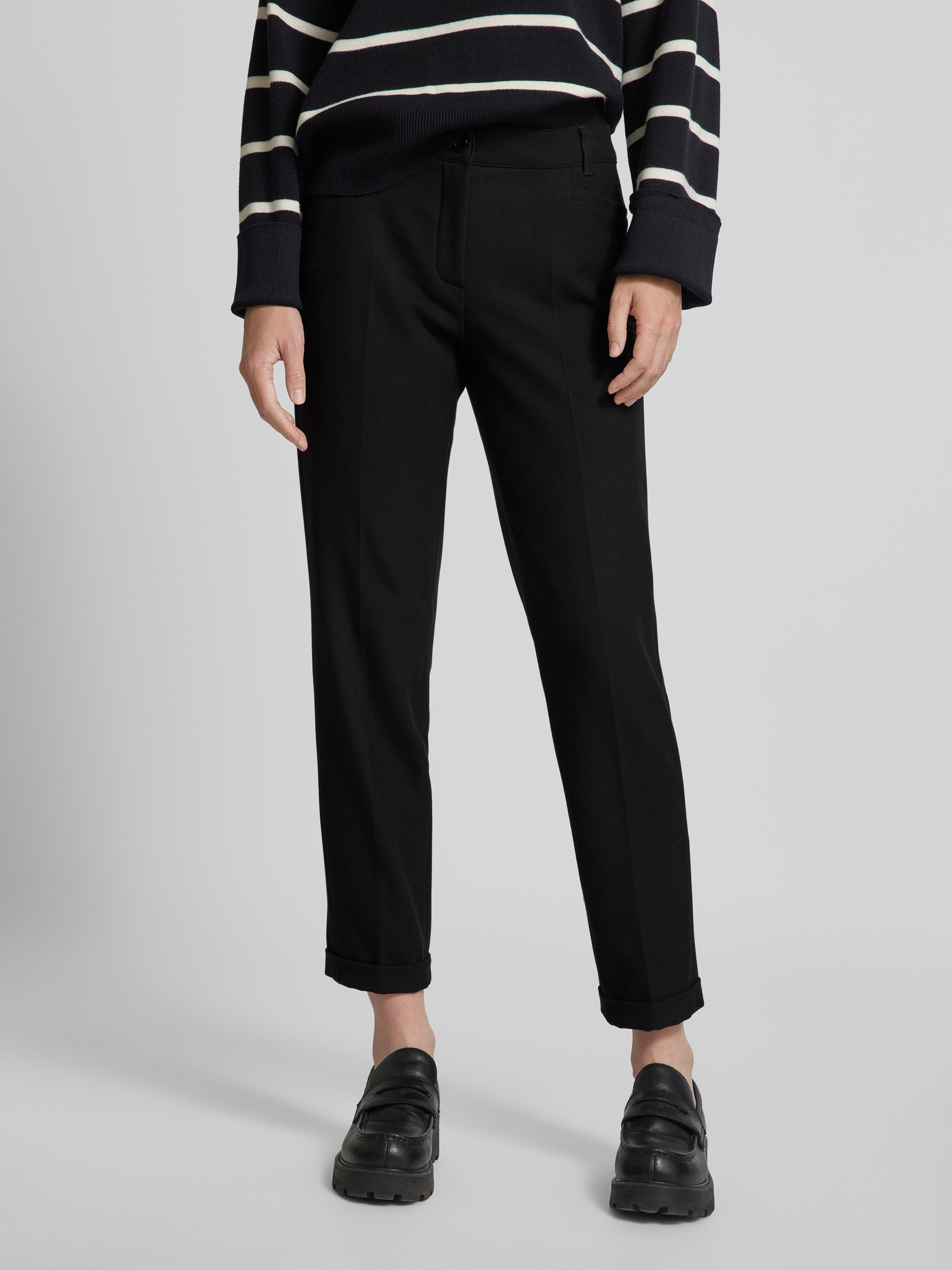 Spodnie materiałowe o kroju tapered fit w kant model ‘UTE’ - czarny