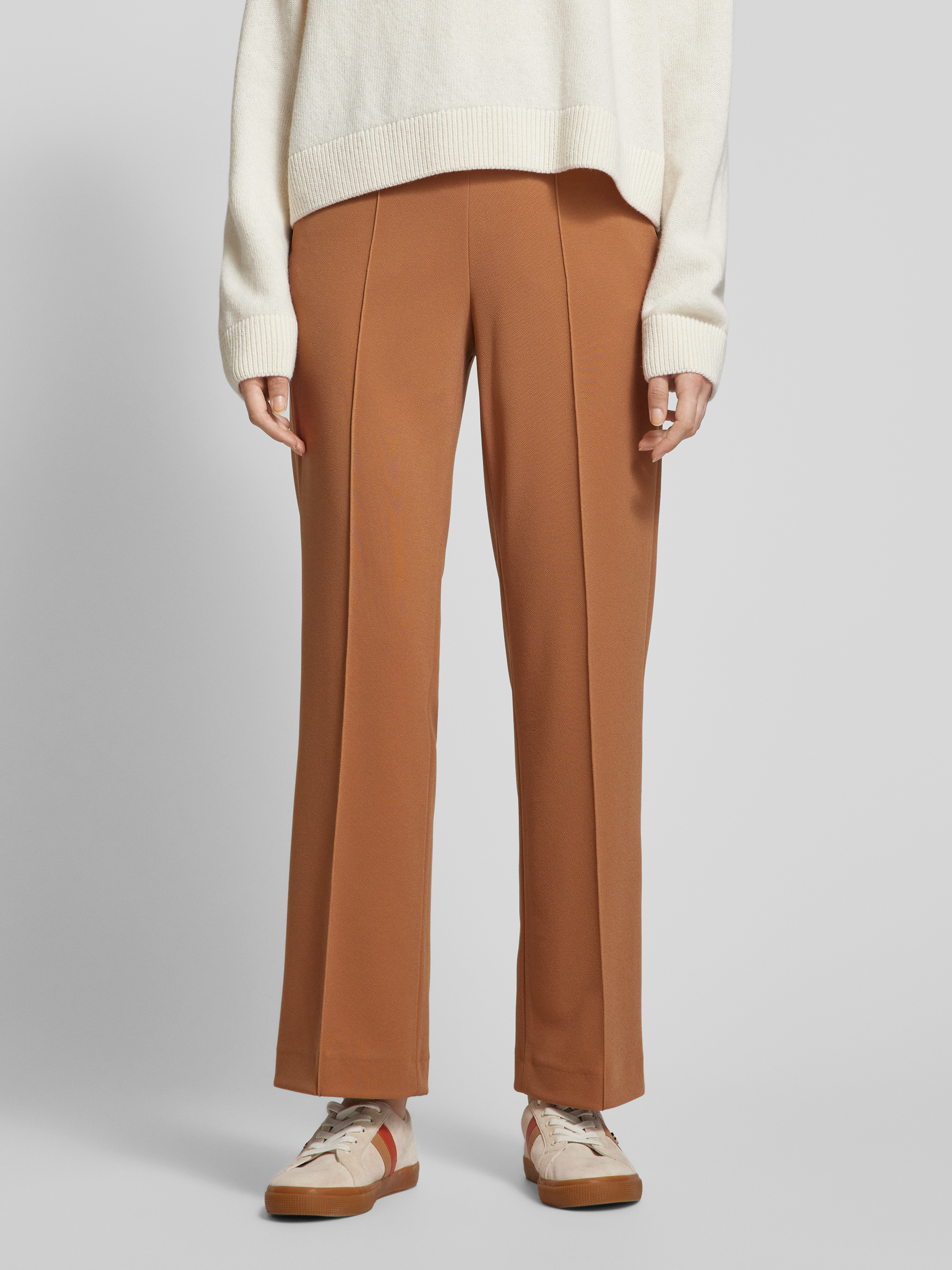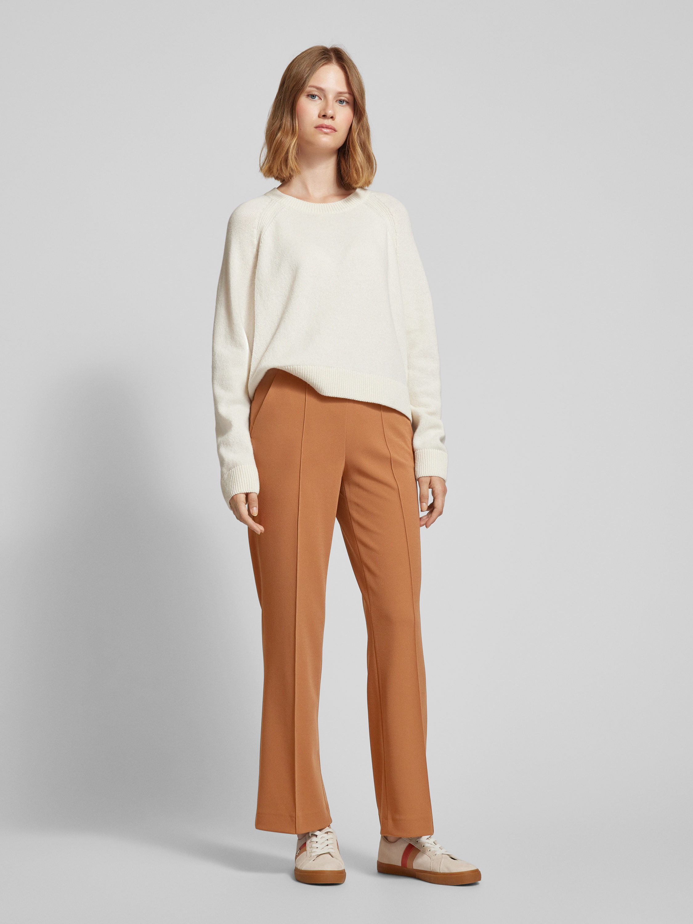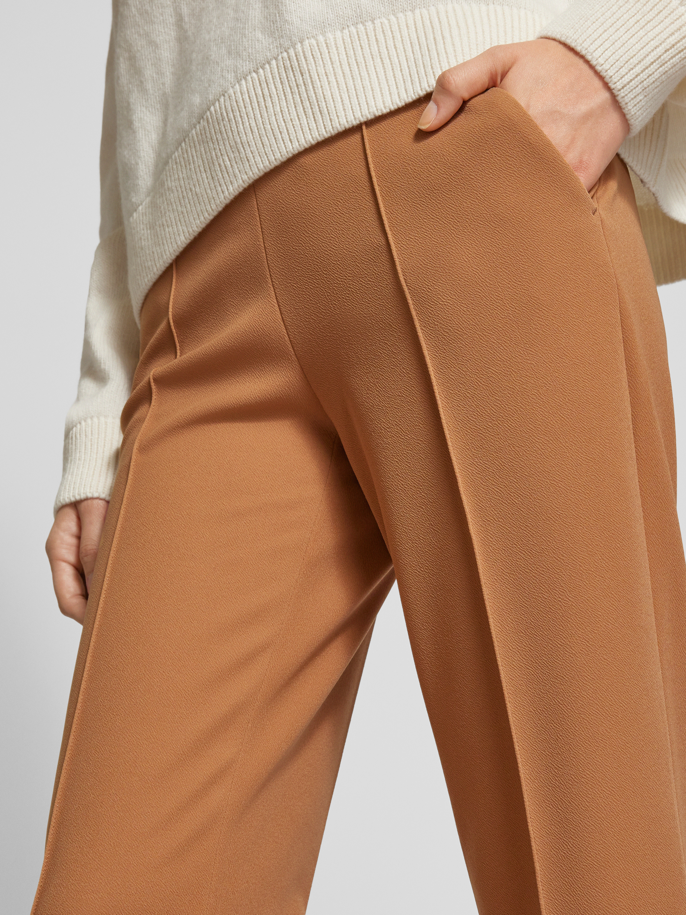 Spodnie materiałowe rozkloszowane z przeszytymi kantami model ‘RENEE’ - camel