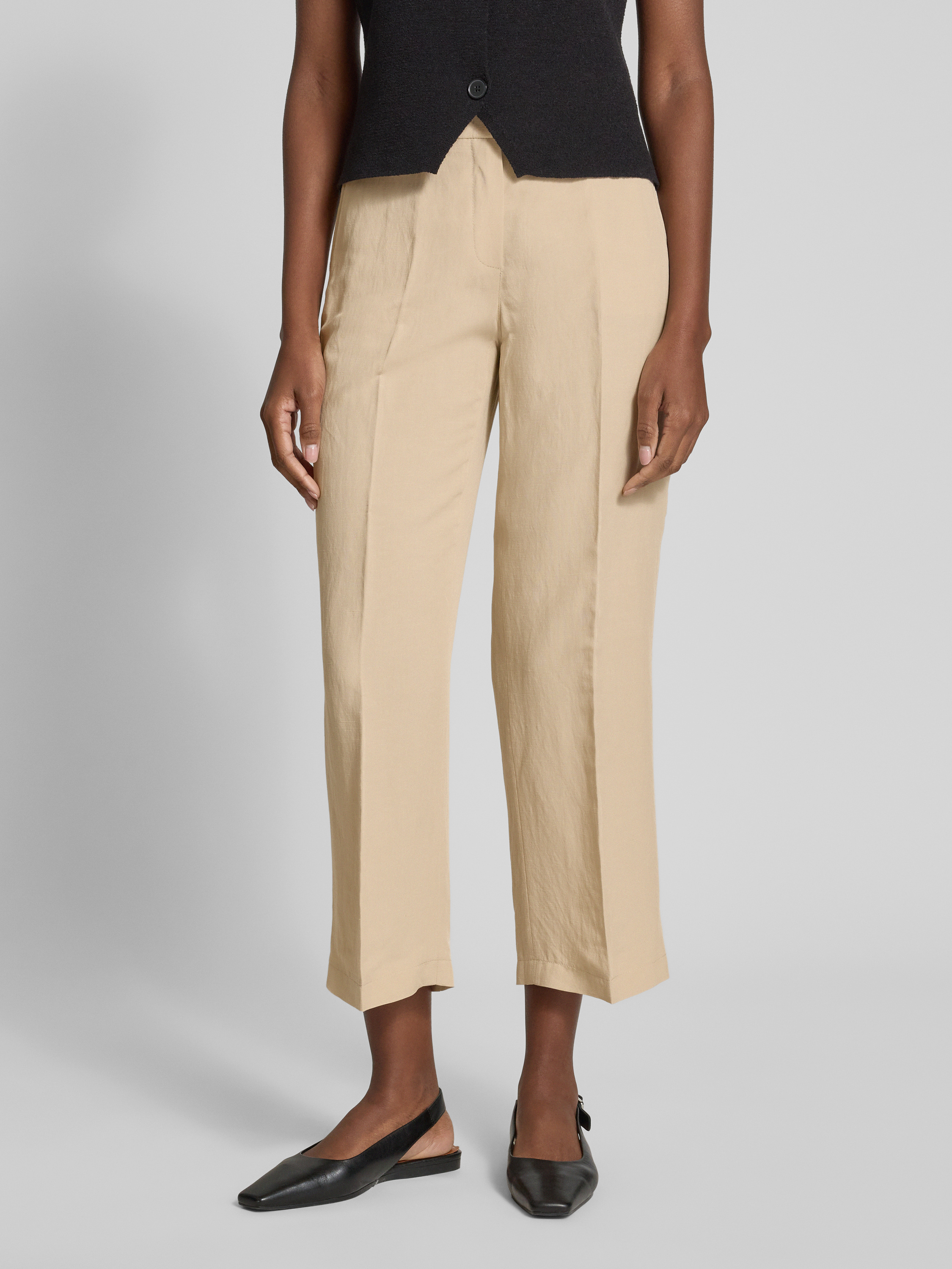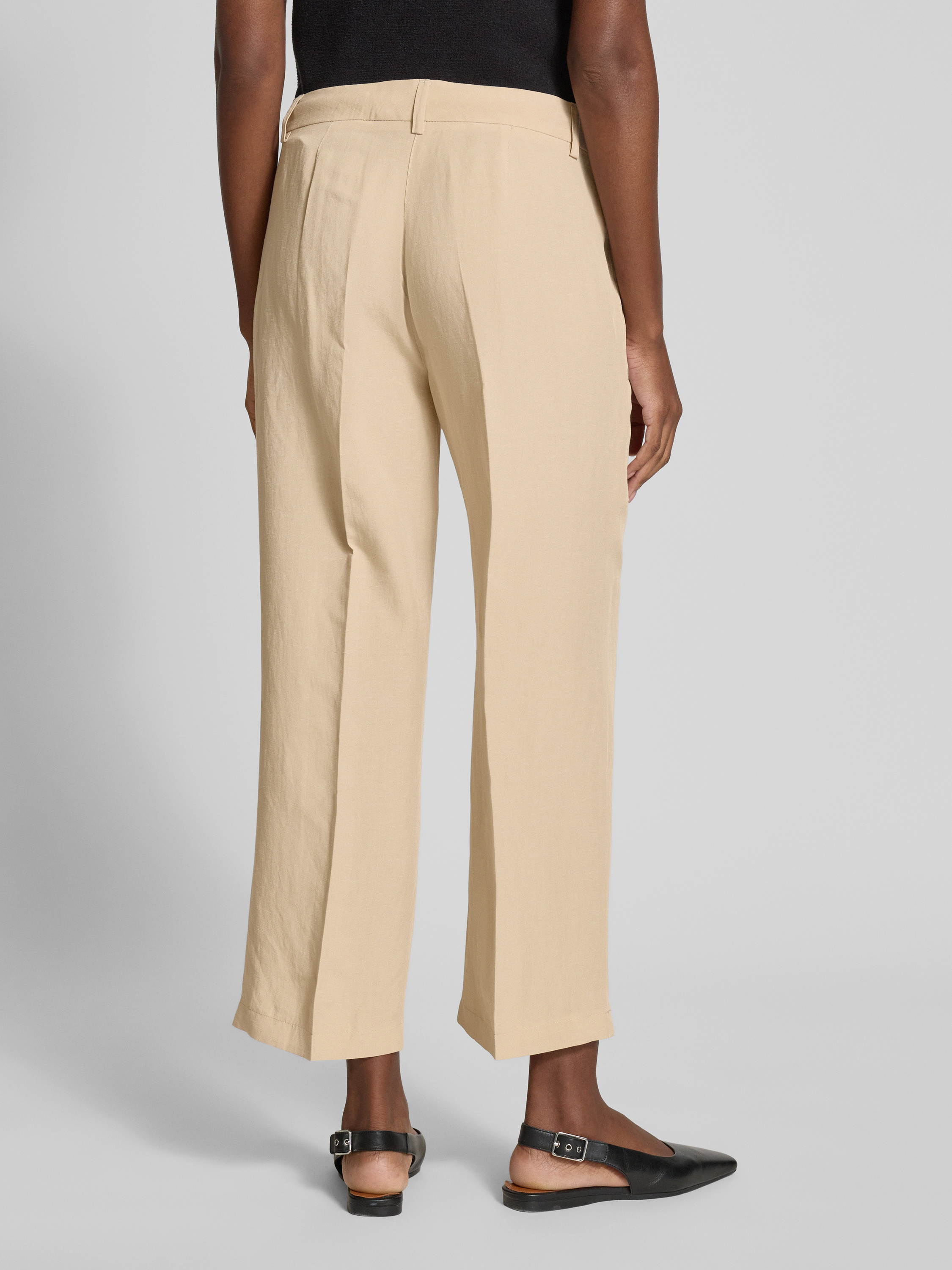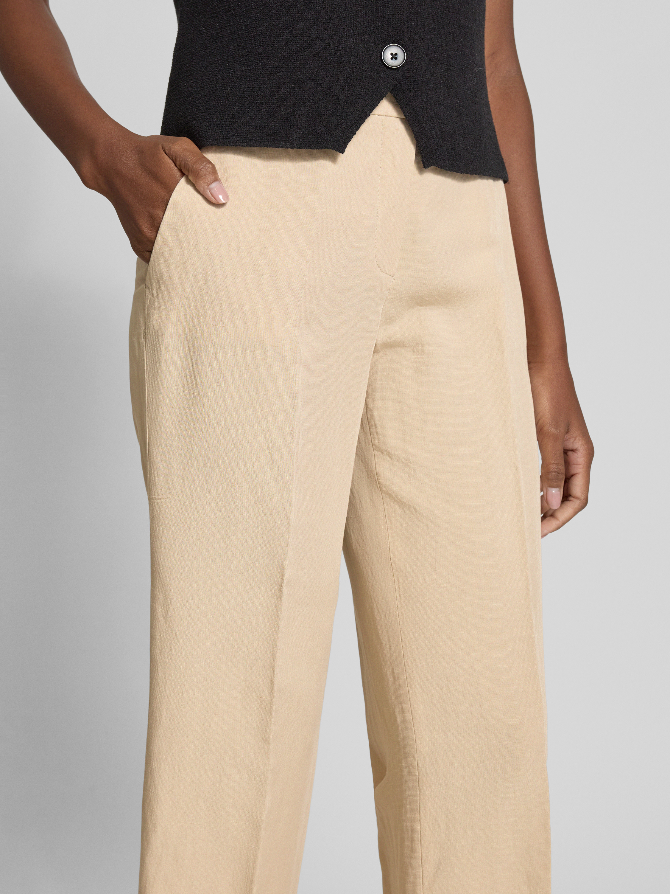 Spodnie materiałowe z prostą nogawką o skróconym kroju model ‘OLESSA’ - beżowy