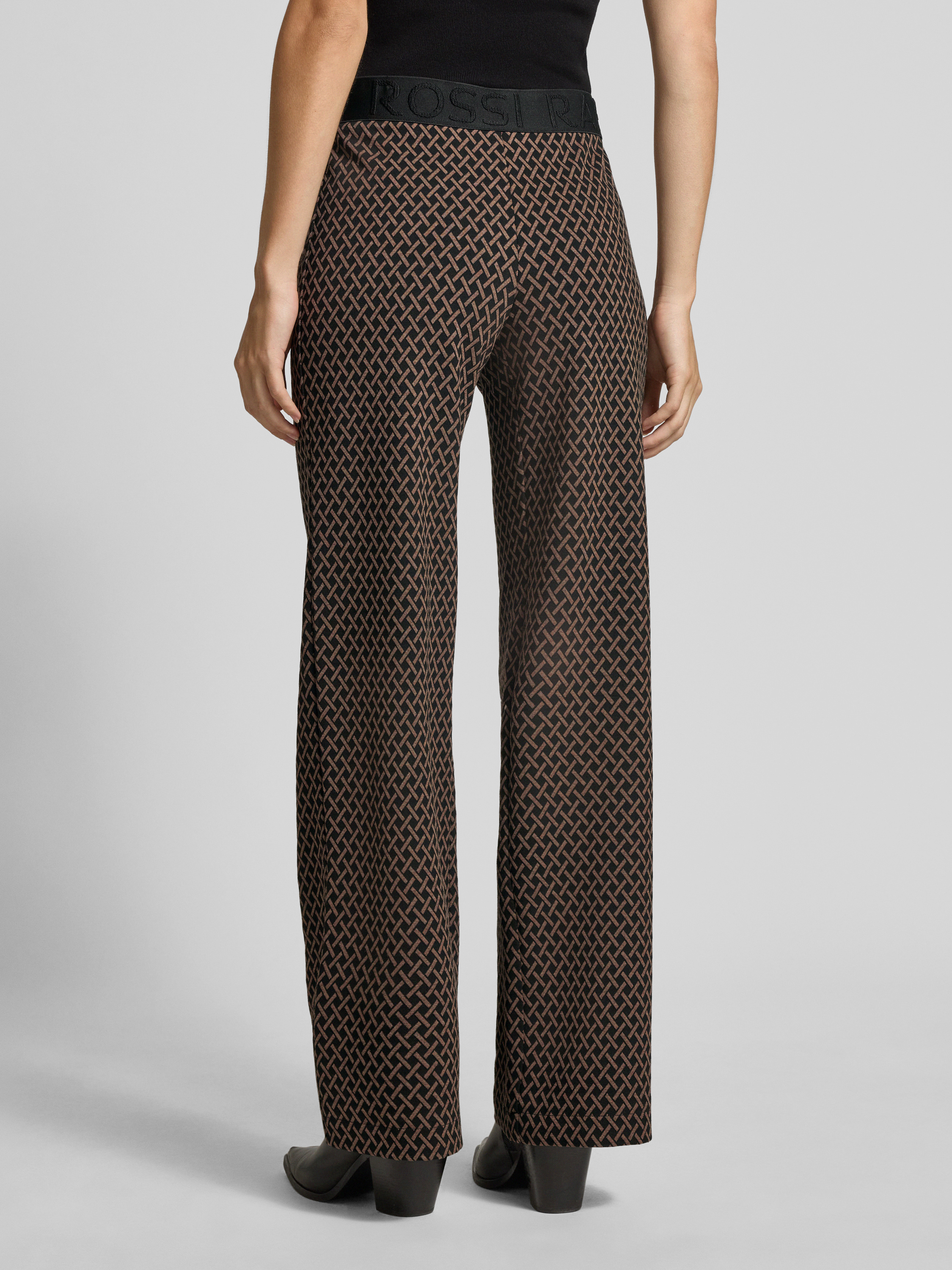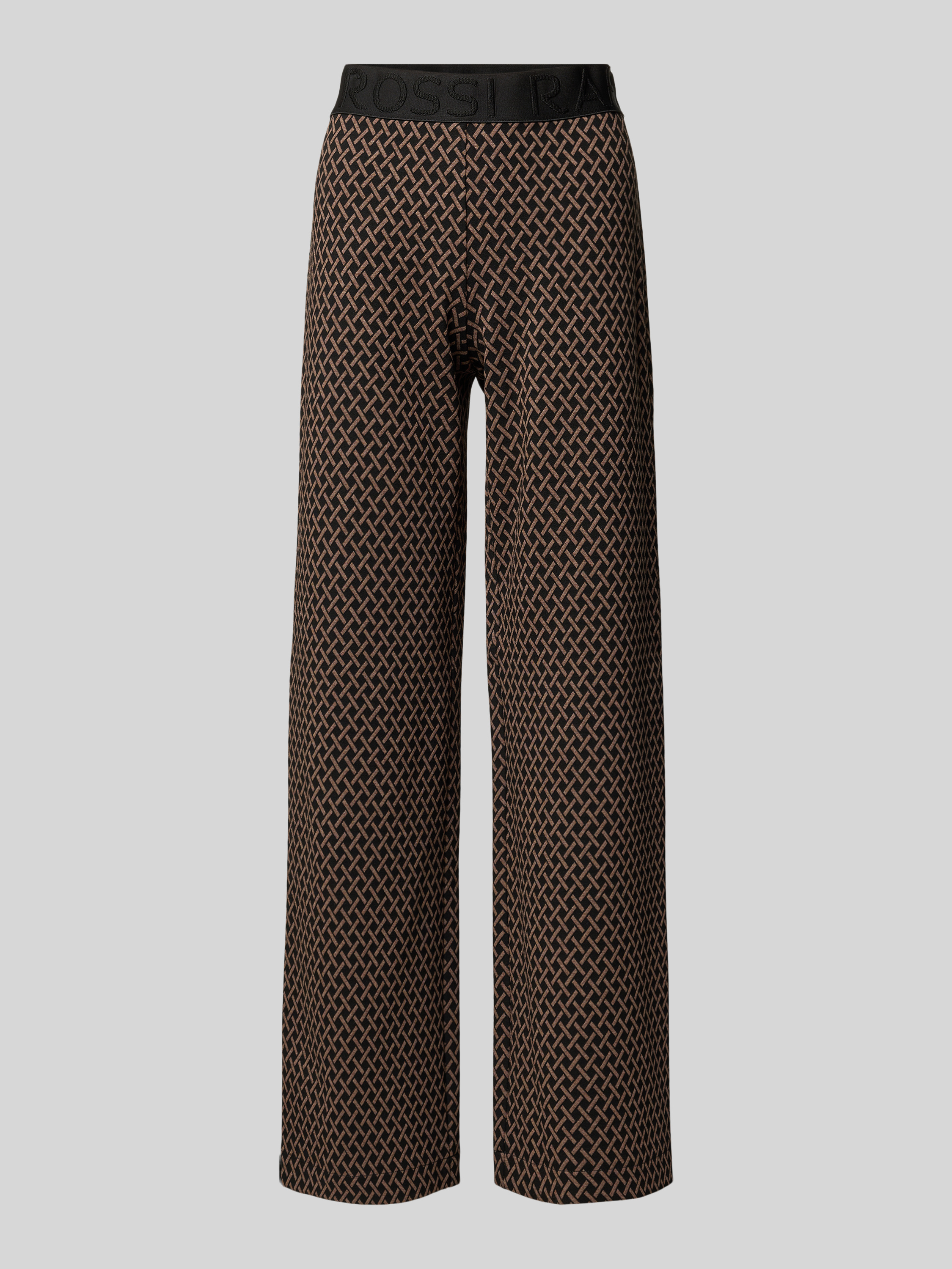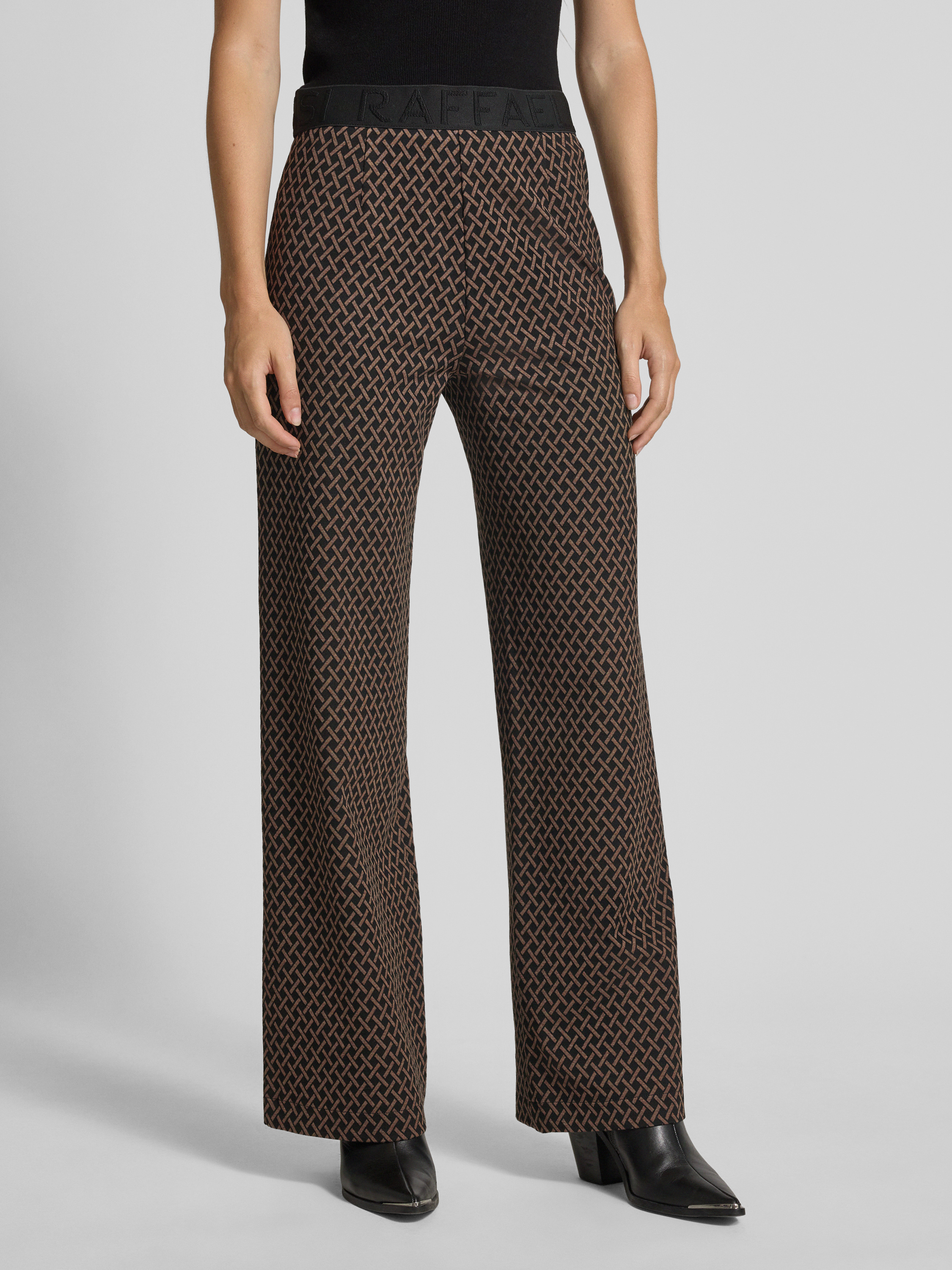 Spodnie materiałowe z szeroką nogawką i elastycznym pasem z logo model ‘ELAINE’ - średniobrązowy