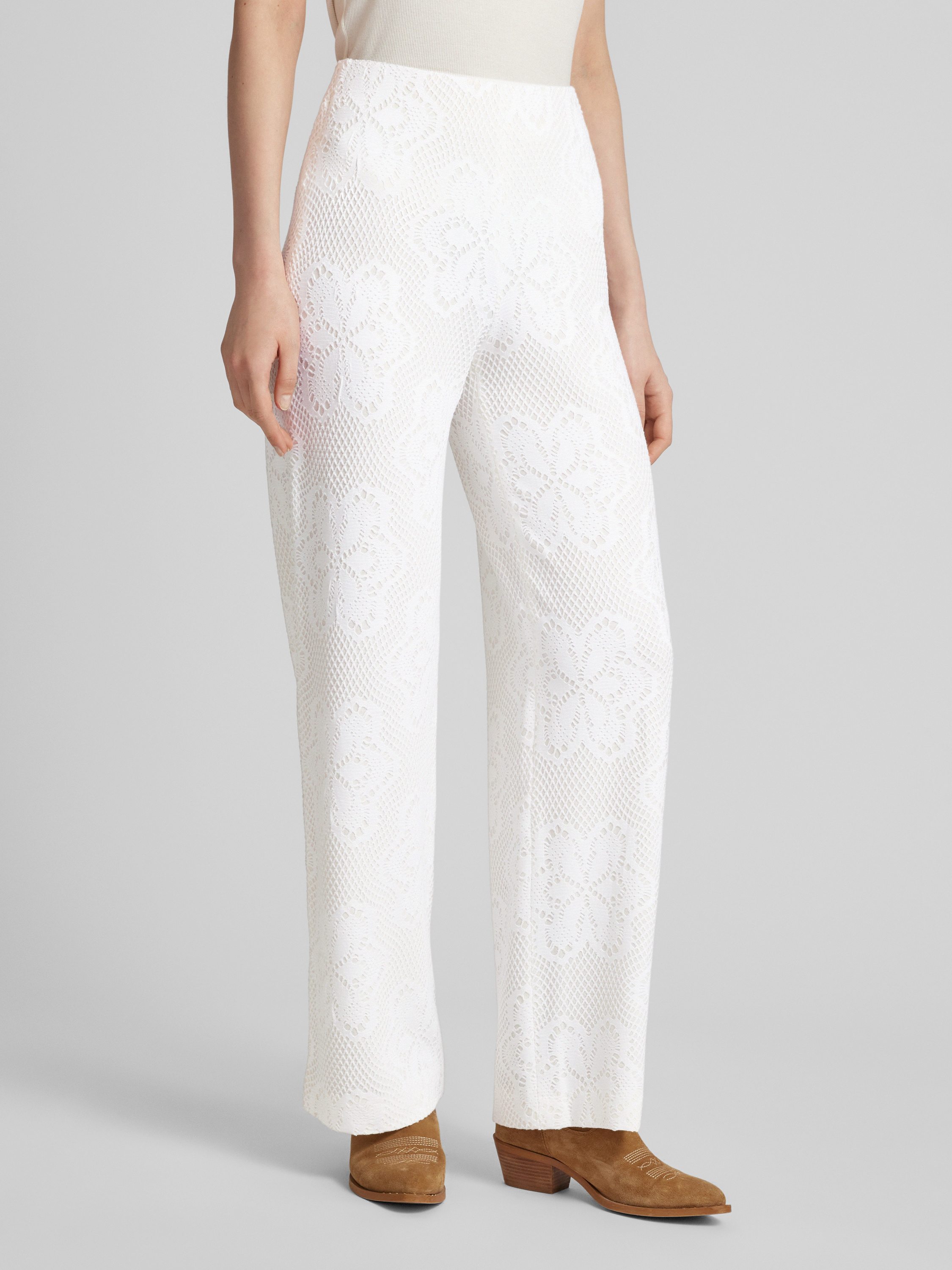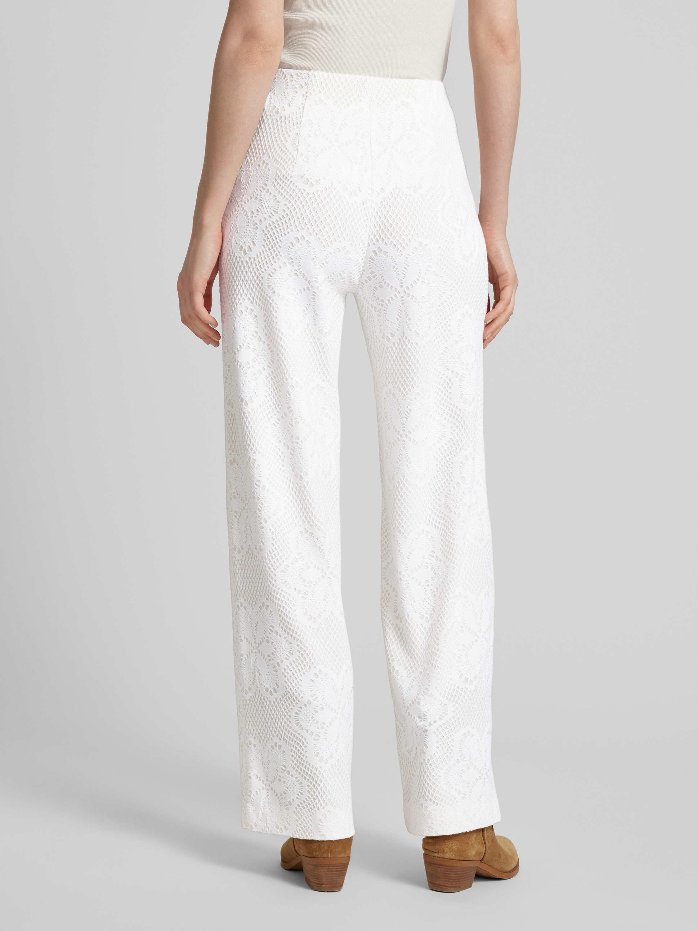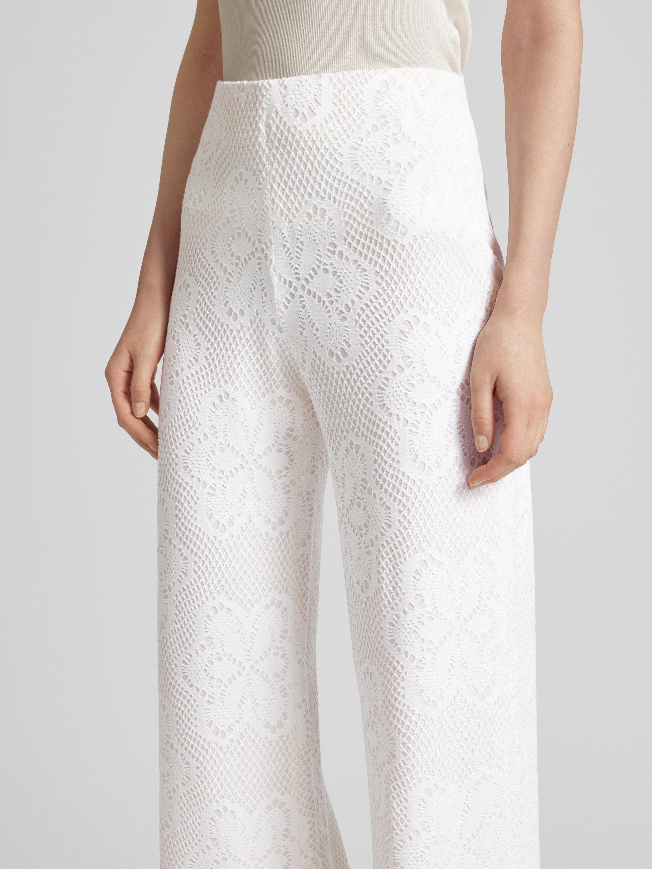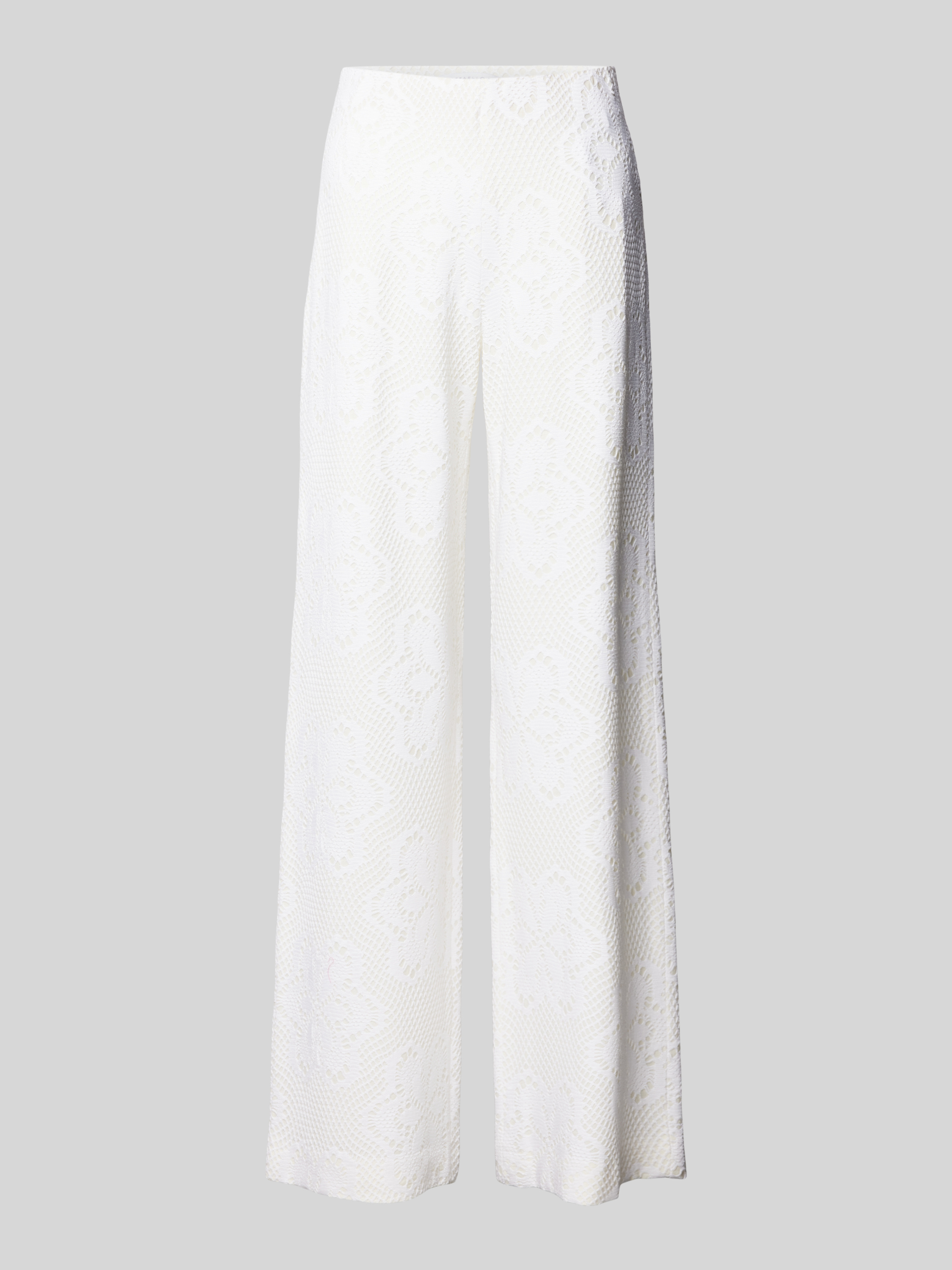 Spodnie materiałowe z szeroką nogawką i koronką szydełkową model ‘ELAINE’ - złamany biały