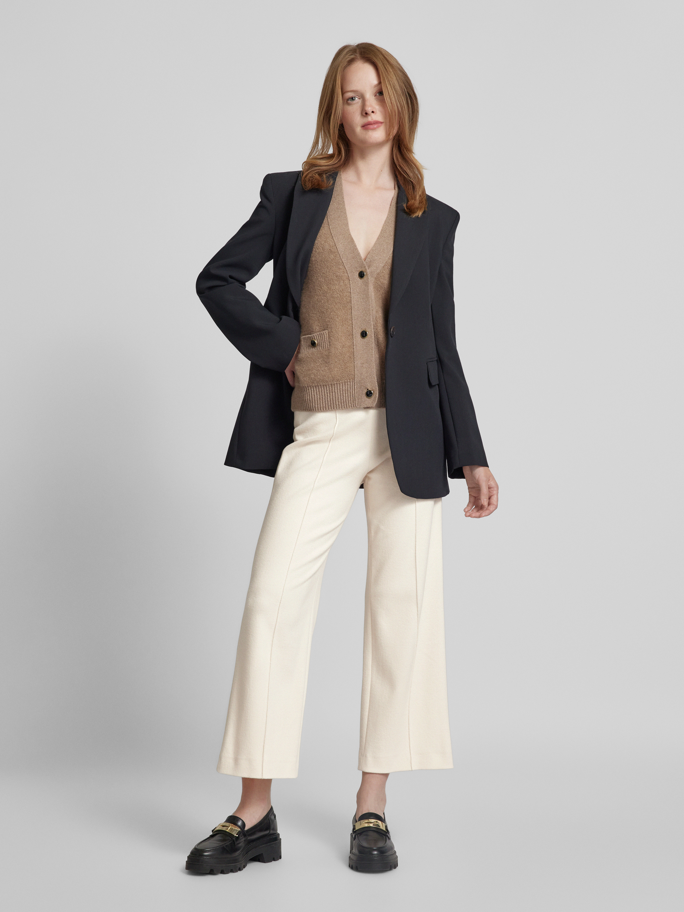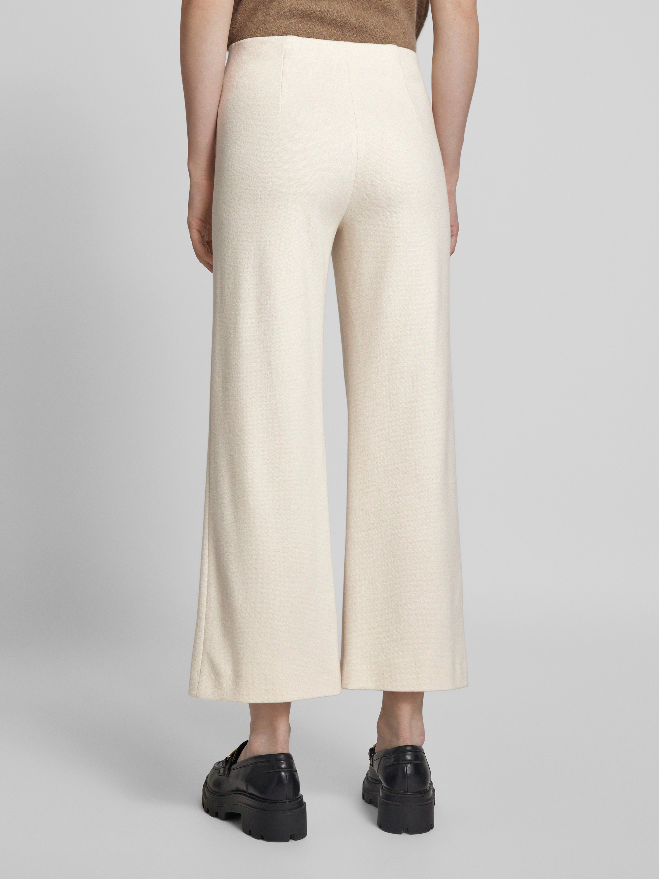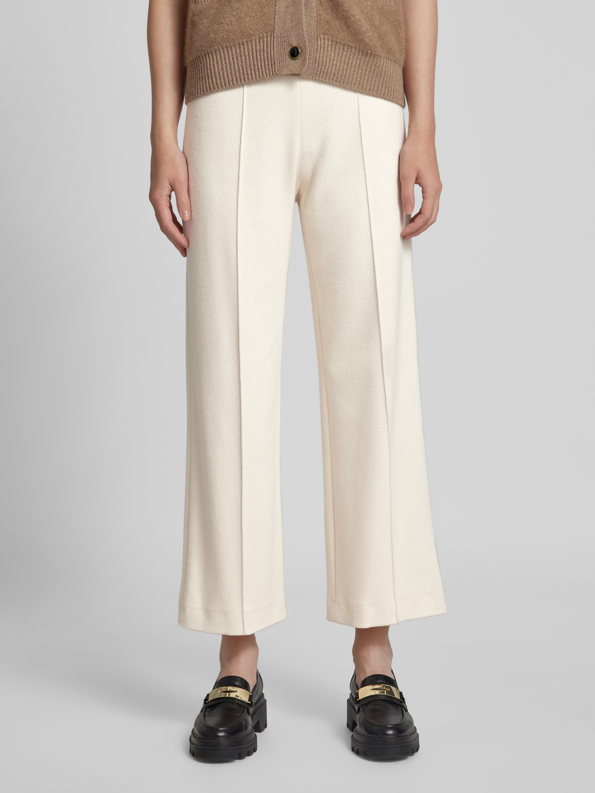 Spodnie materiałowe z szeroką nogawką z przeszytym kantem model ‘ELAINE’ - złamany biały