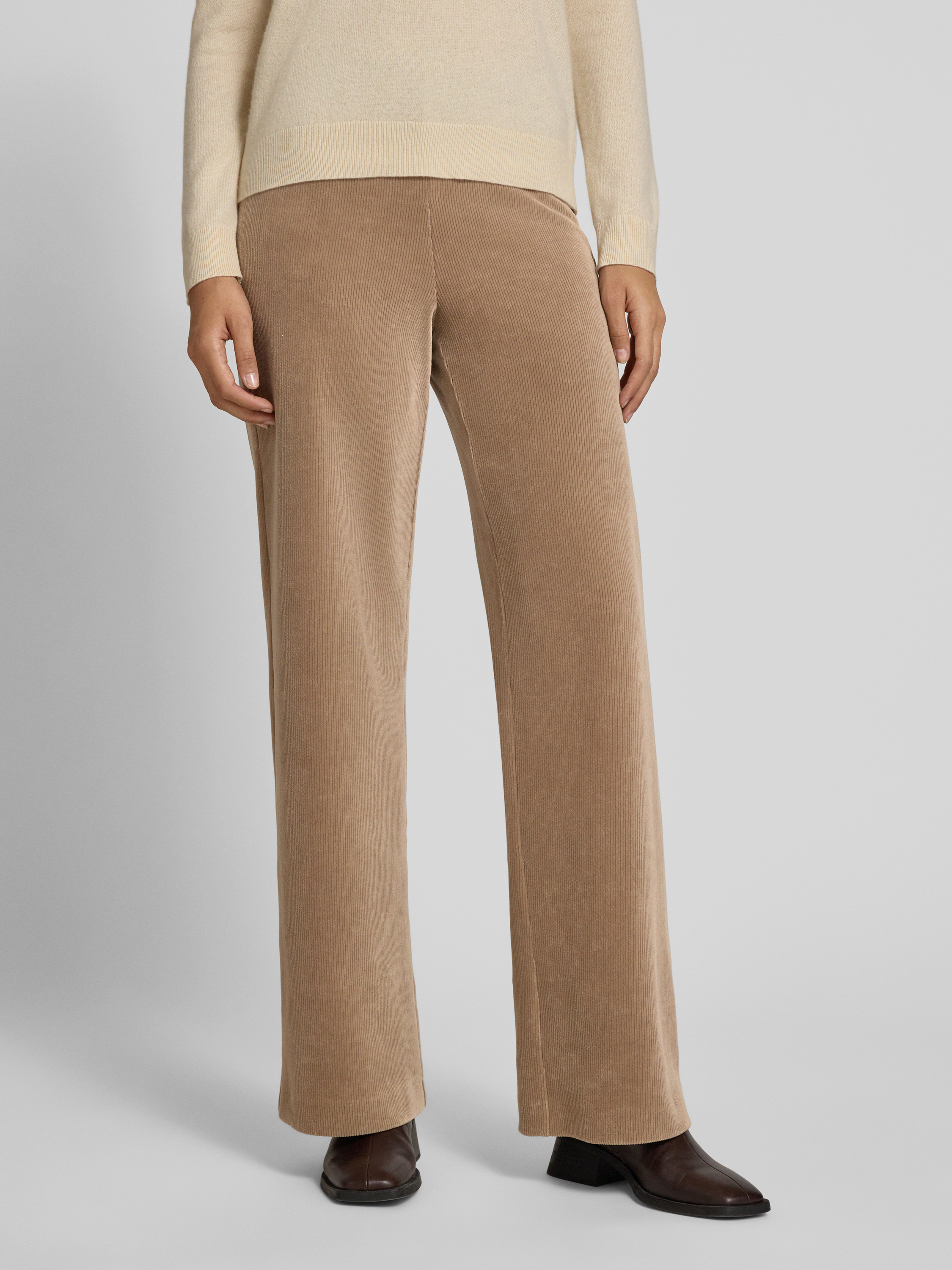 Spodnie sztruksowe z szeroką nogawką model ‘ELAINE’ - szarobrązowy