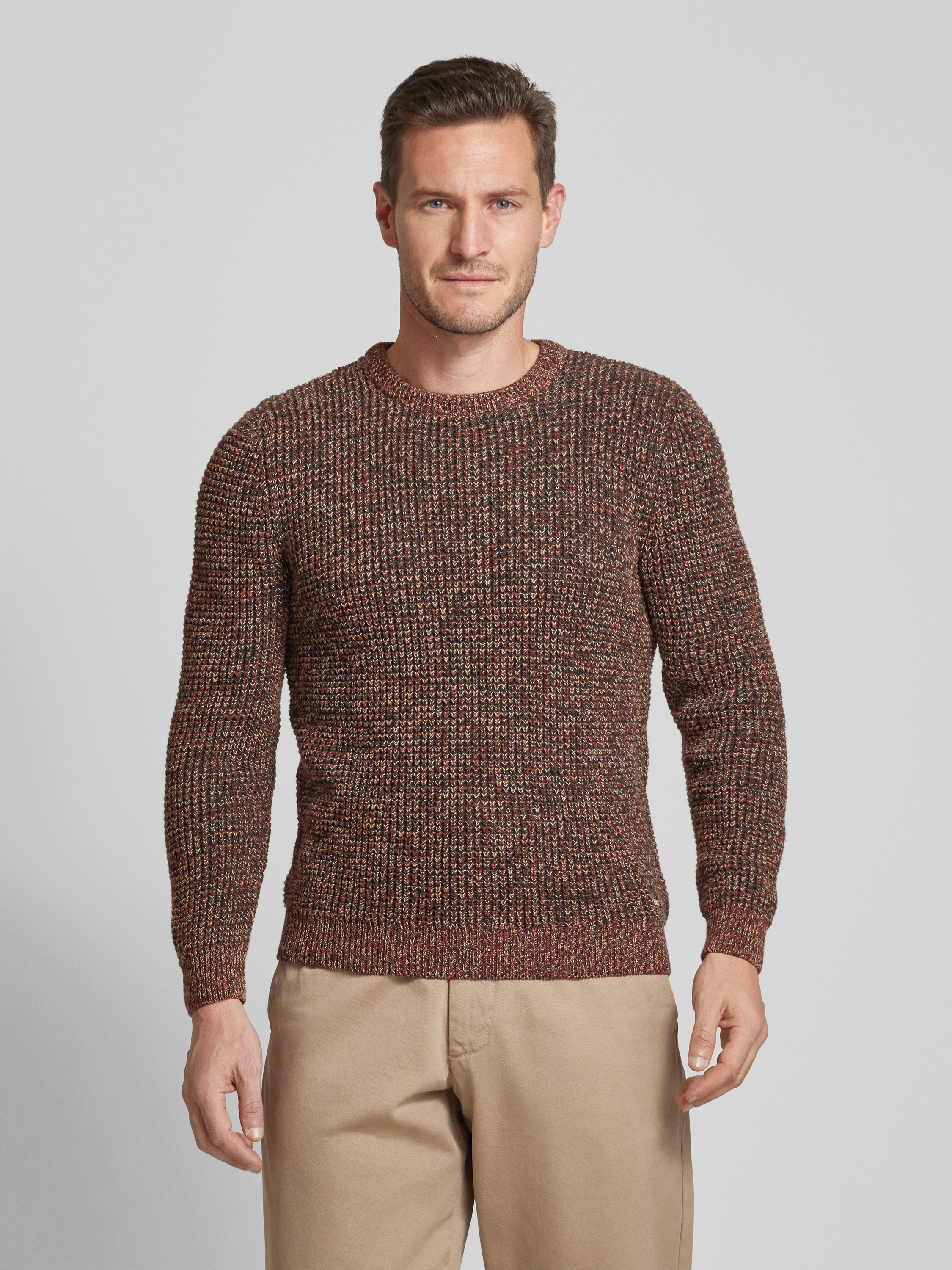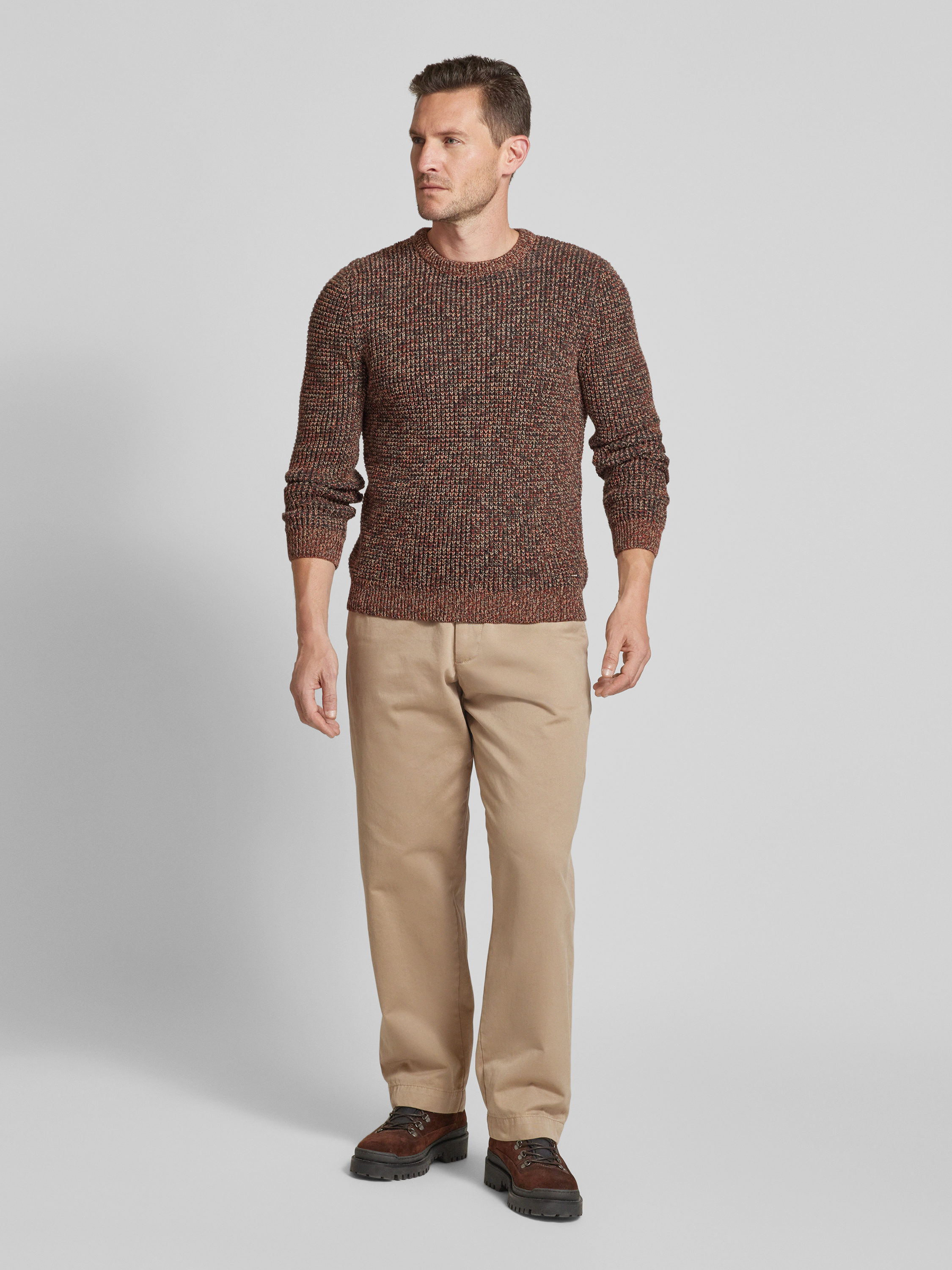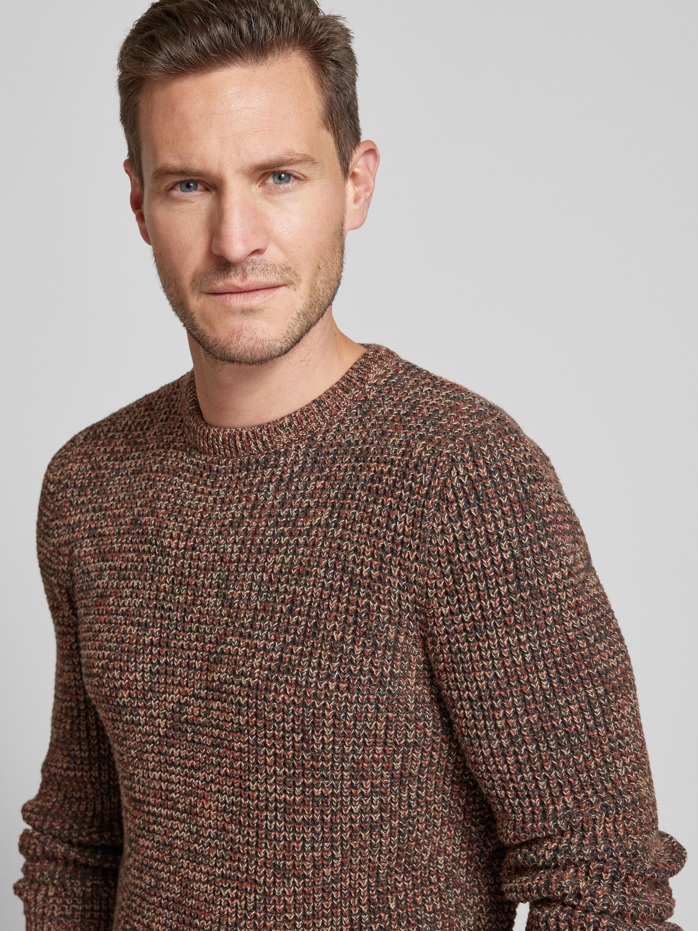 Sweter z dzianiny z prążkowanymi wykończeniami - rdzawoczerwony