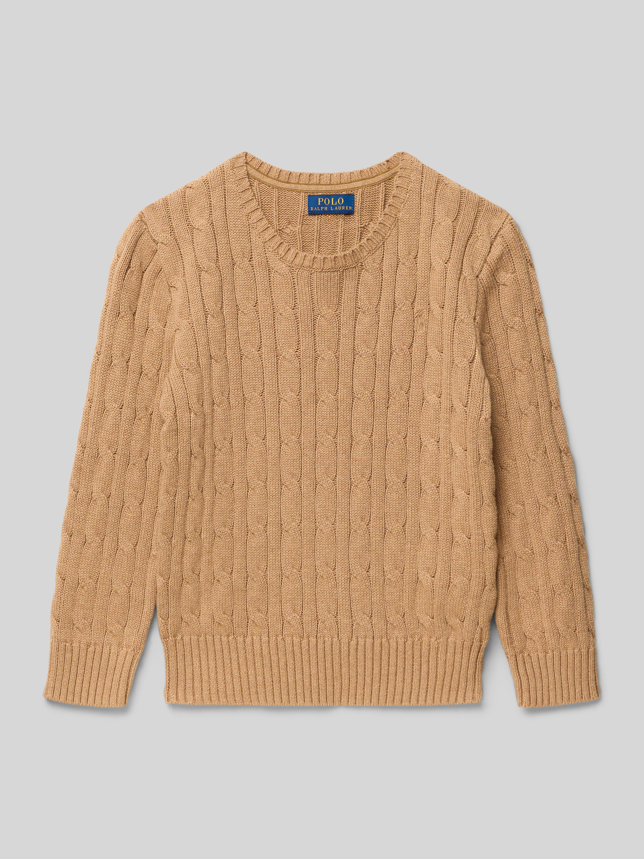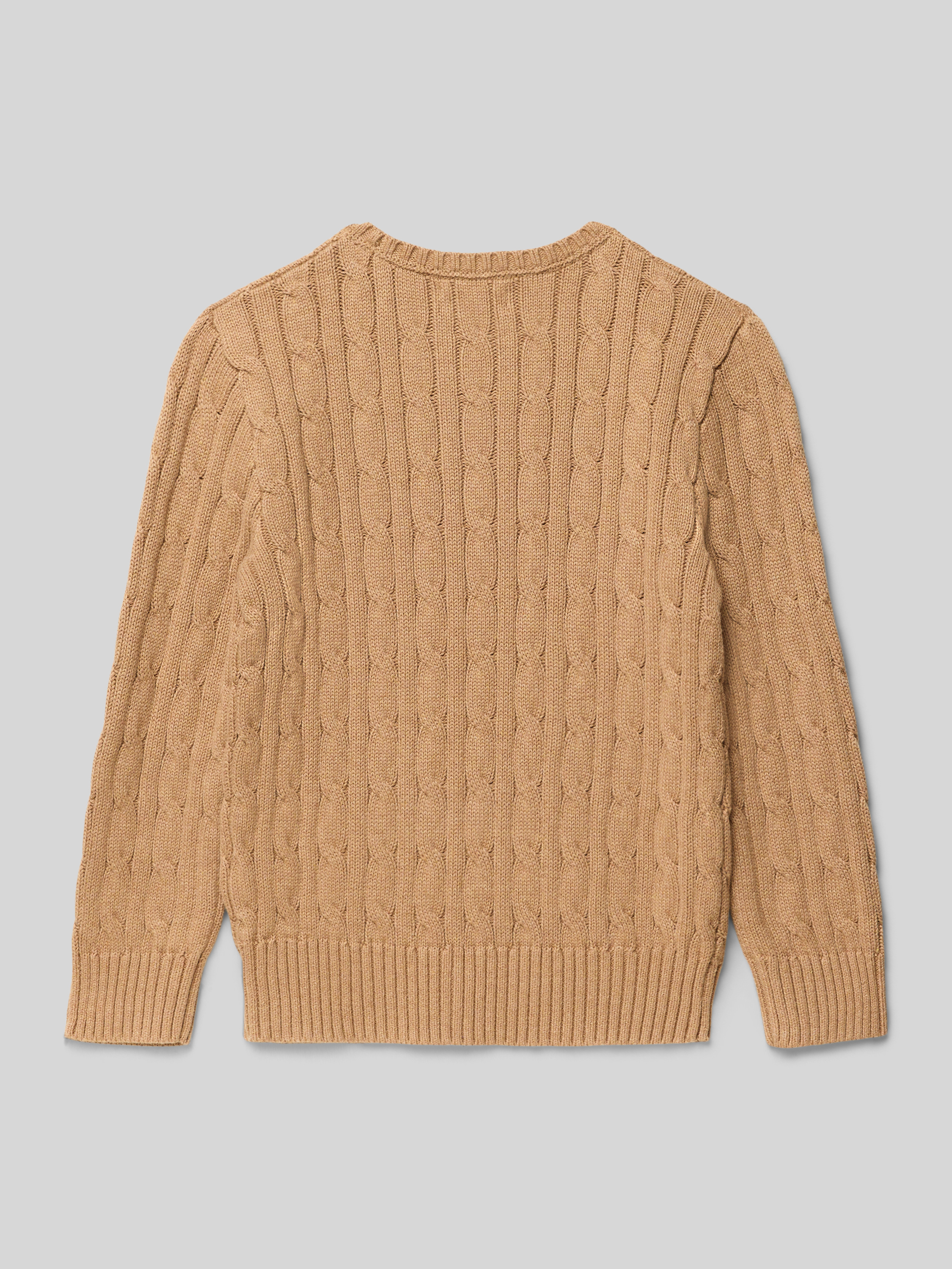 Sweter z dzianiny z prążkowanymi wykończeniami - camel