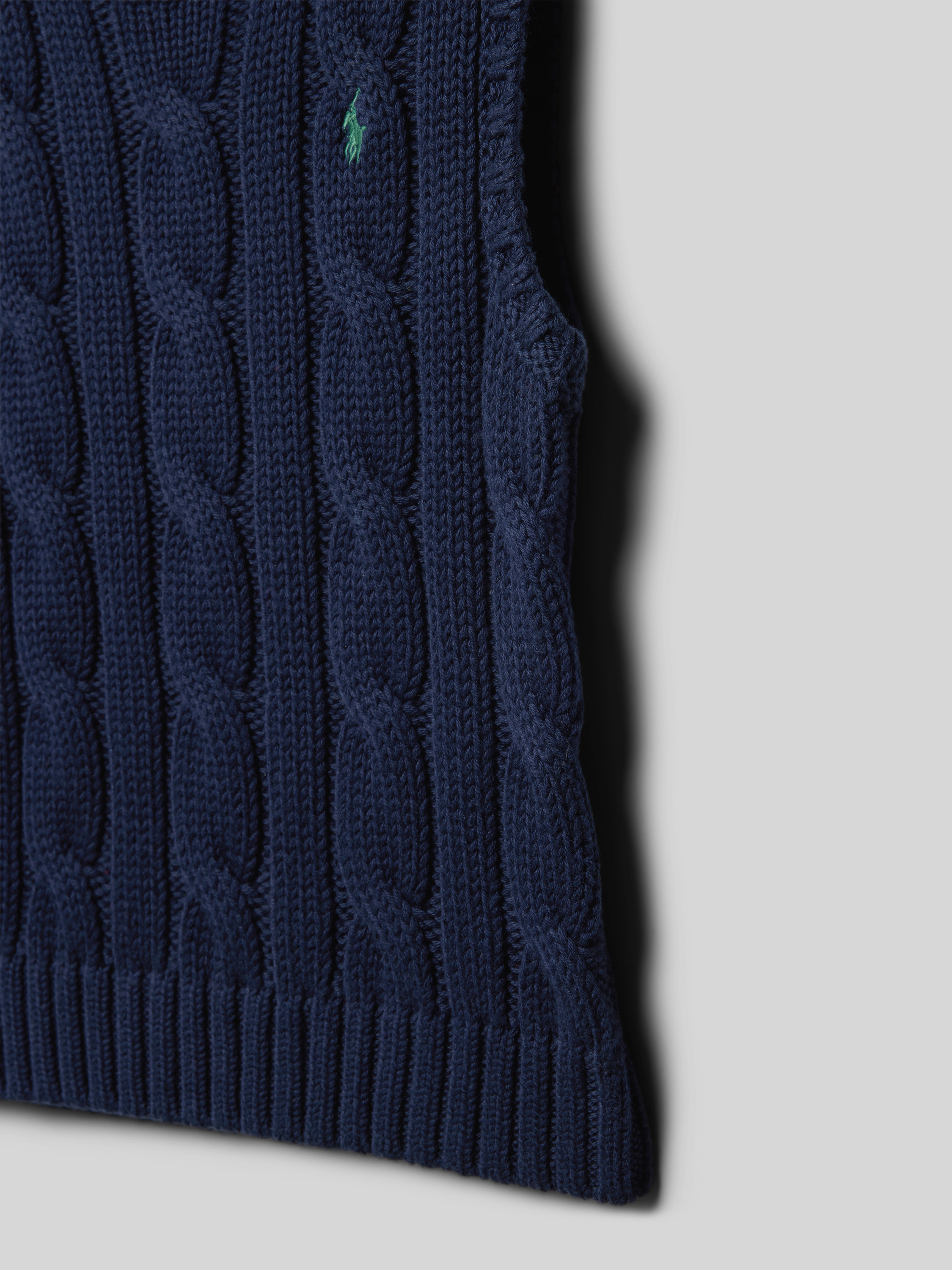 Bezrękawnik o kroju regular fit ze ściegiem warkoczowym - granatowy