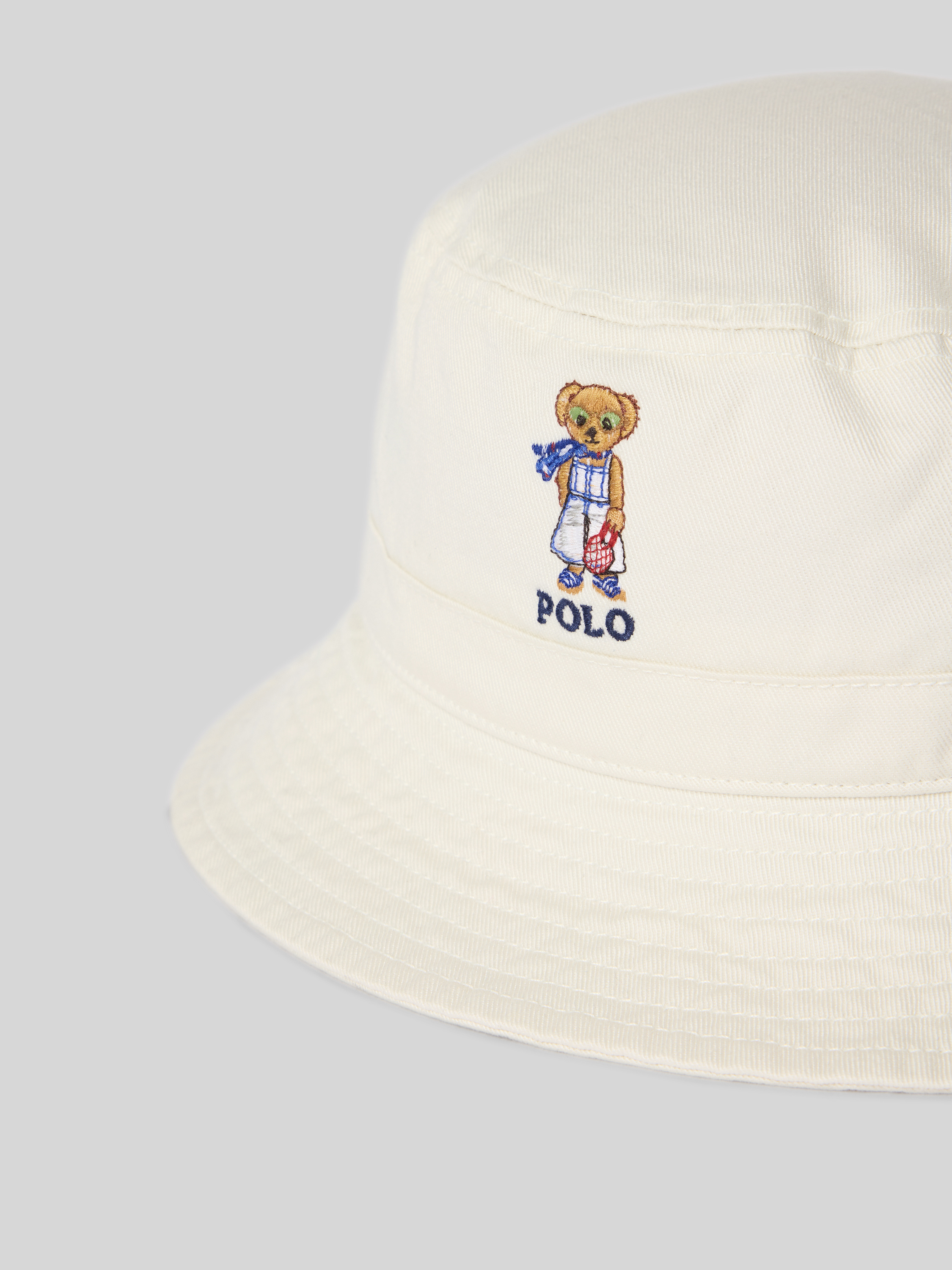 Czapka typu bucket hat z wyhaftowanym logo model ‘BEAR’ - złamany biały