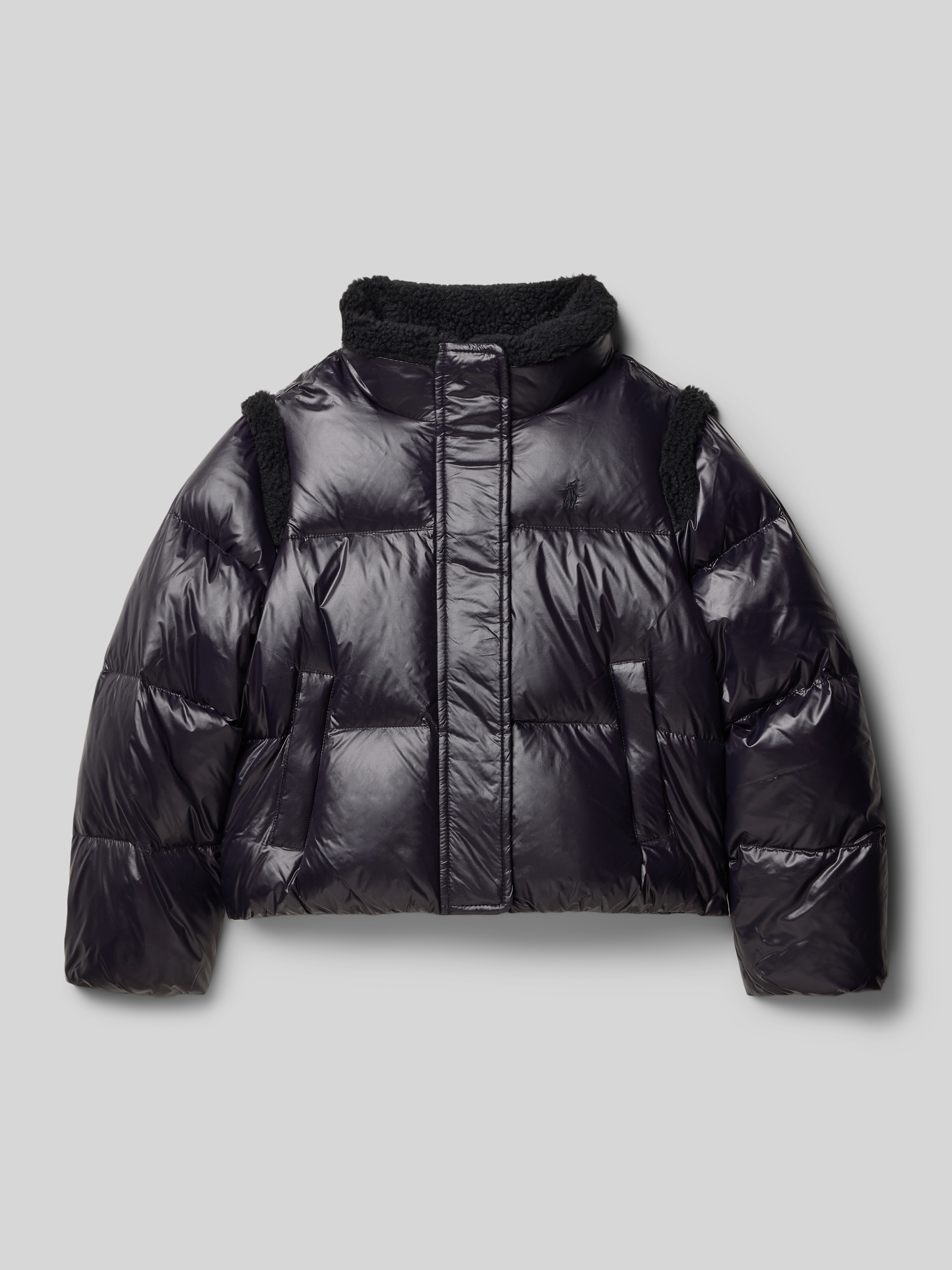 Kurtka pikowana o kroju regular fit z obszyciem ze sztucznego futra model ‘Puffer’ - czarny