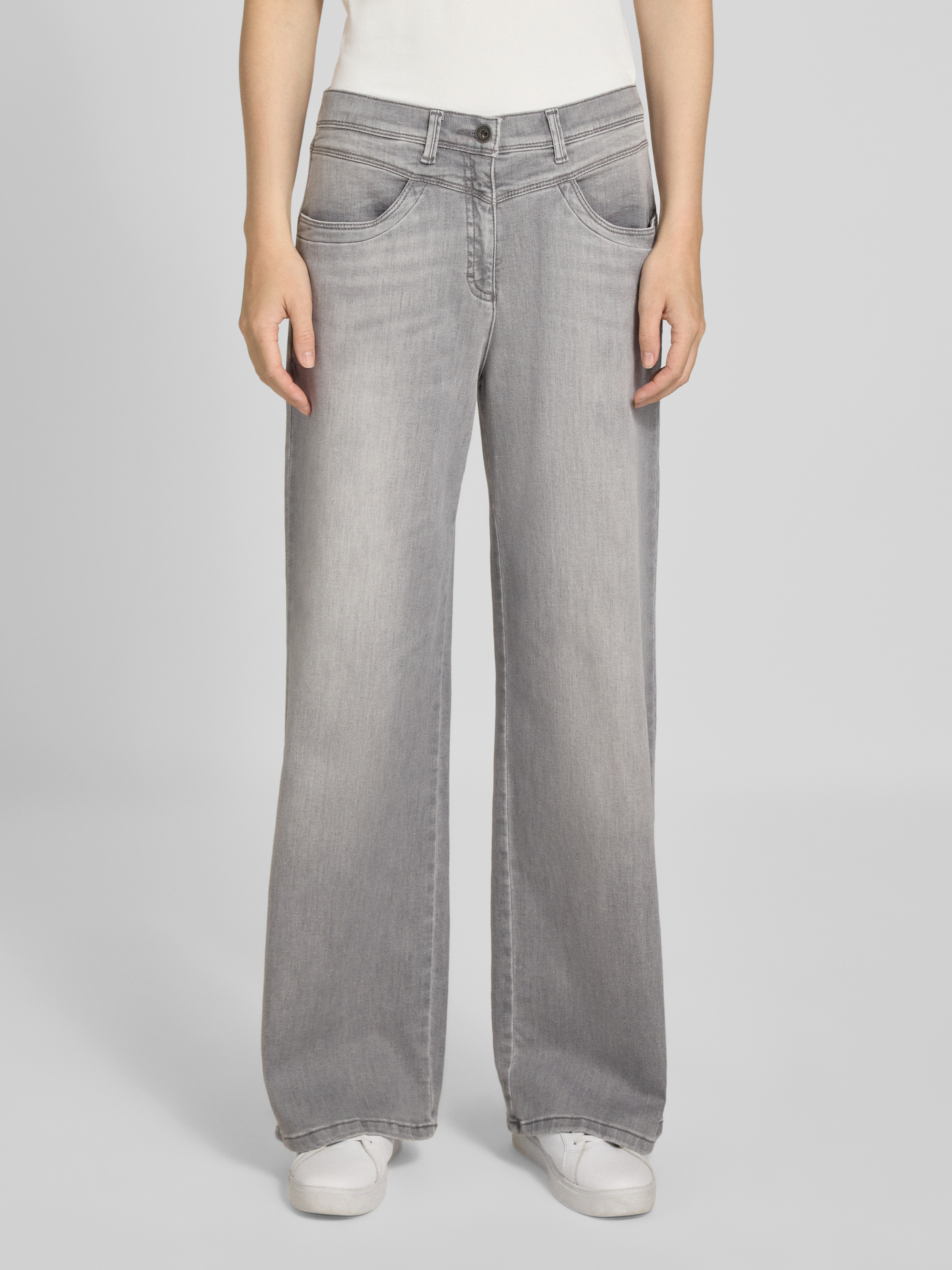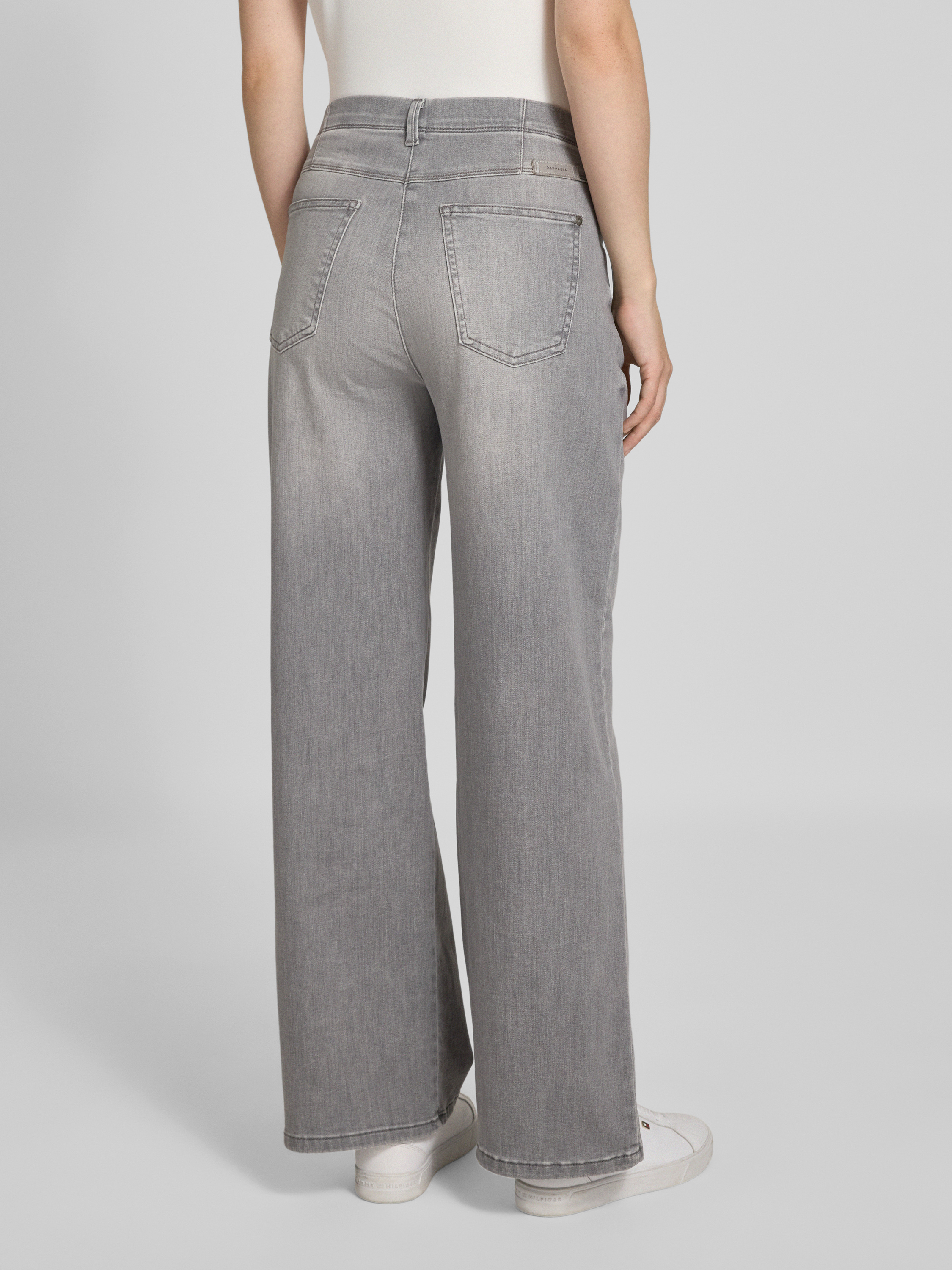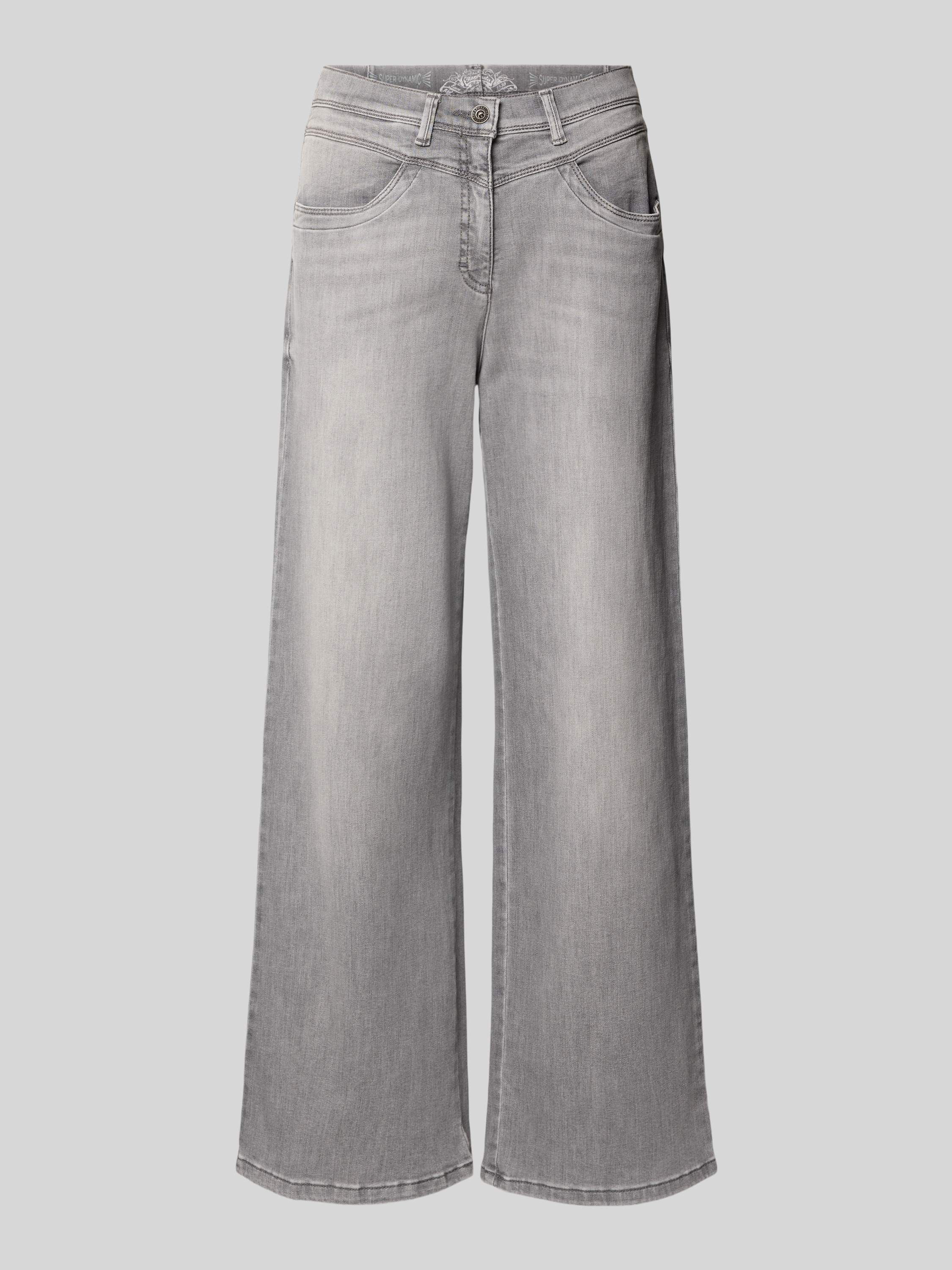 Jeansy o rozkloszowanym kroju z efektem znoszenia model ‘Laura’ - jasnoszary