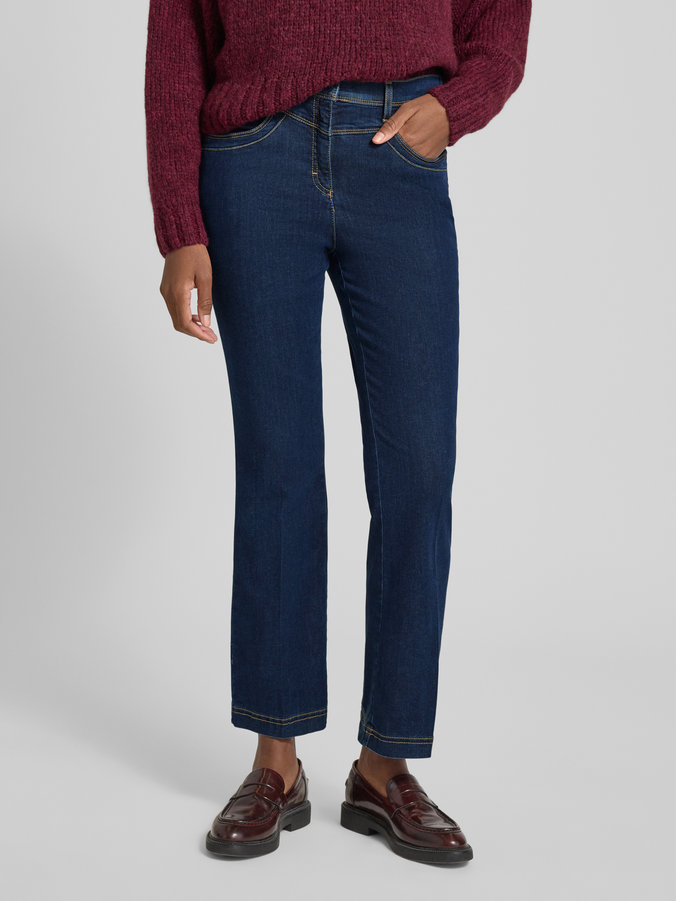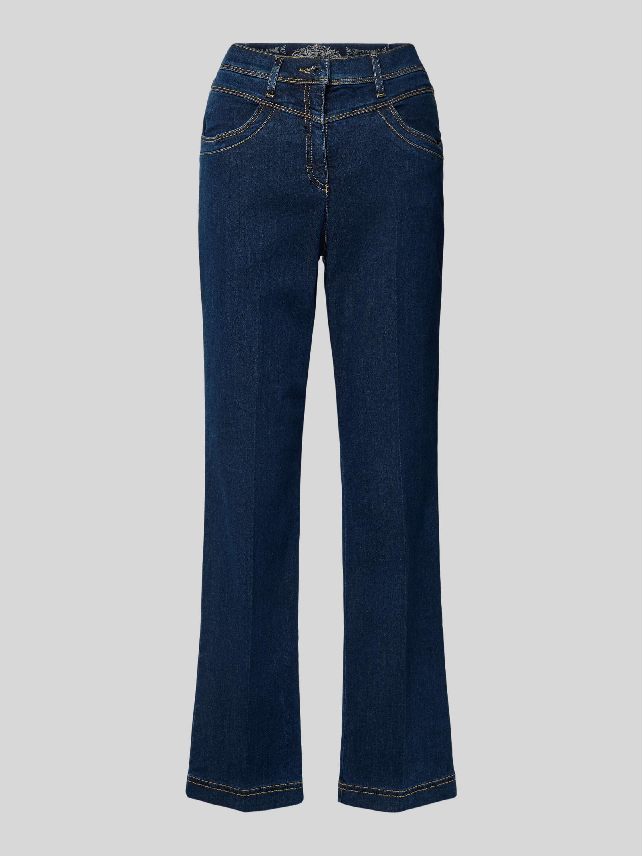Jeansy z poszerzaną nogawką i wpuszczanymi kieszeniami model ‘Laura’ - ciemnoniebieski
