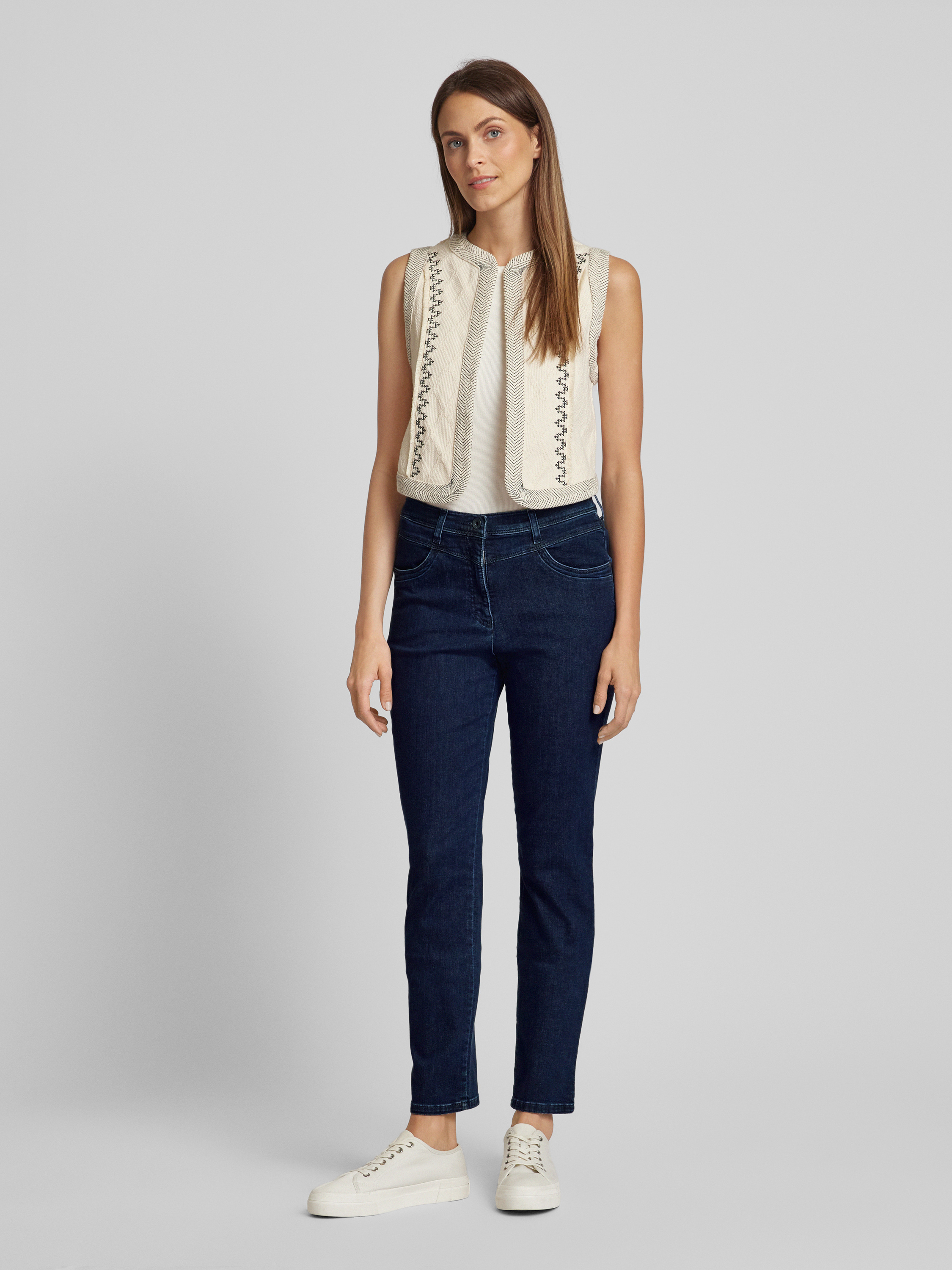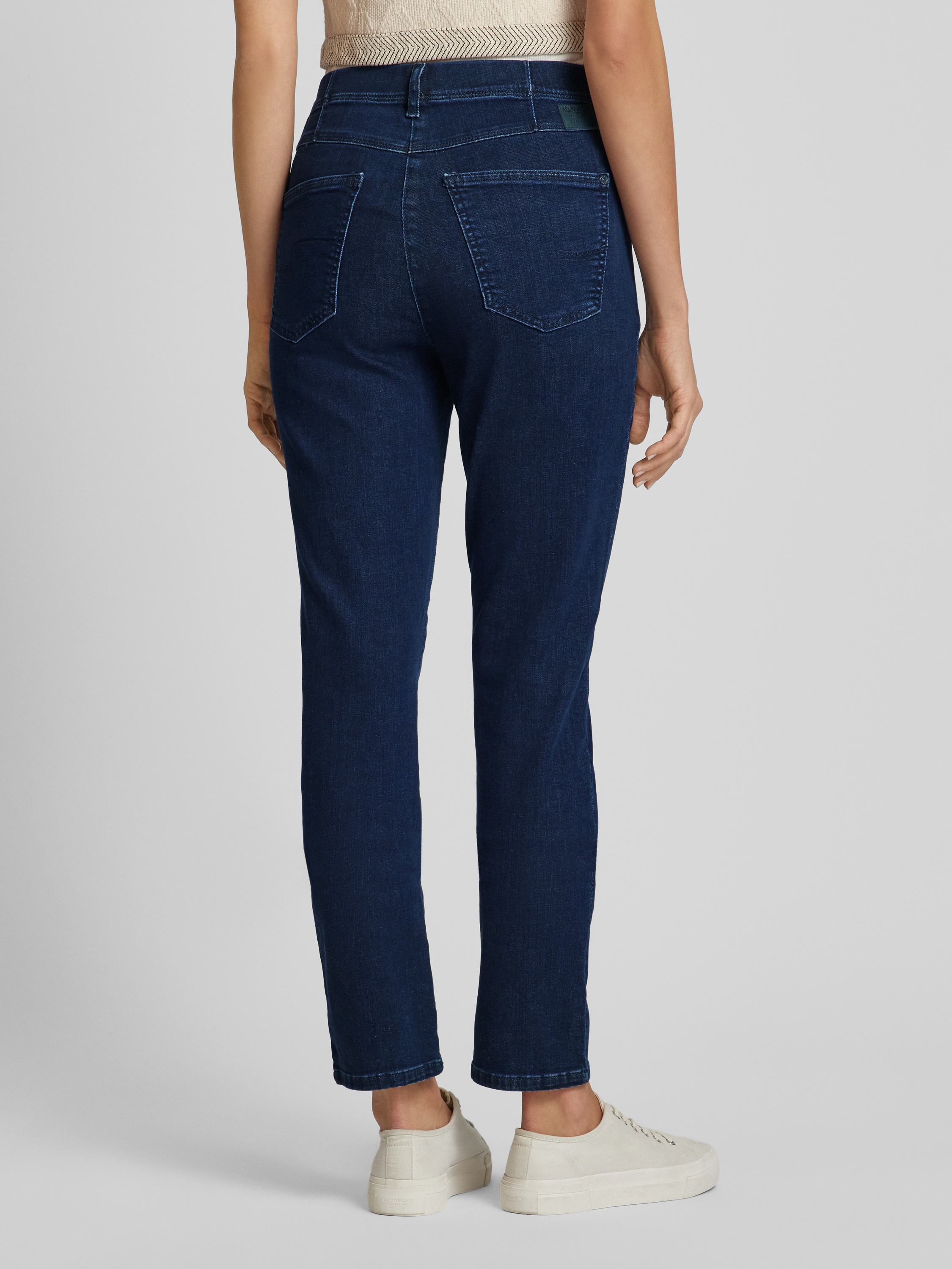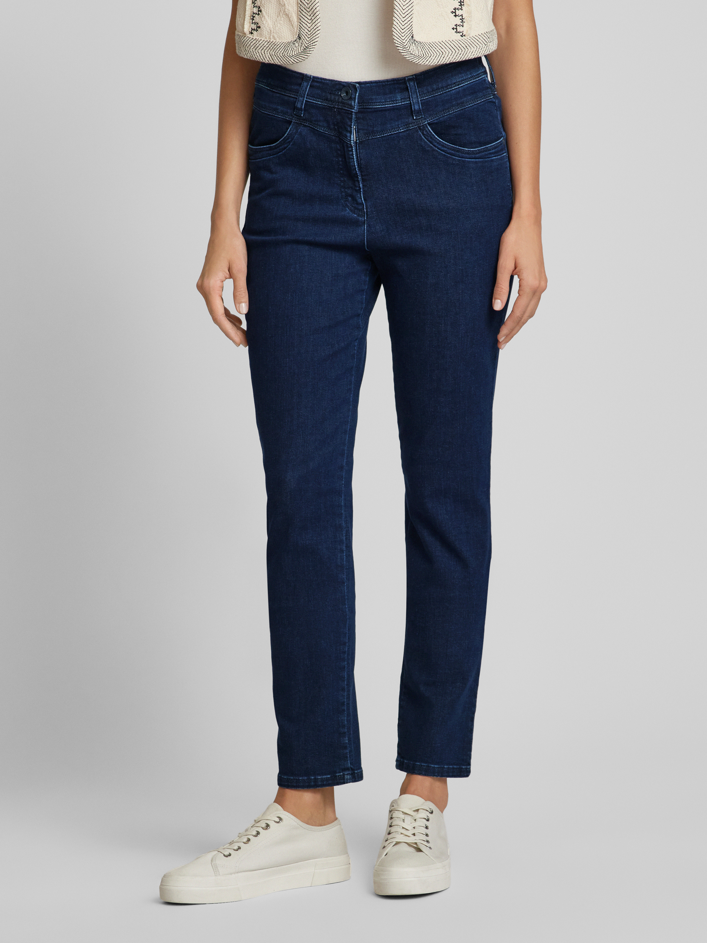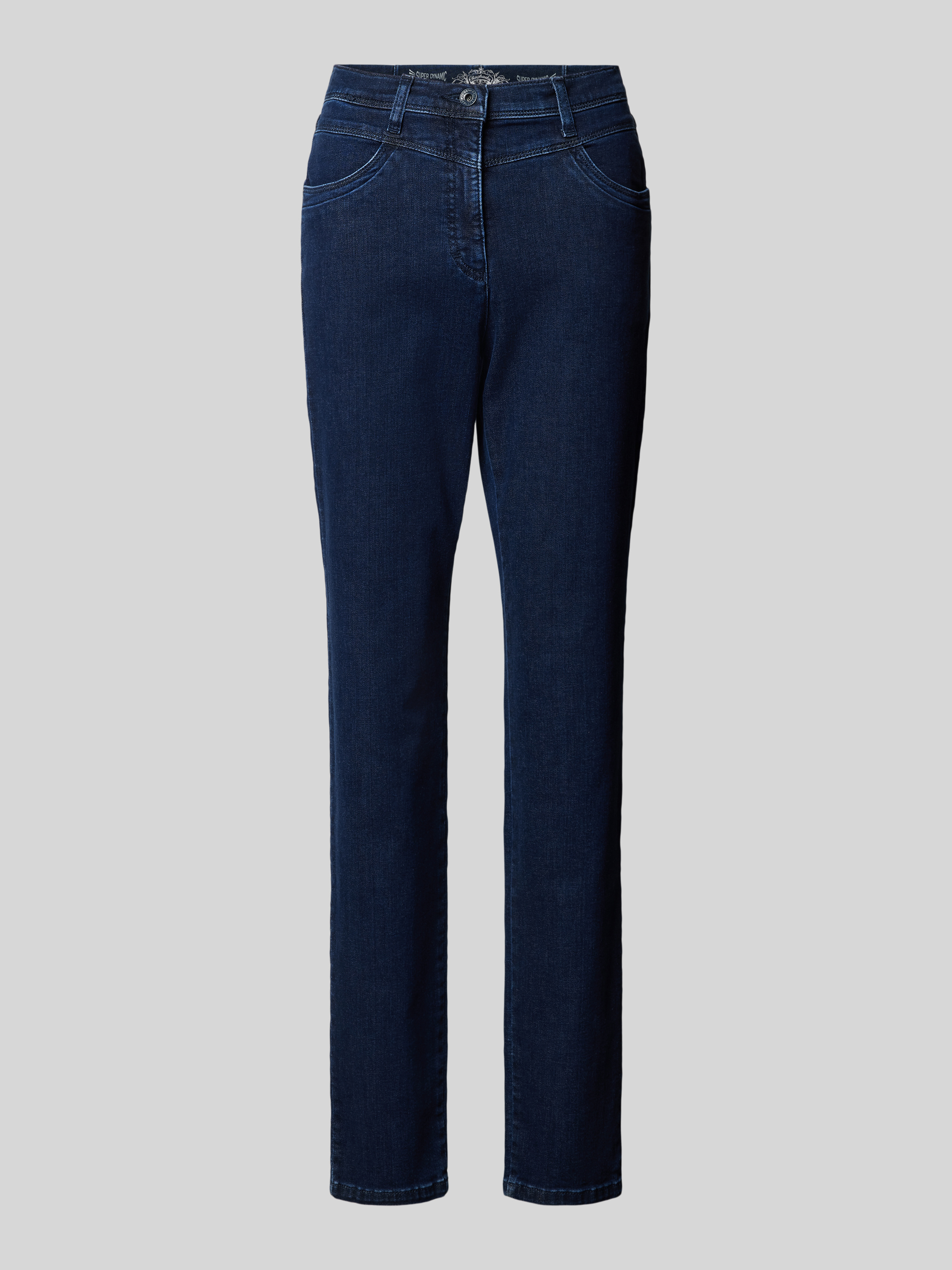 Jeansy z prostą nogawką i ozdobnymi szwami model ‘Laura’ - ciemnoniebieski