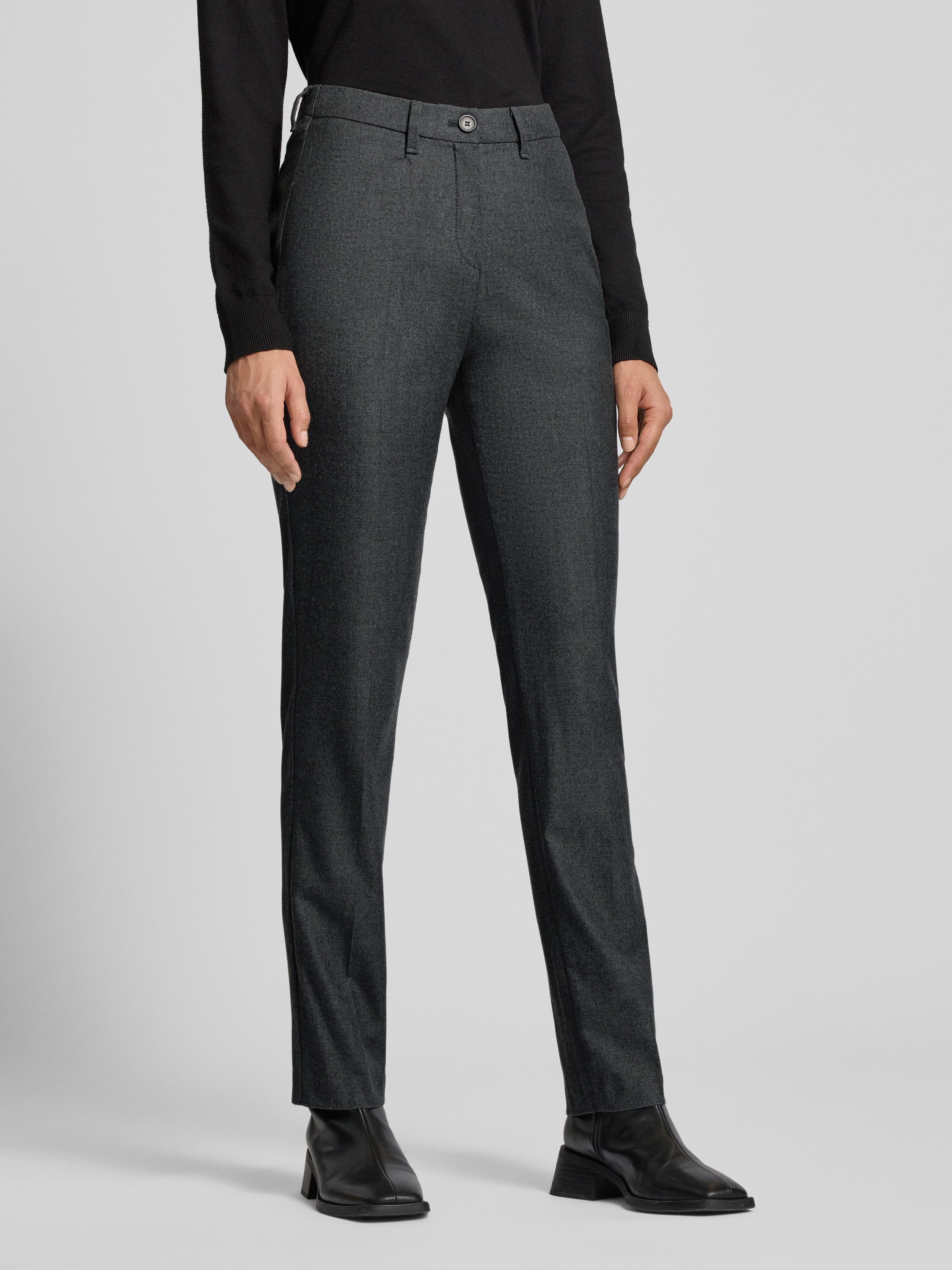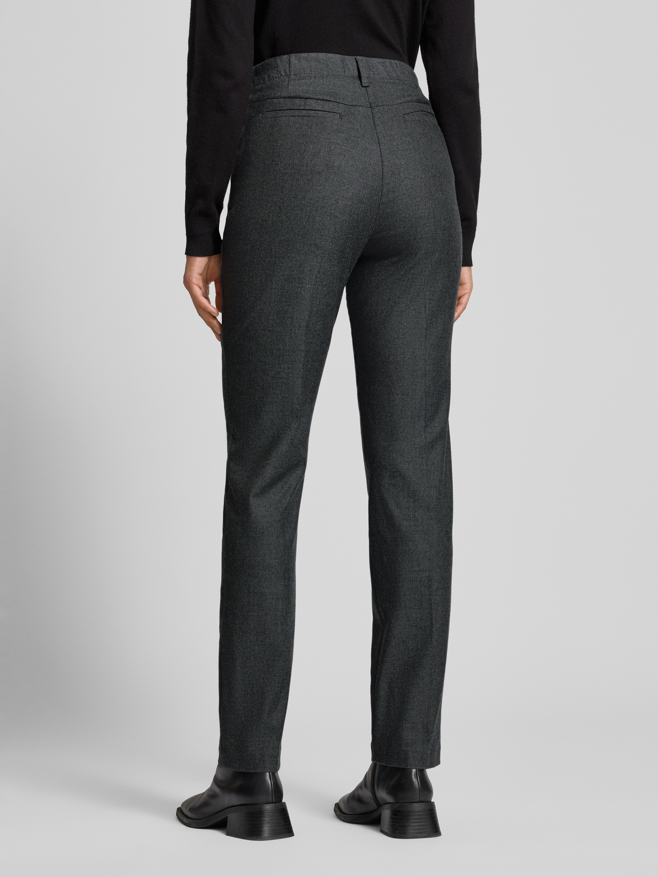 Spodnie o kroju slim fit z mieszanki lyocellu model ‘Pauline’ - antracytowy