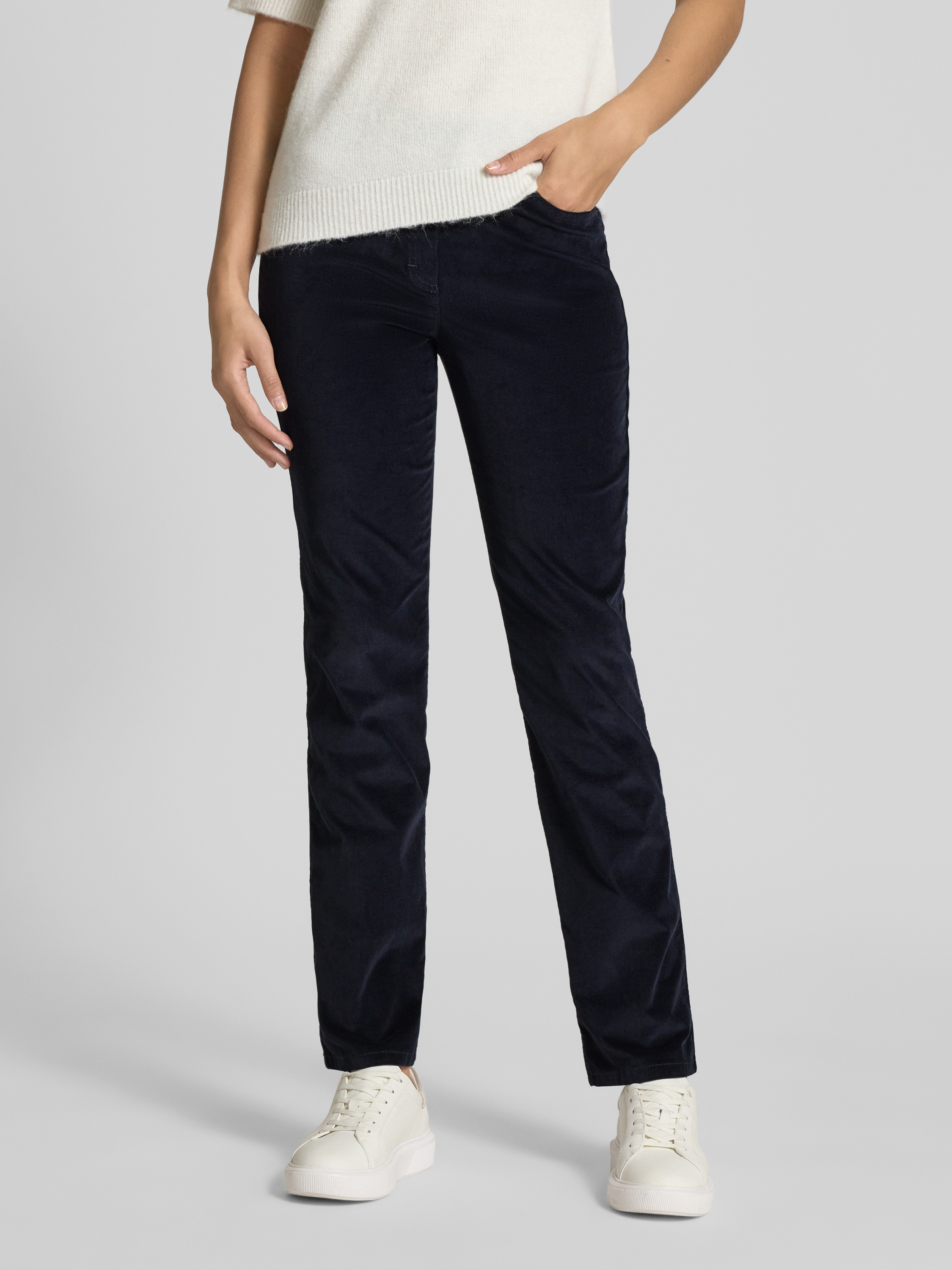 Spodnie rozkloszowane z dodatkiem wiskozy model ‘PAMINA’ - granatowy