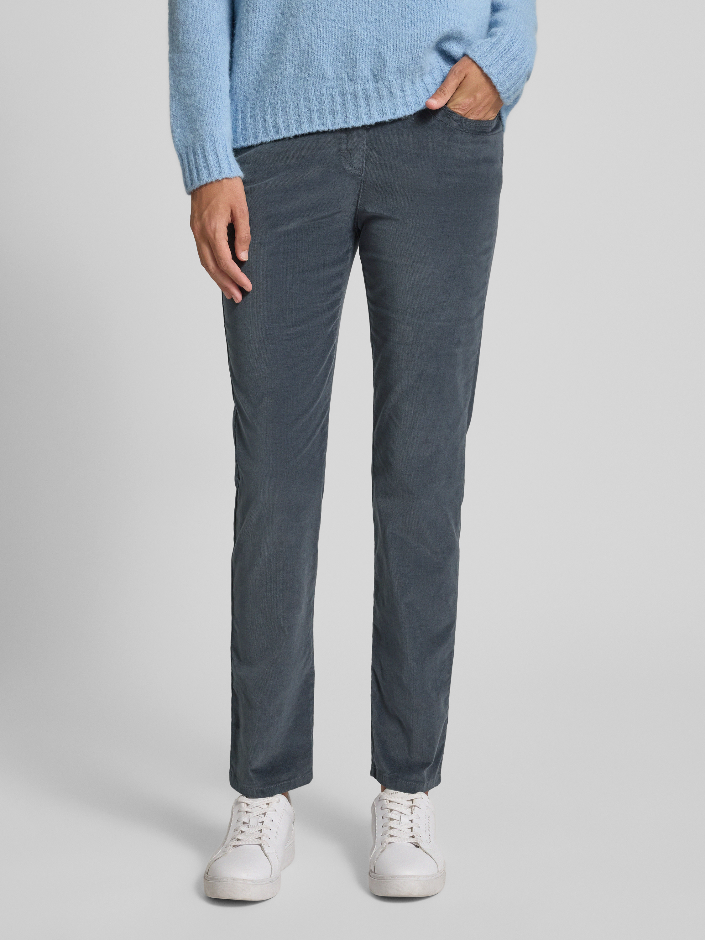 Spodnie sztruksowe o kroju straight fit model ‘Laura’ - antracytowy
