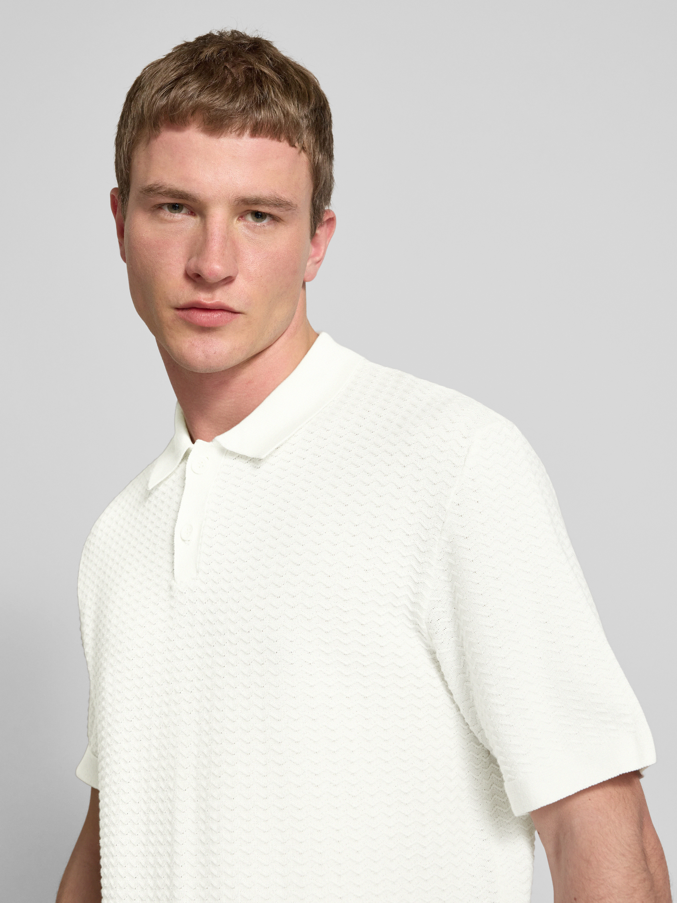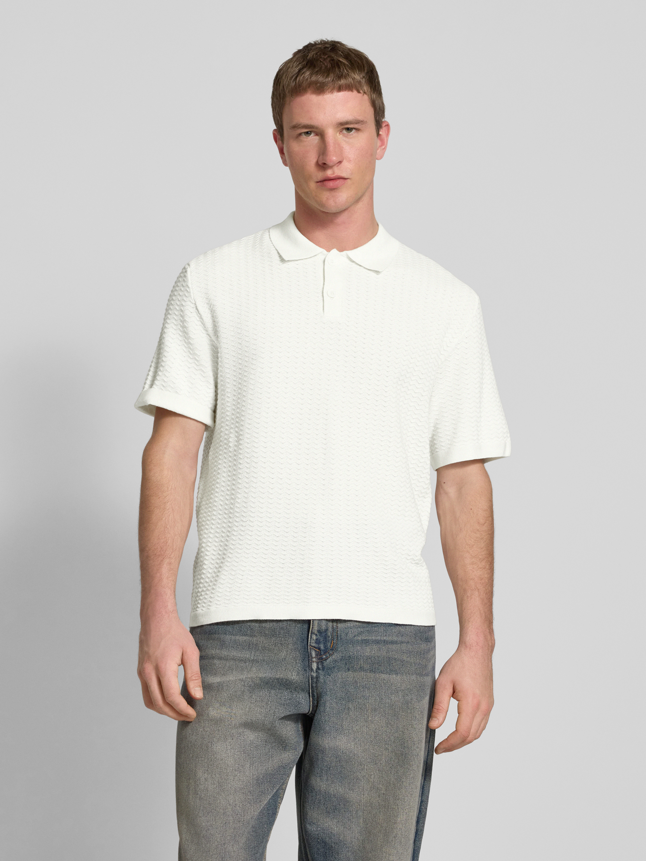 Koszulka polo kroju regular fit z fakturowanym wzorem model ‘FERDINAND’ - biały