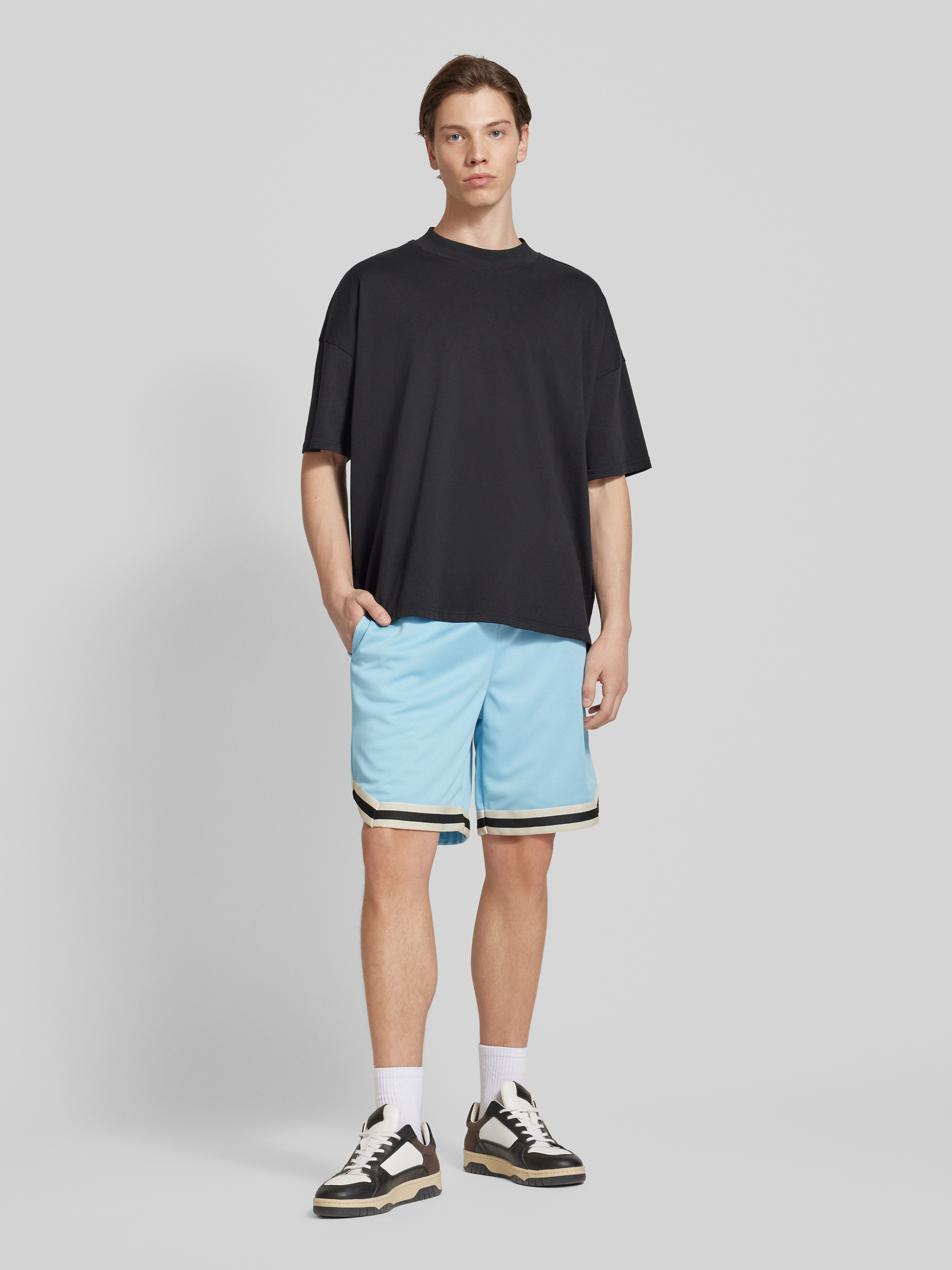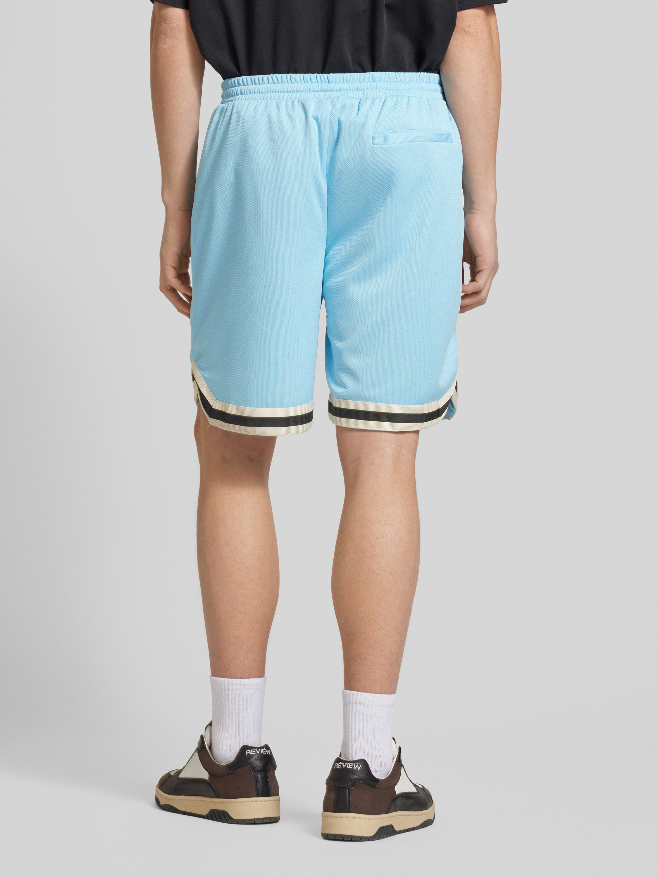 Szorty z siateczki o kroju regular fit z paskami w kontrastowym kolorze model ‘COLLIN’ - jasnoniebieski