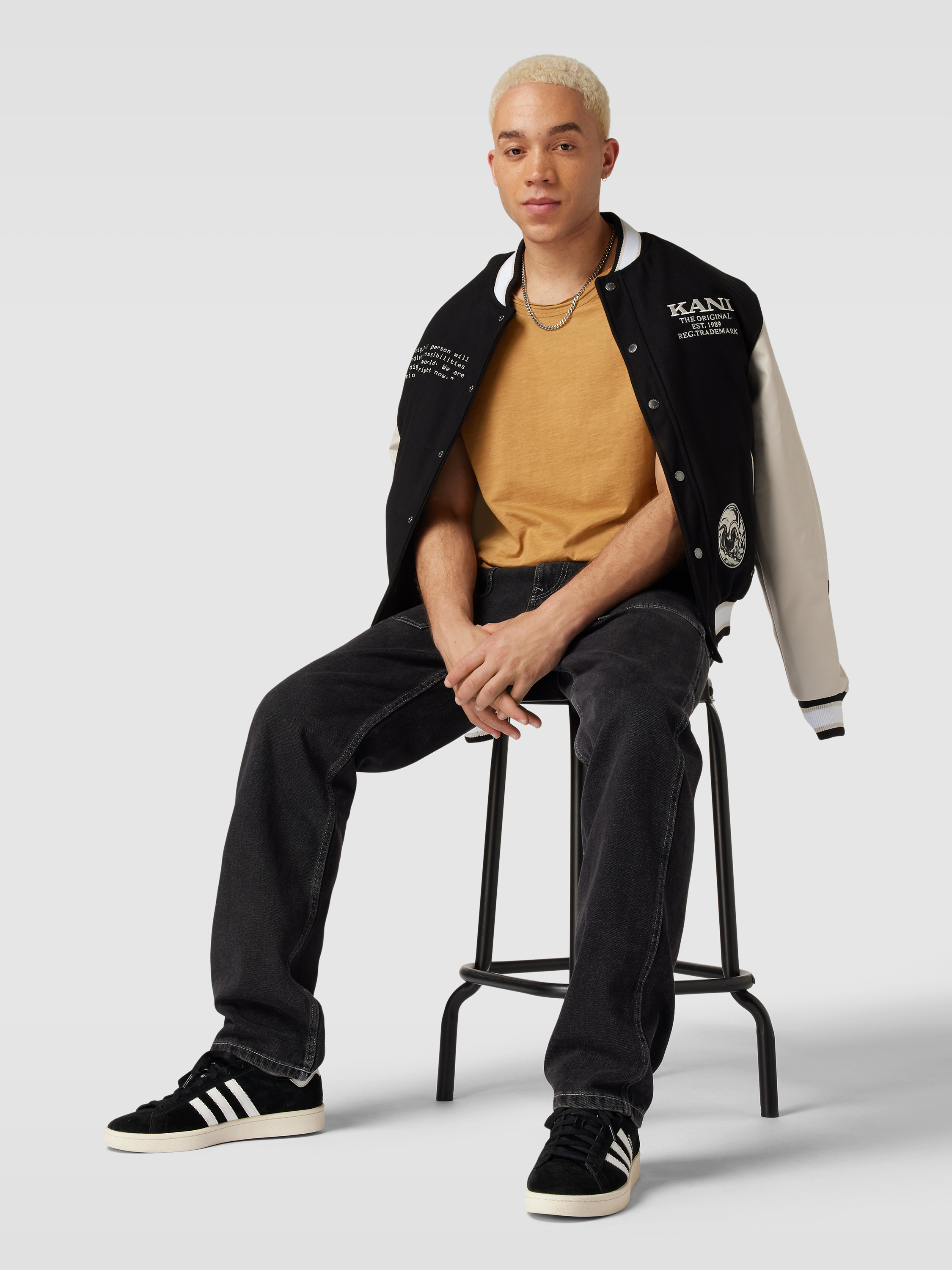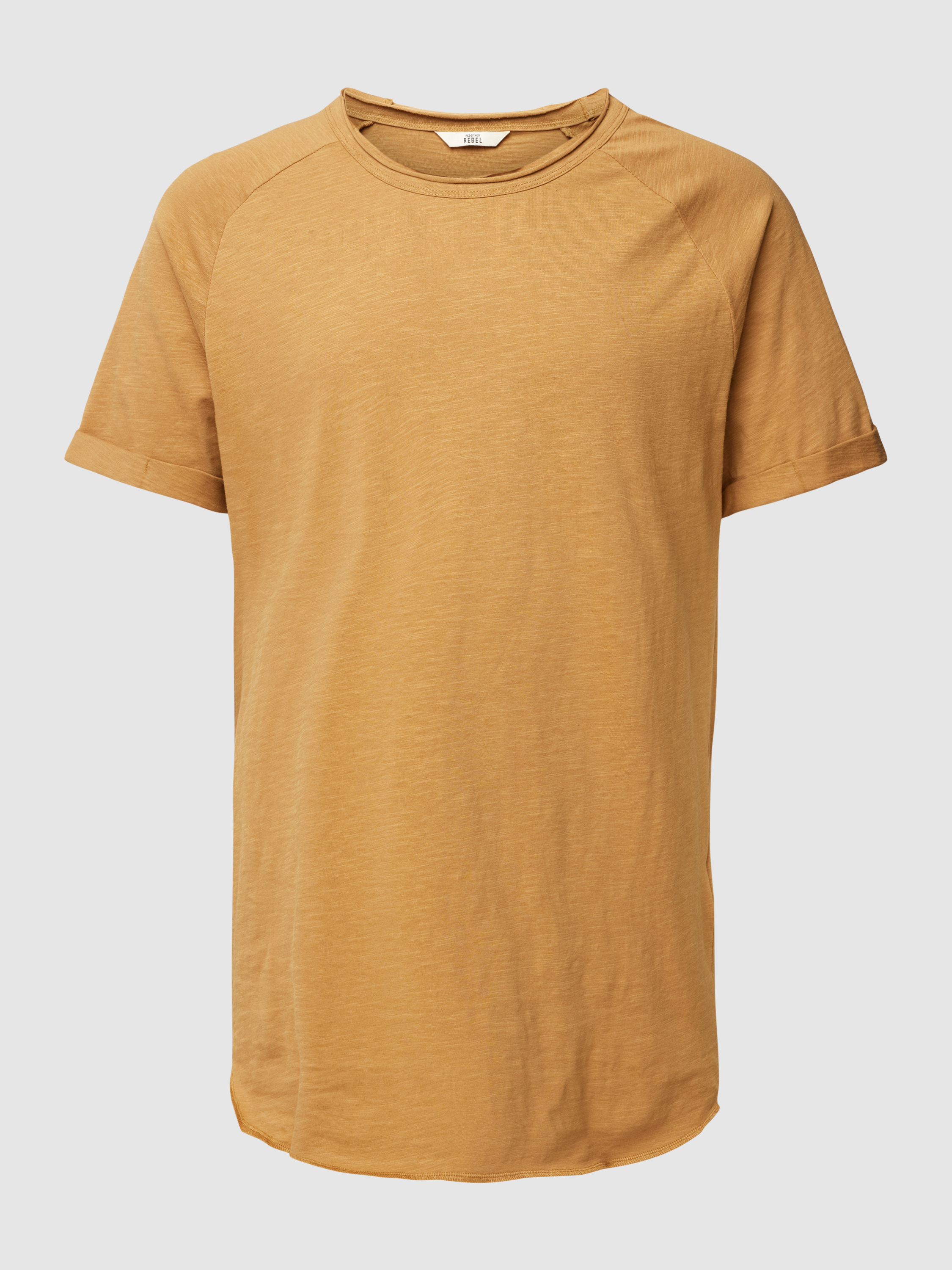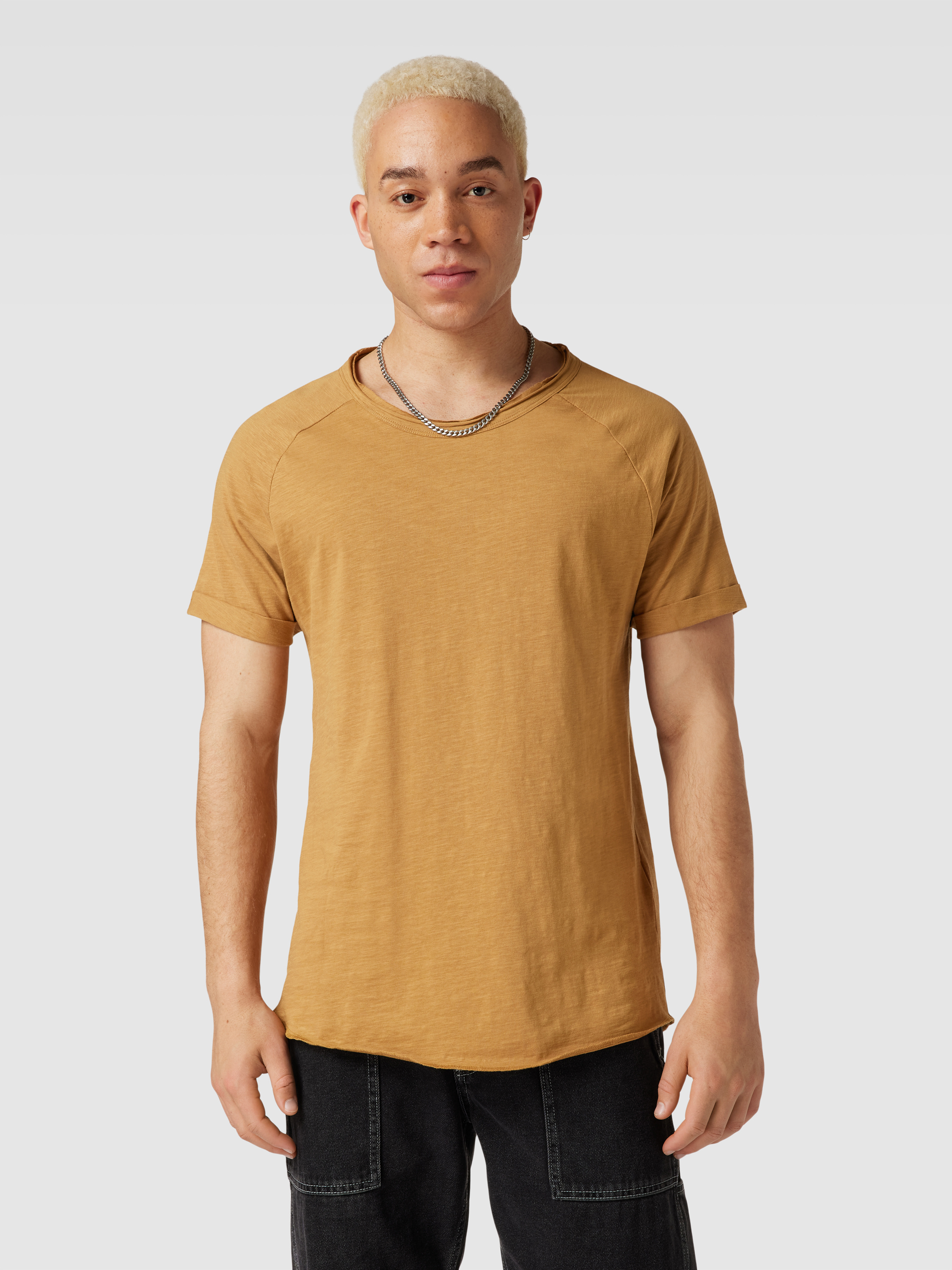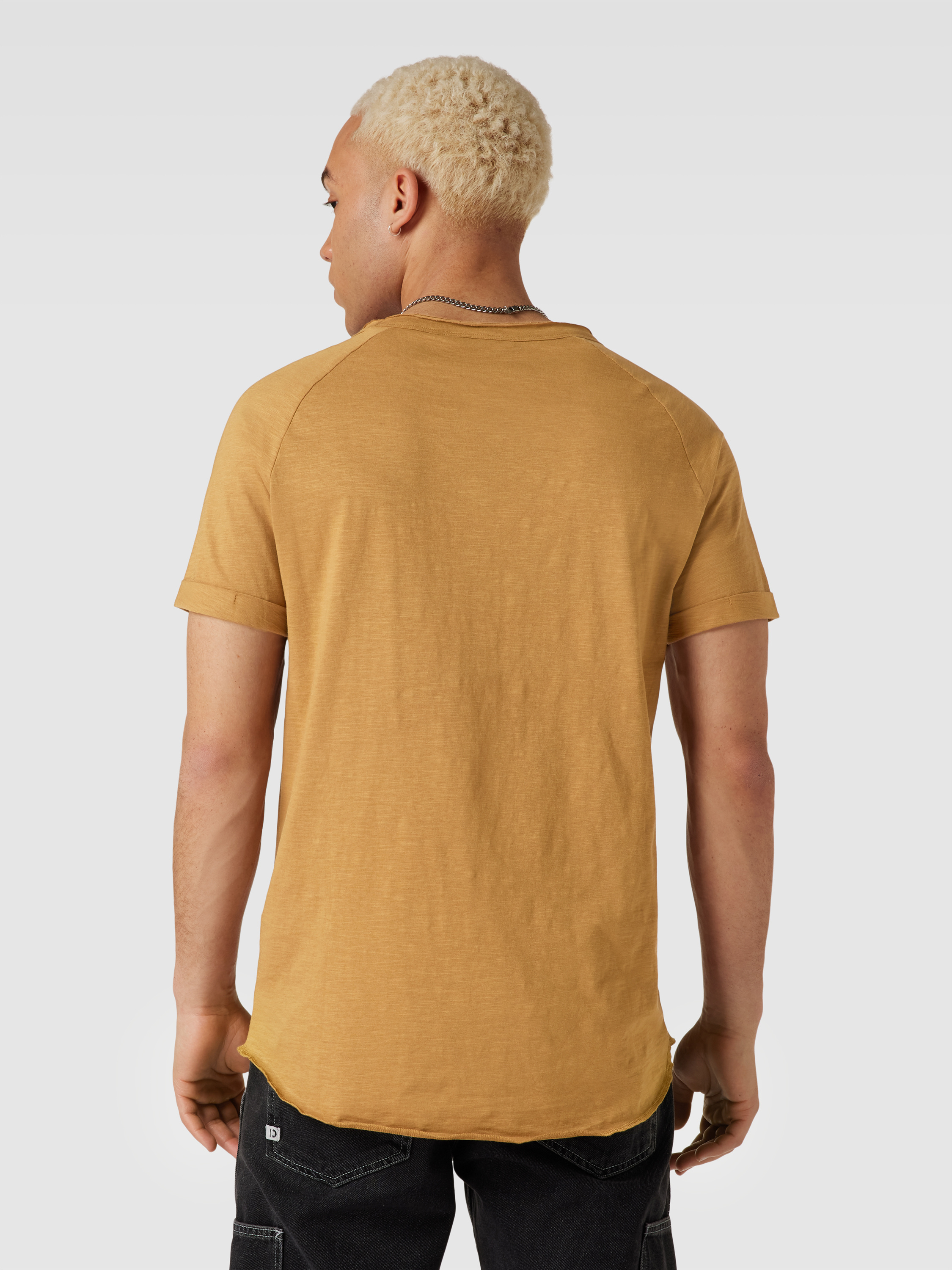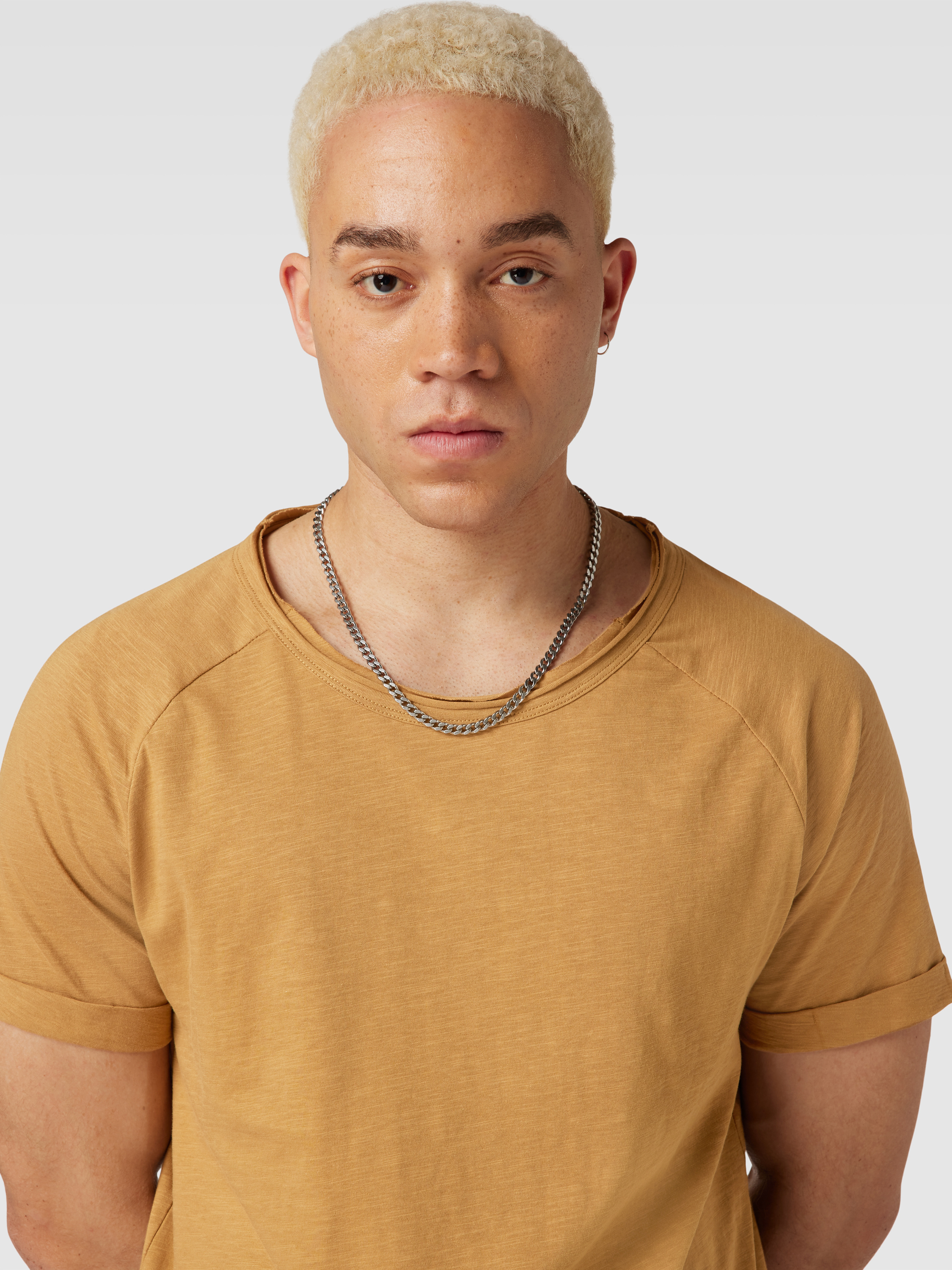 T-shirt z prążkowanym, okrągłym dekoltem model ‘KAS’ - musztardowy
