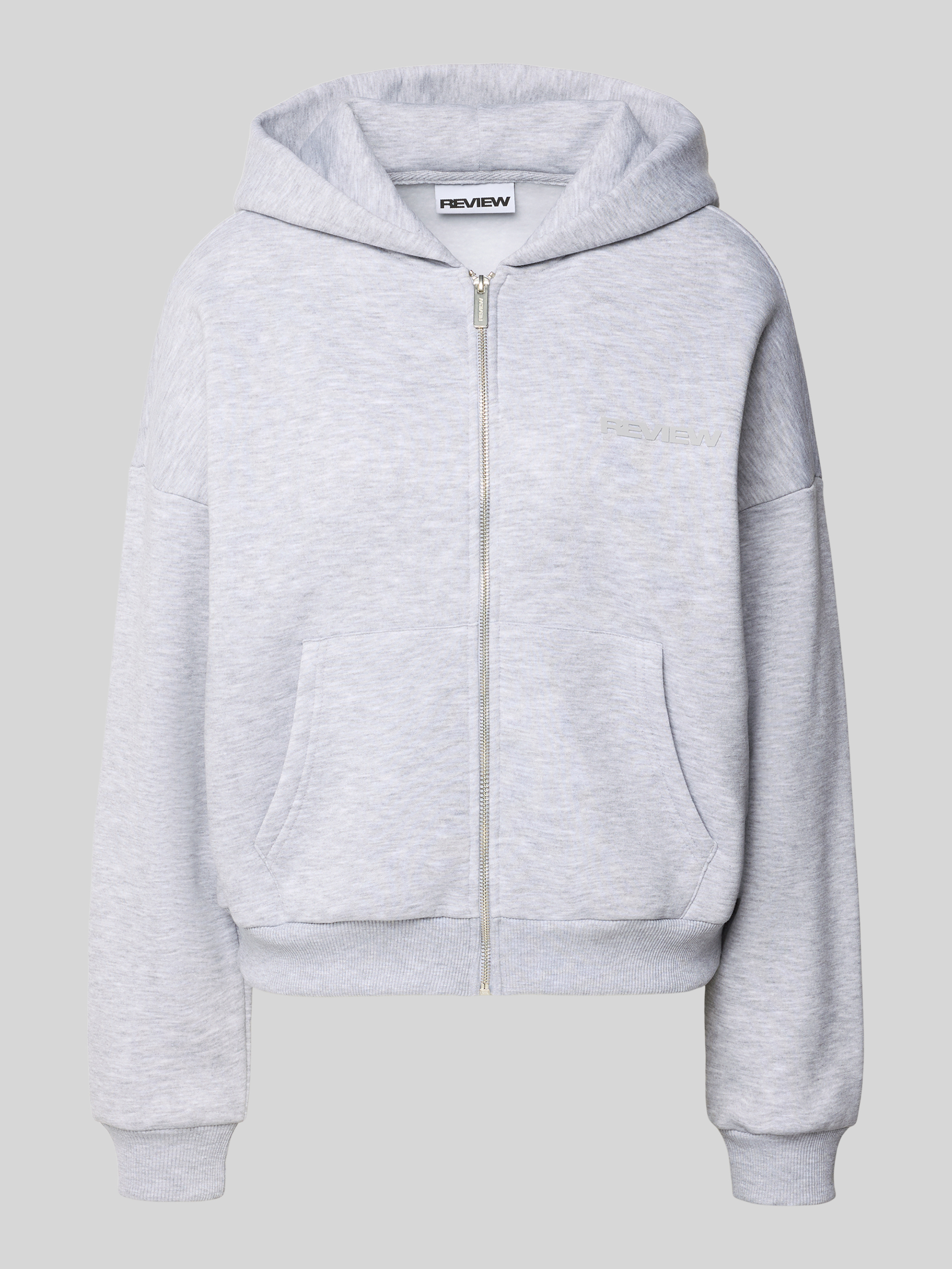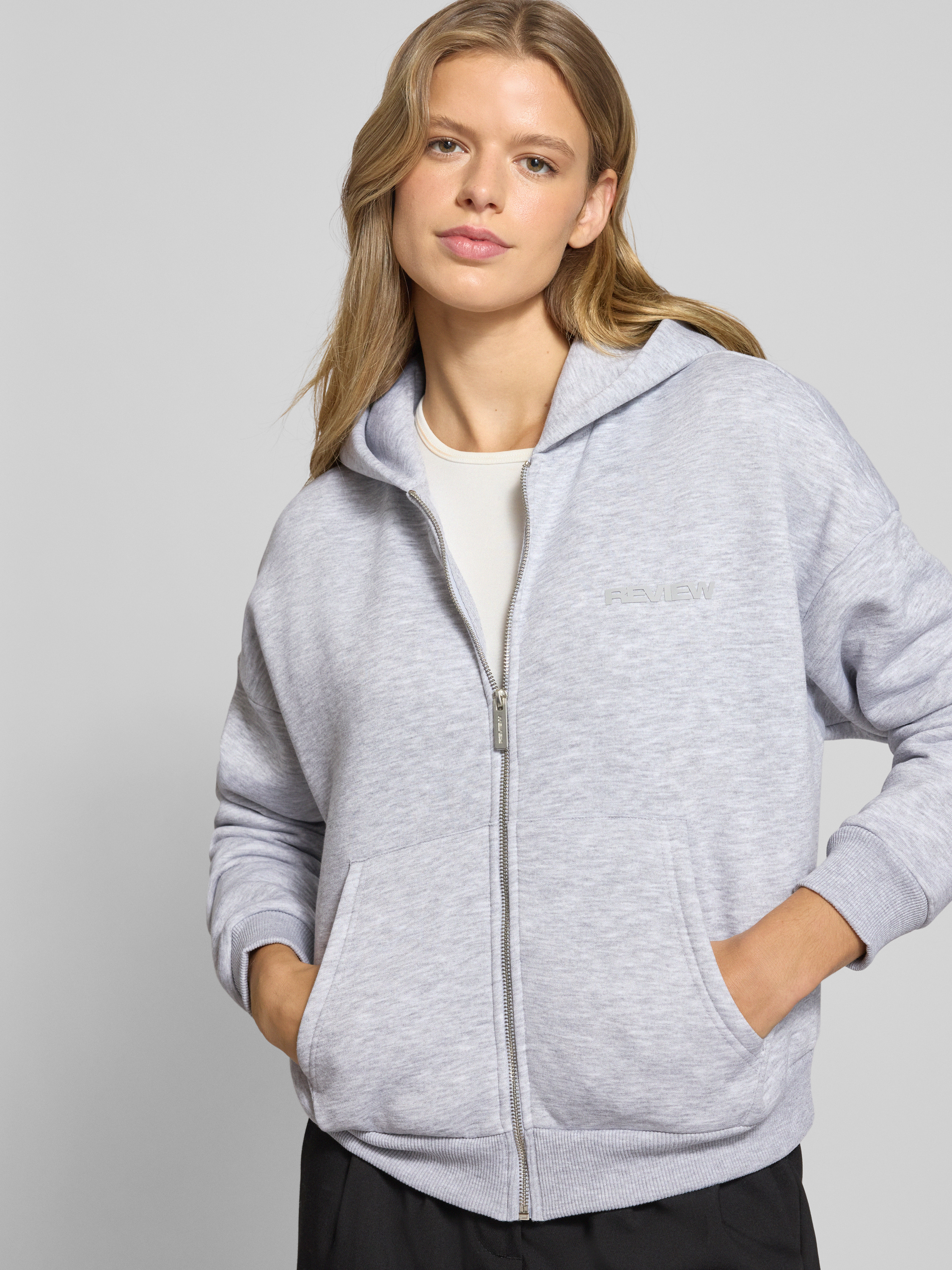 Bluza rozpinana oversized z kapturem - jasnoszary melanż