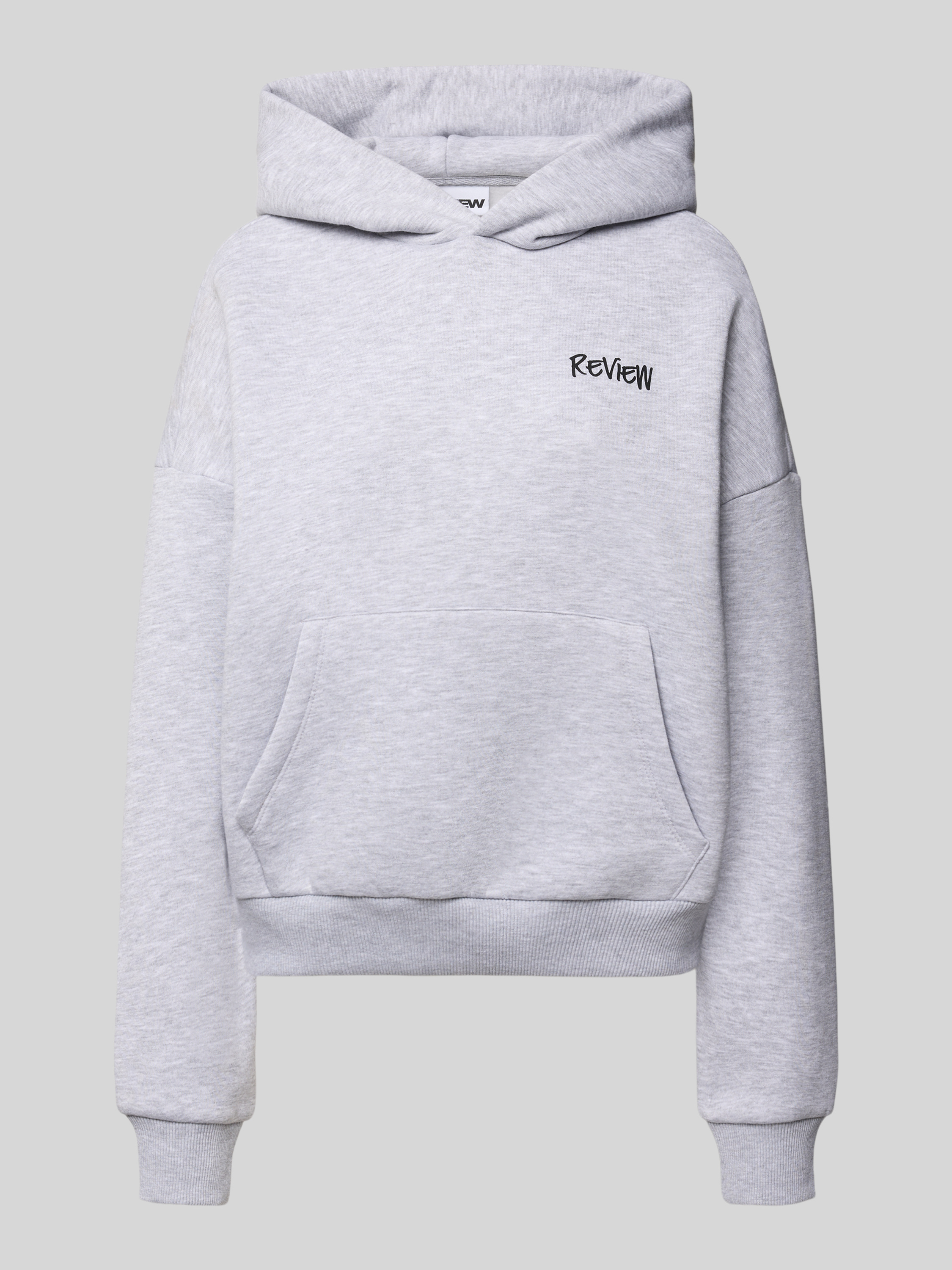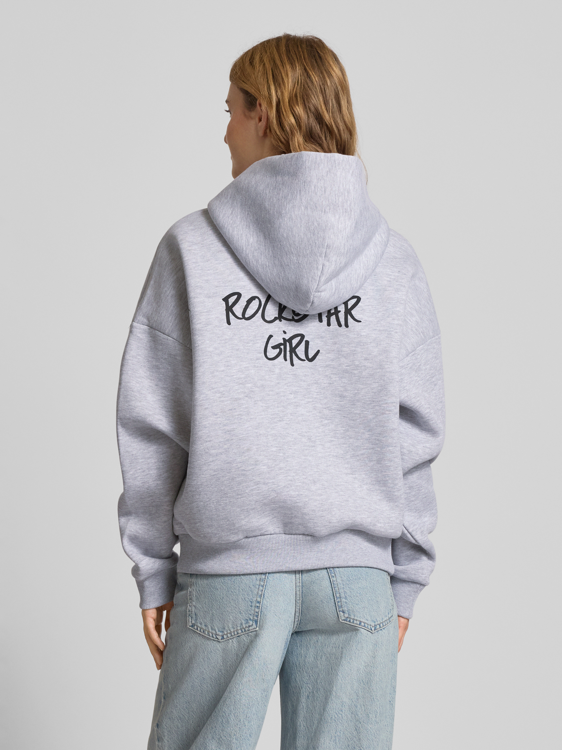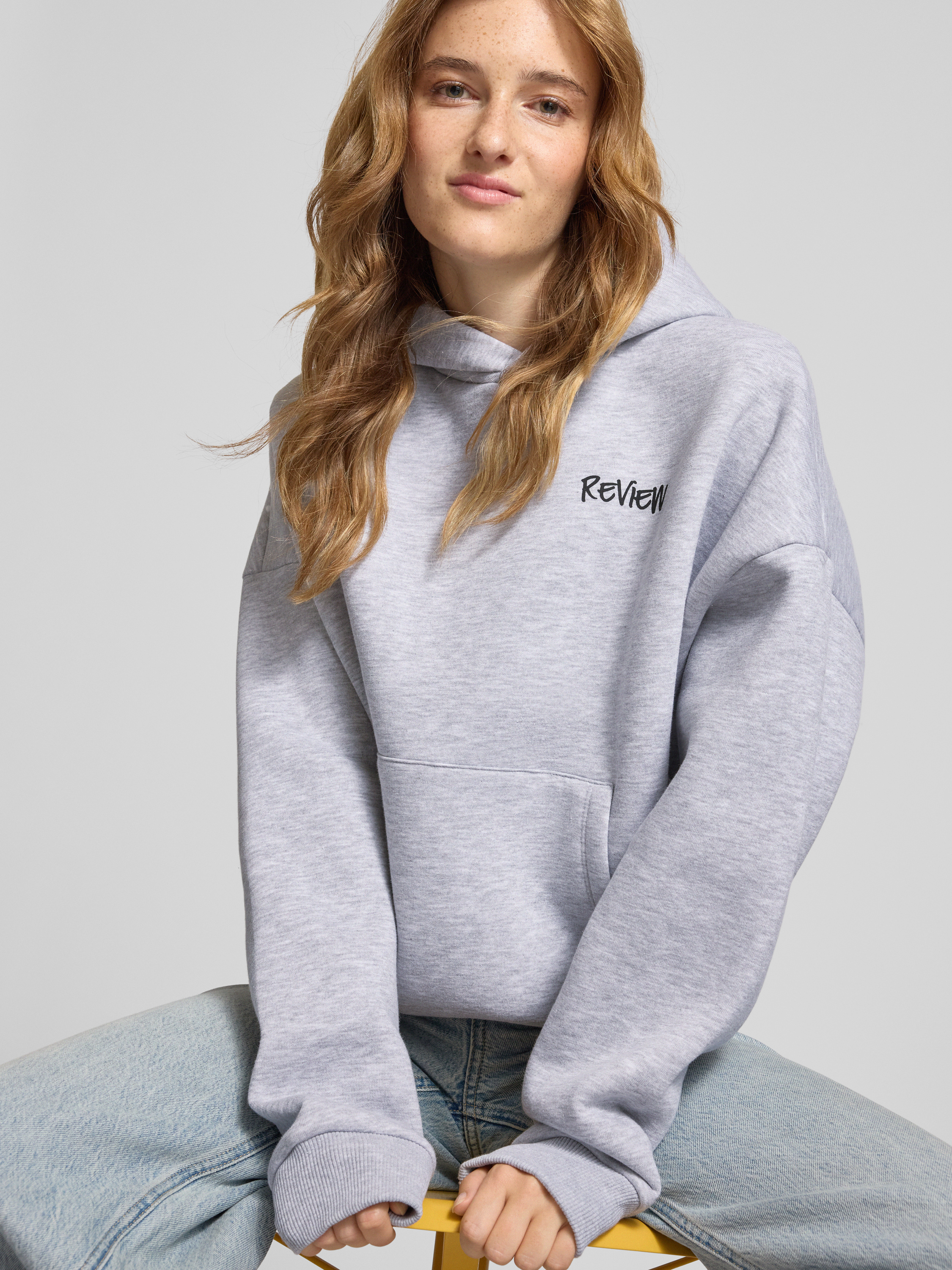 Bluza z kapturem o kroju oversized z nadrukiem z logo - jasnoszary melanż