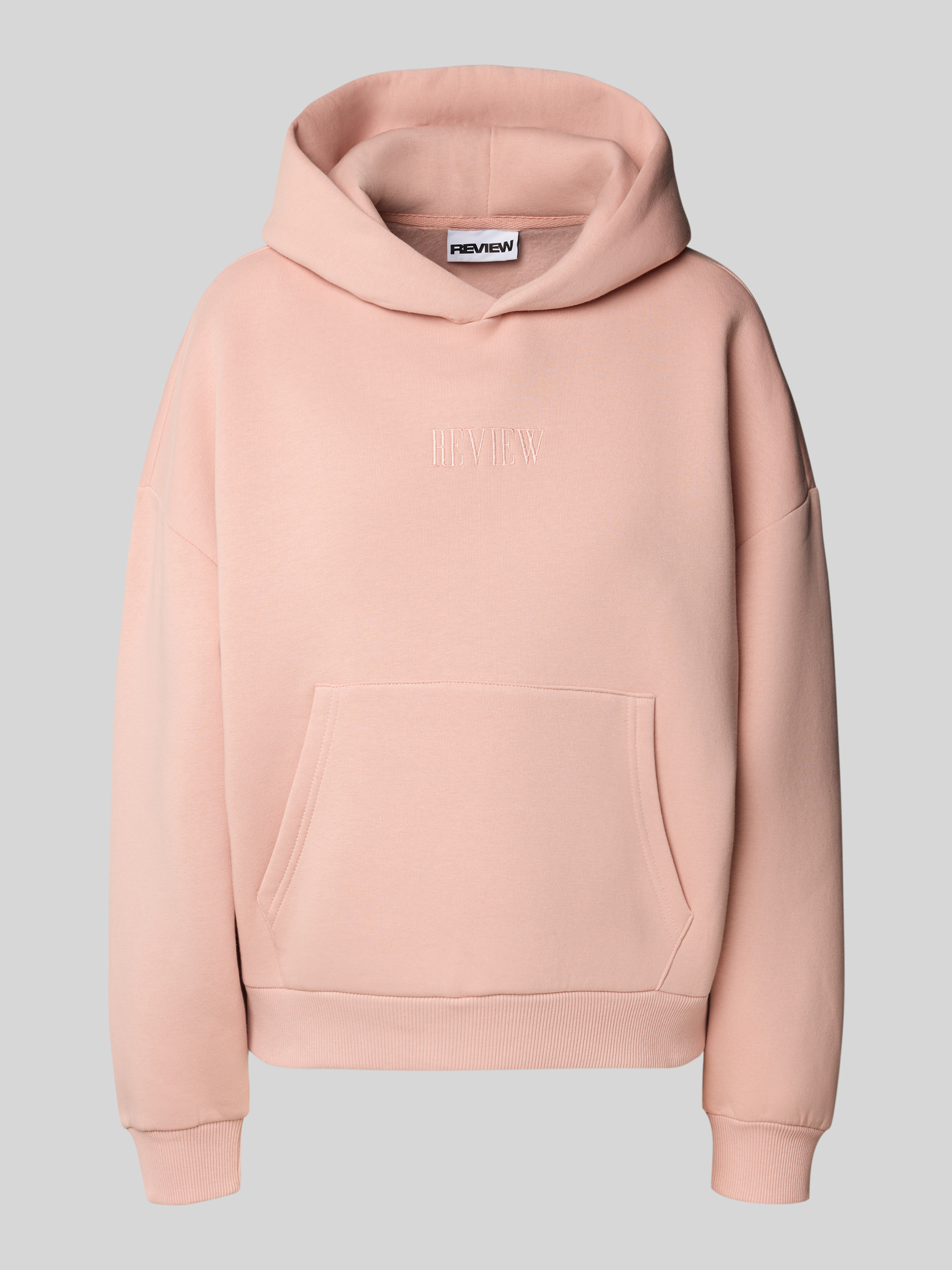 Bluza z kapturem, wyhaftowanym logo i kieszenią kangurką - brudnoróżowy