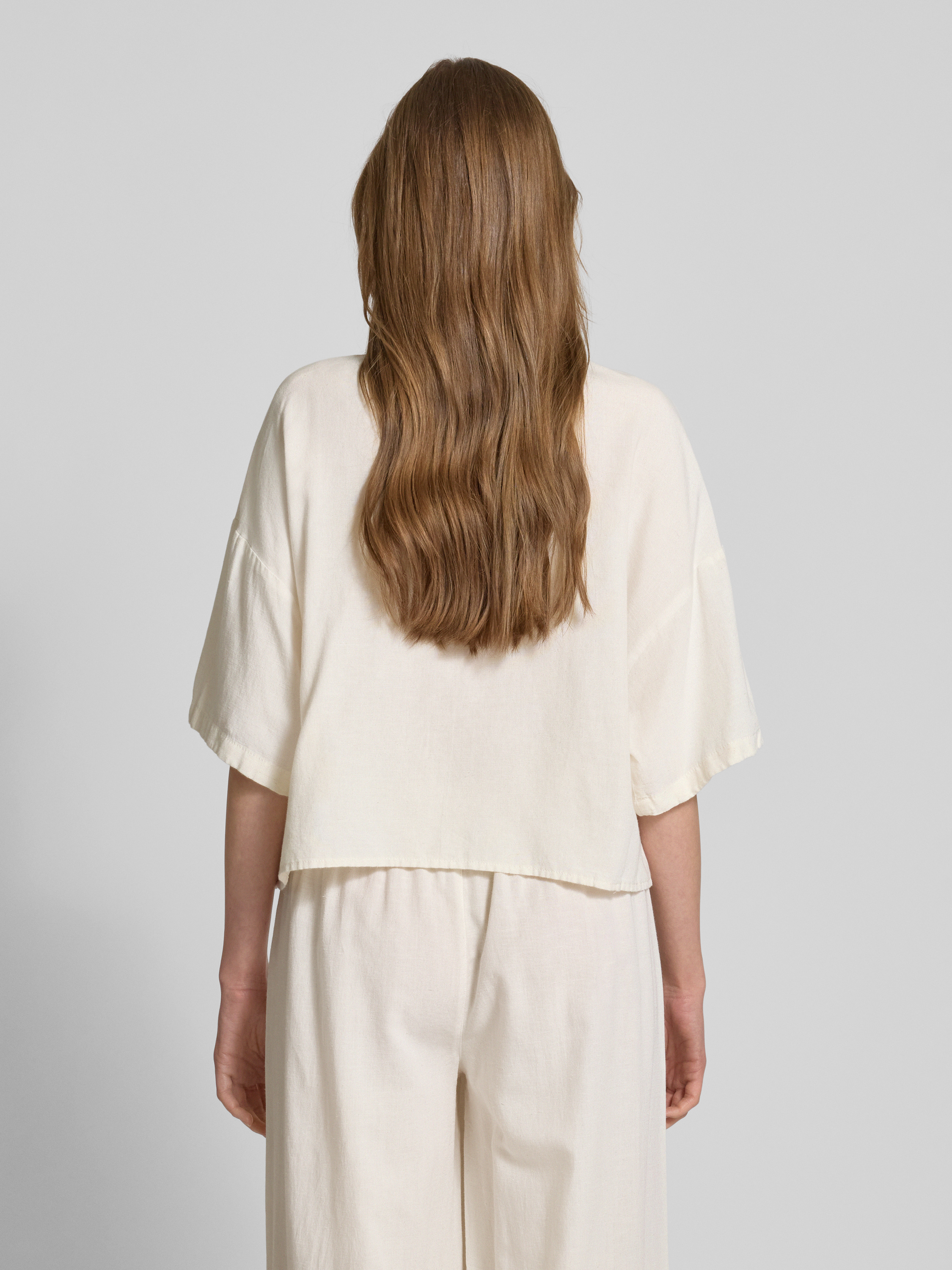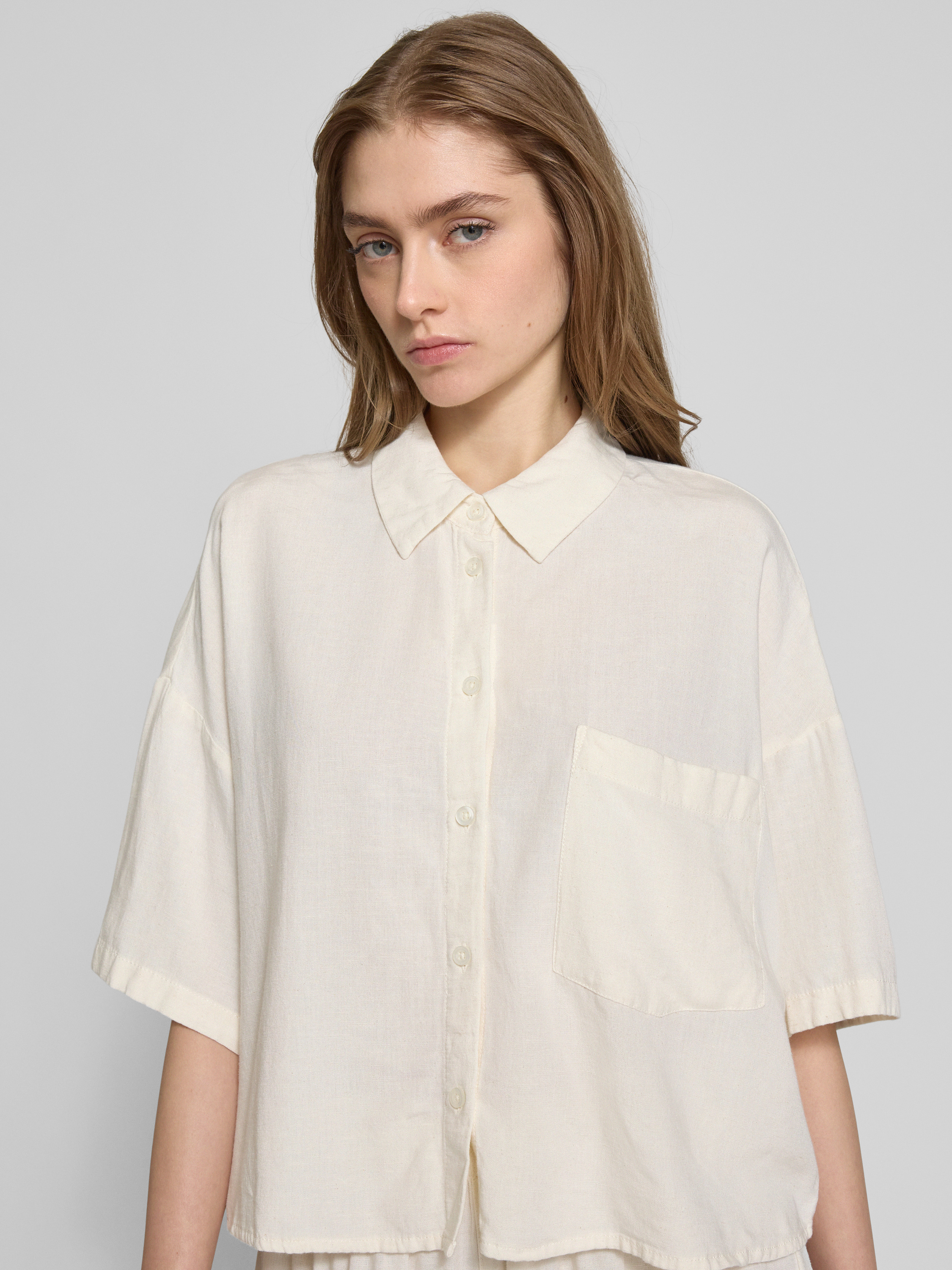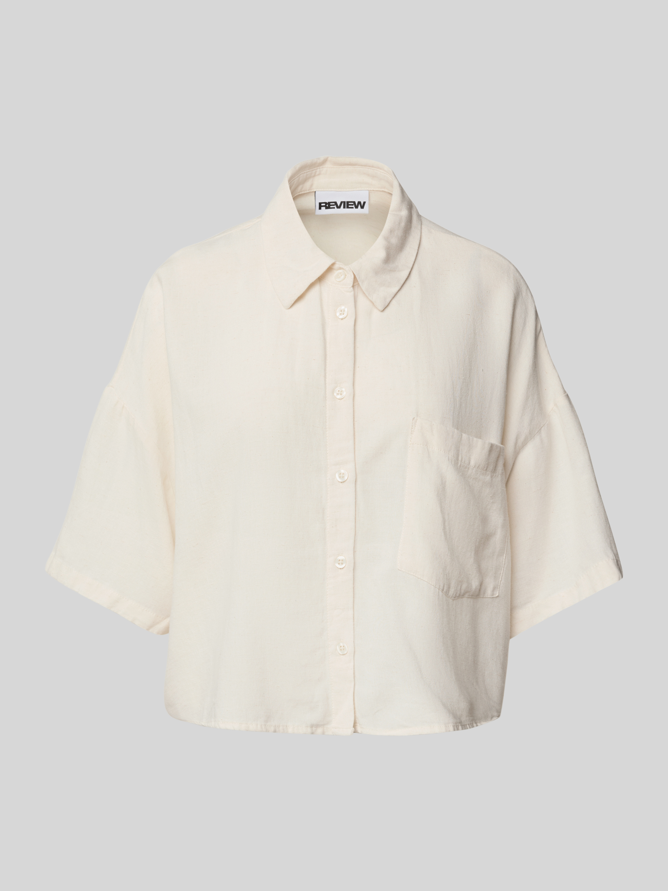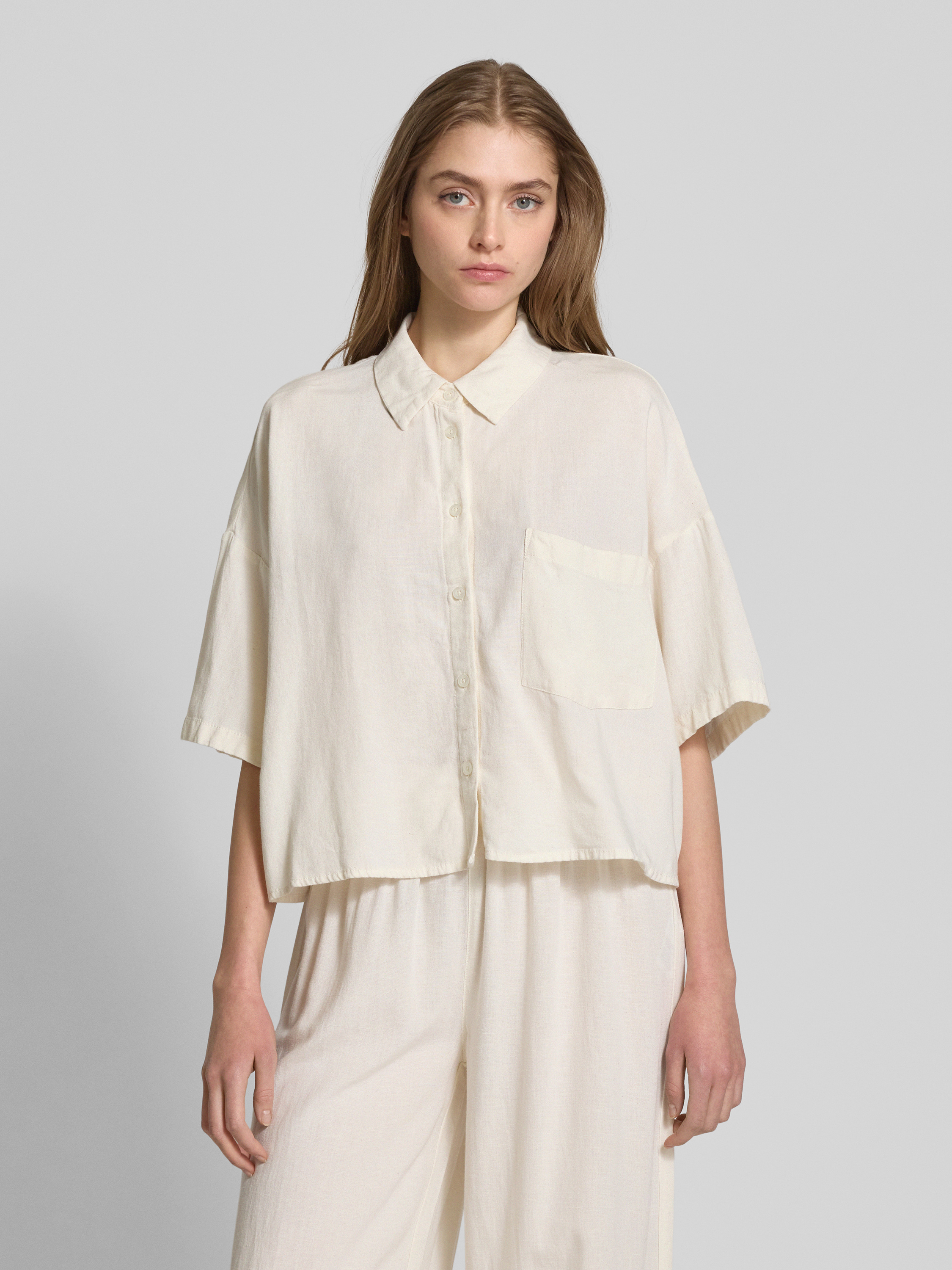 Bluzka koszulowa o pudełkowym kroju z kieszenią na piersi - złamany biały
