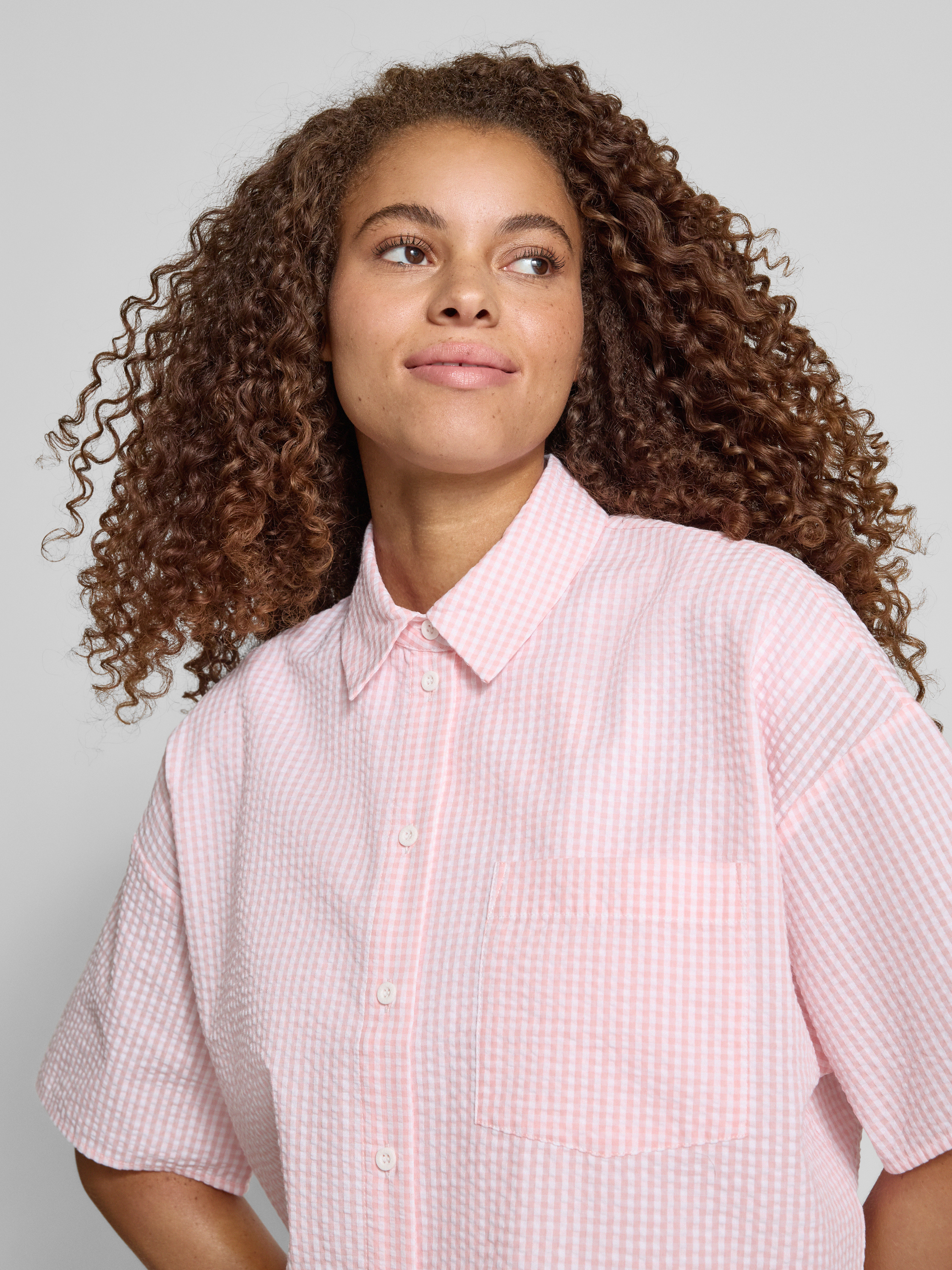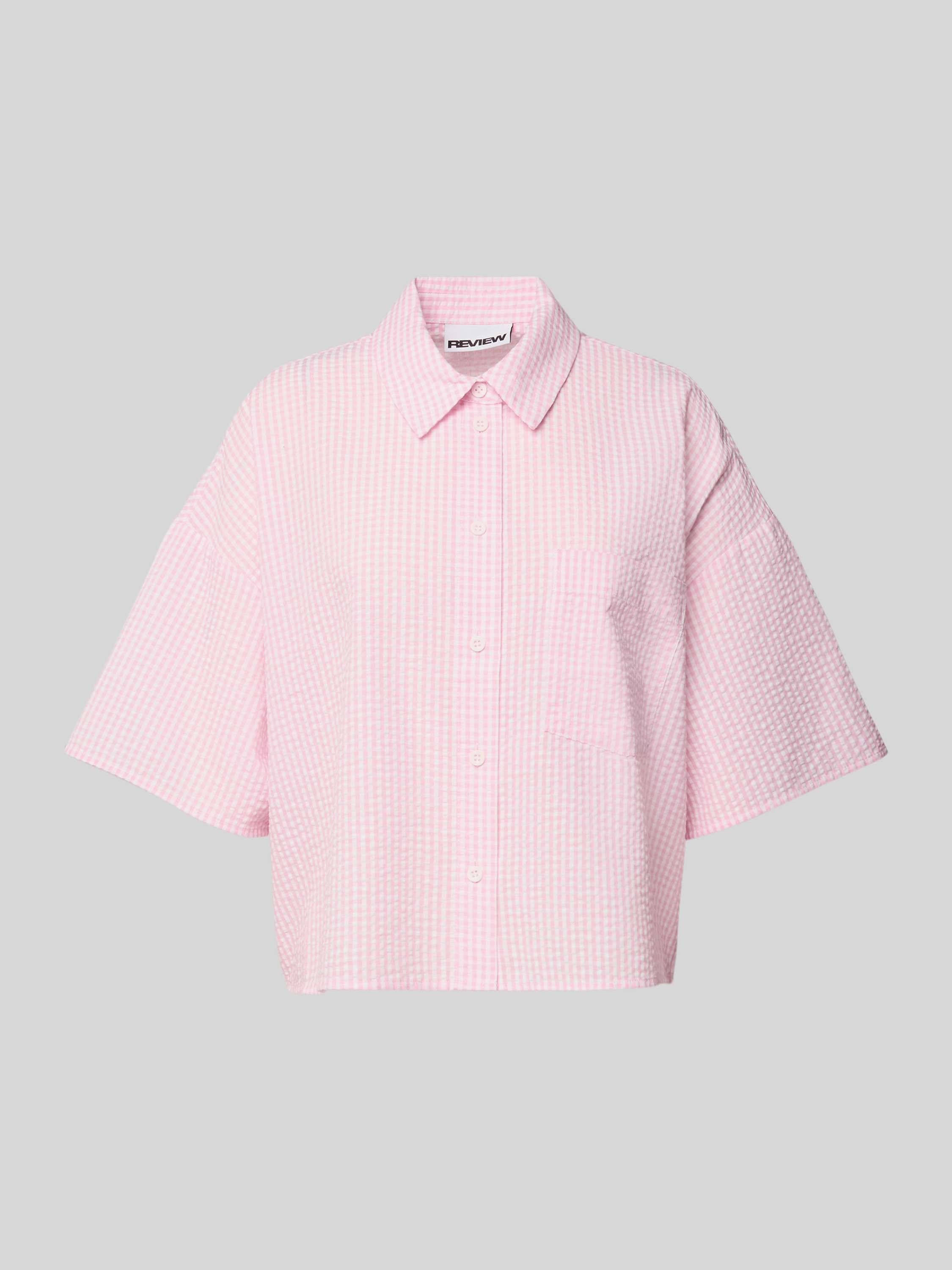 Bluzka z nakładaną kieszenią na piersi i kołnierzykiem koszulowym - różowy