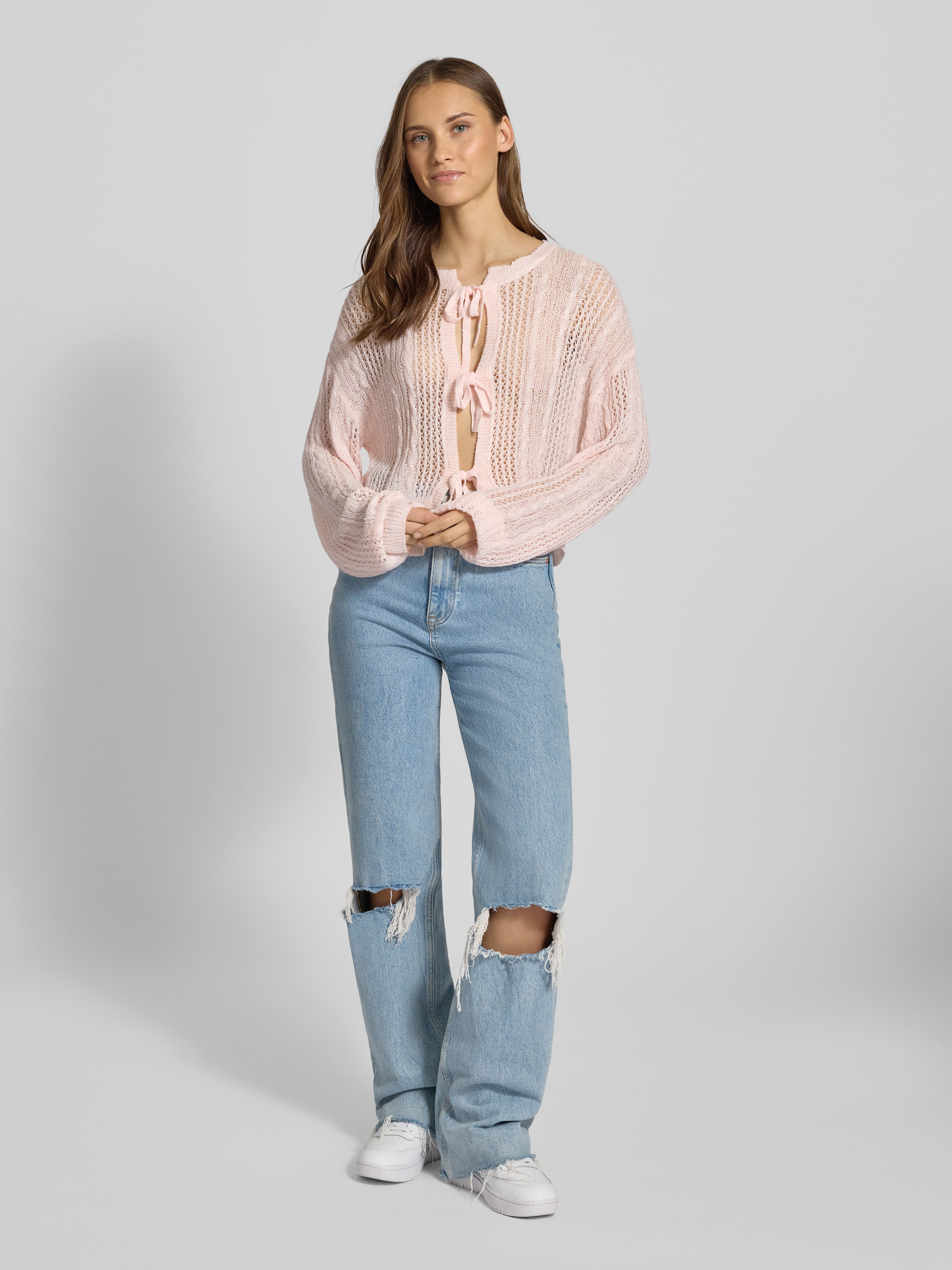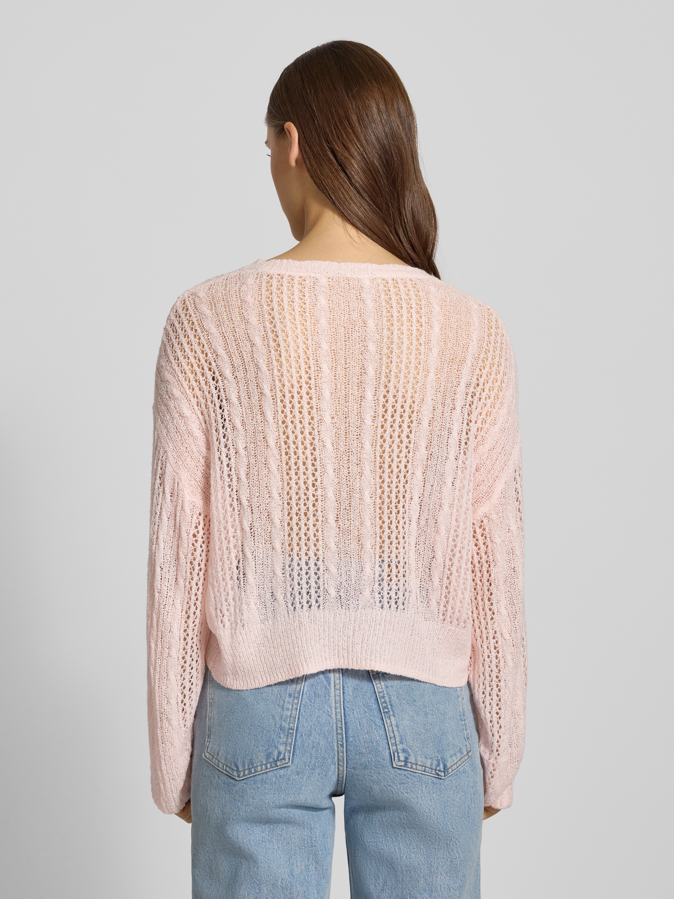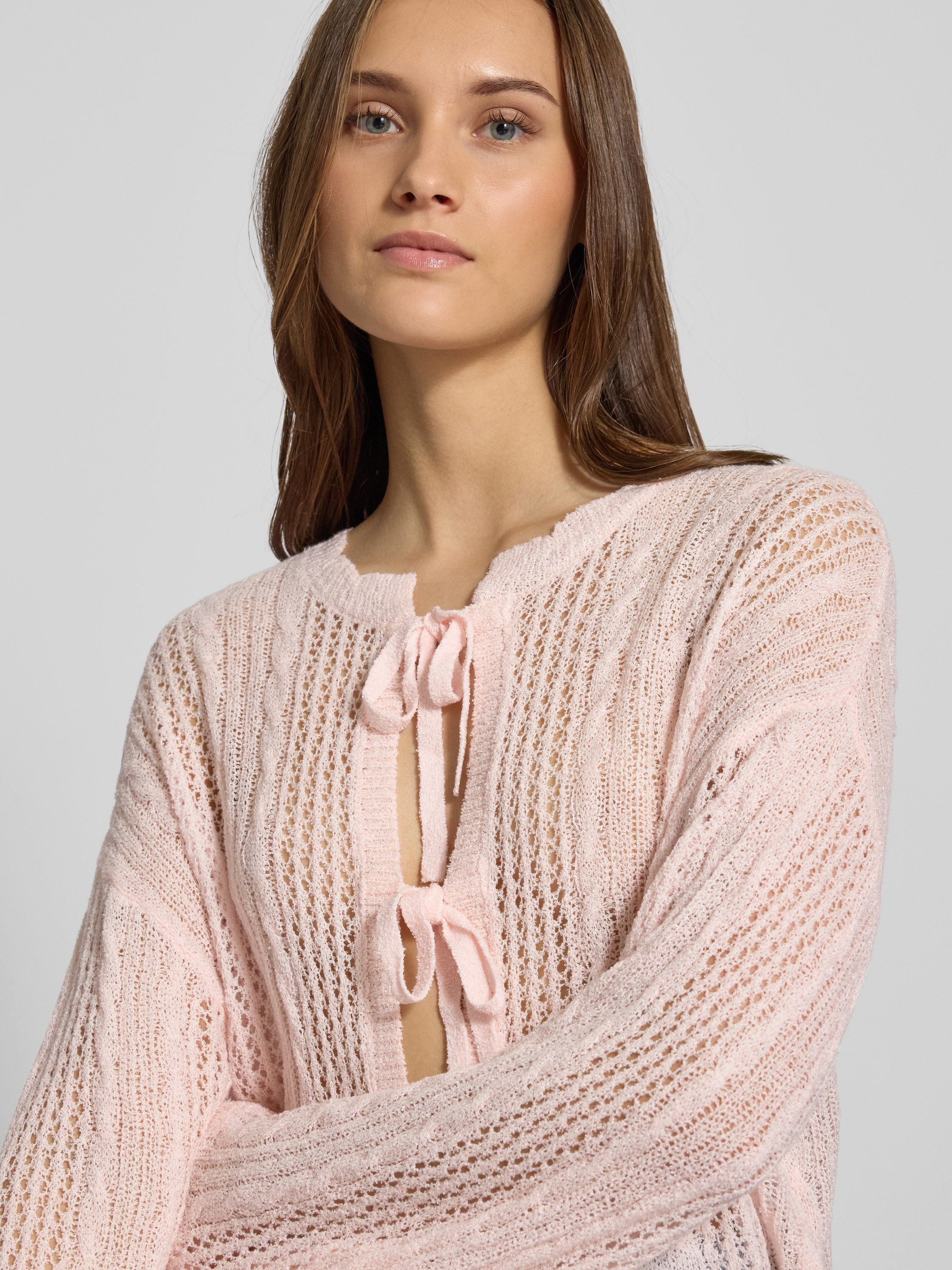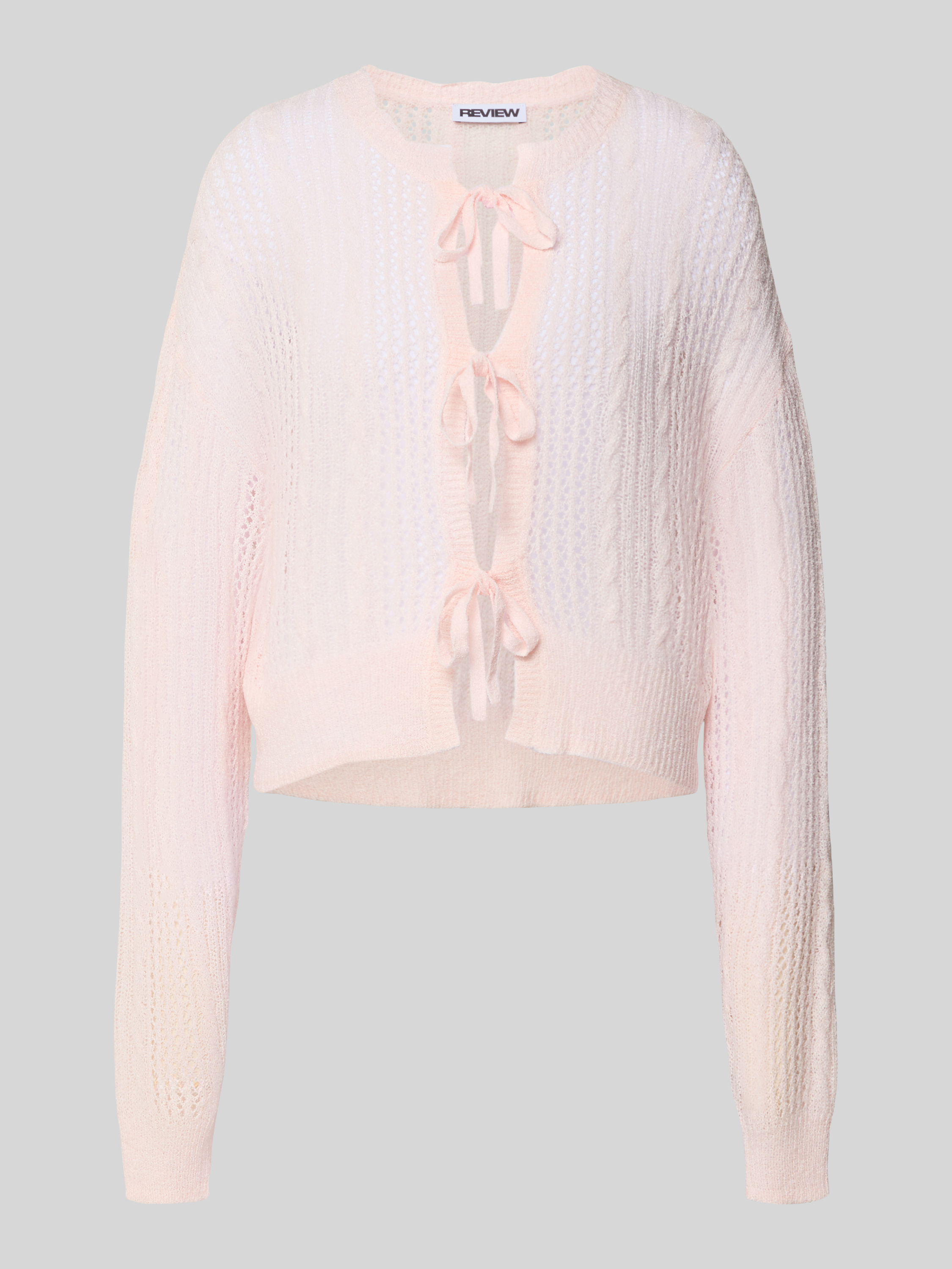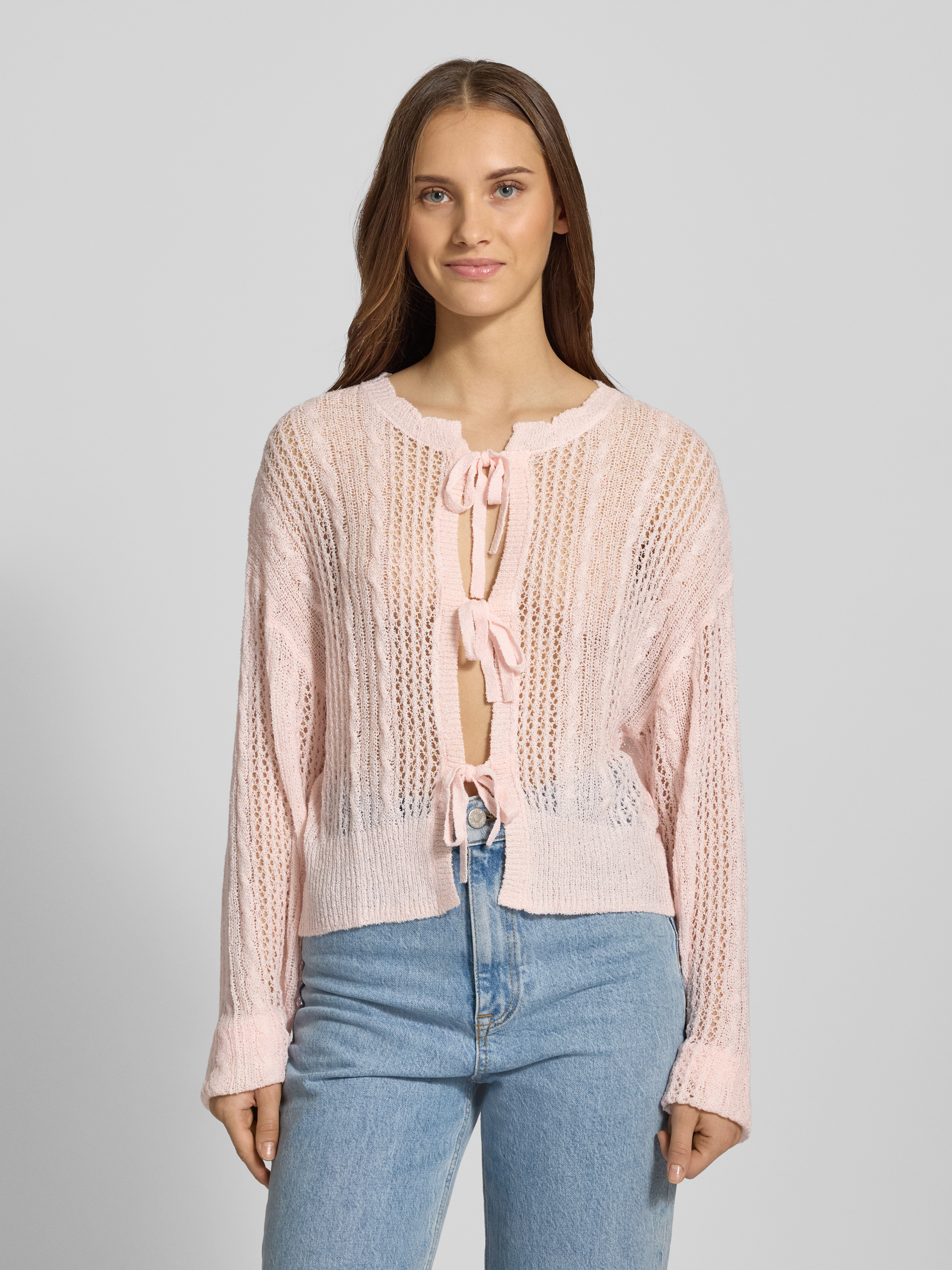 Kardigan z dzianiny z ażurowym wzorem - różowy