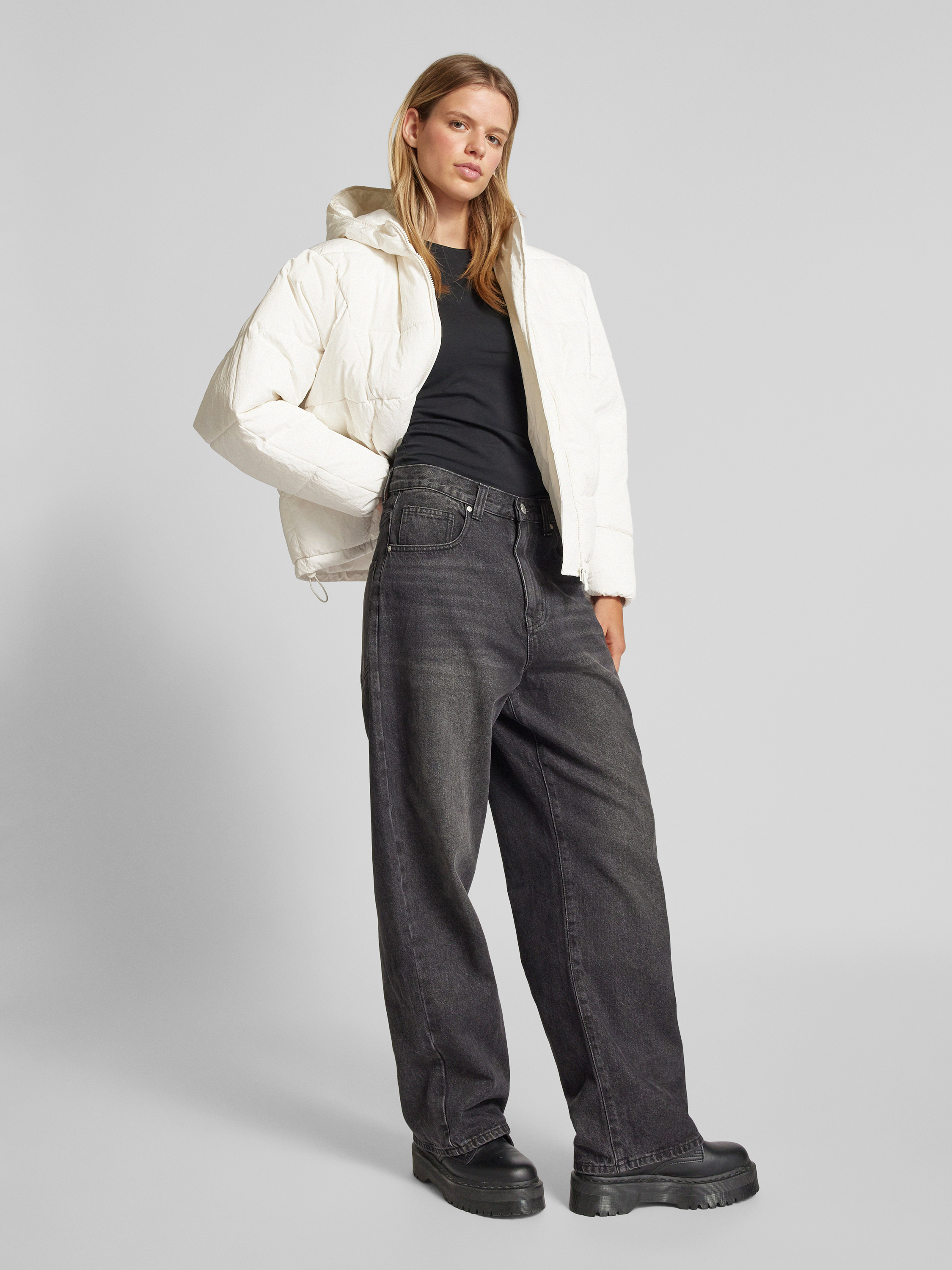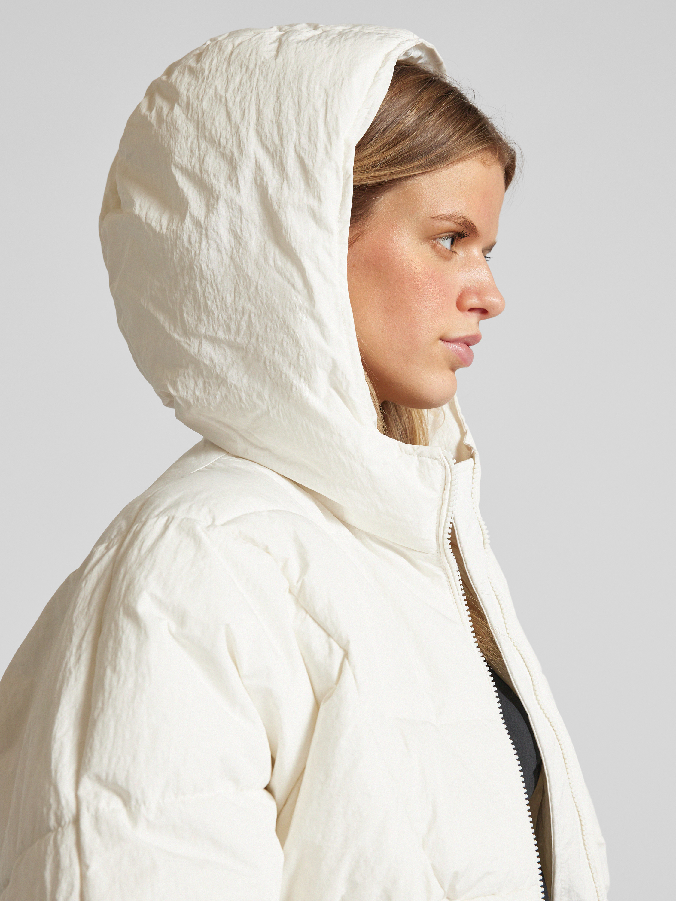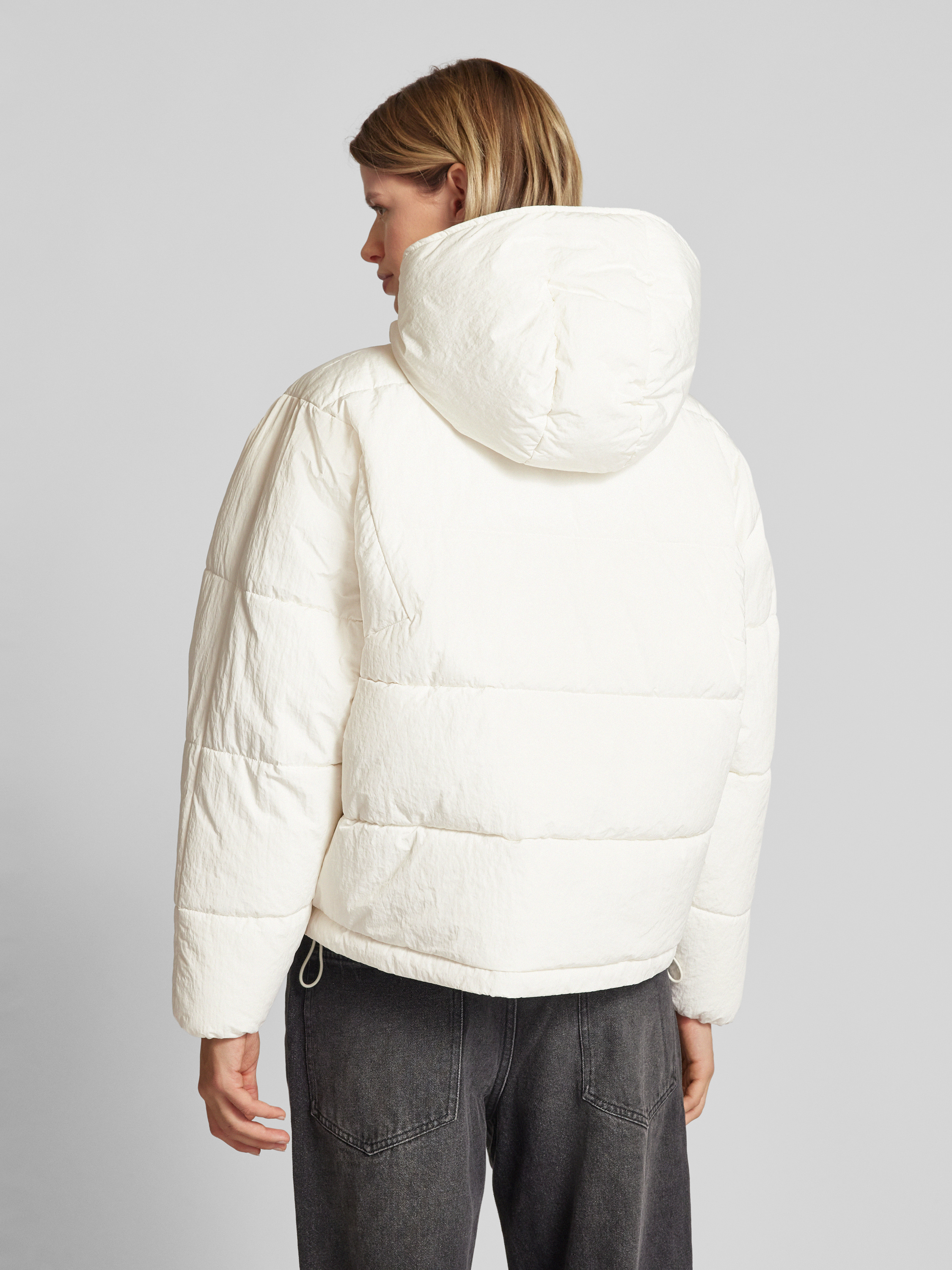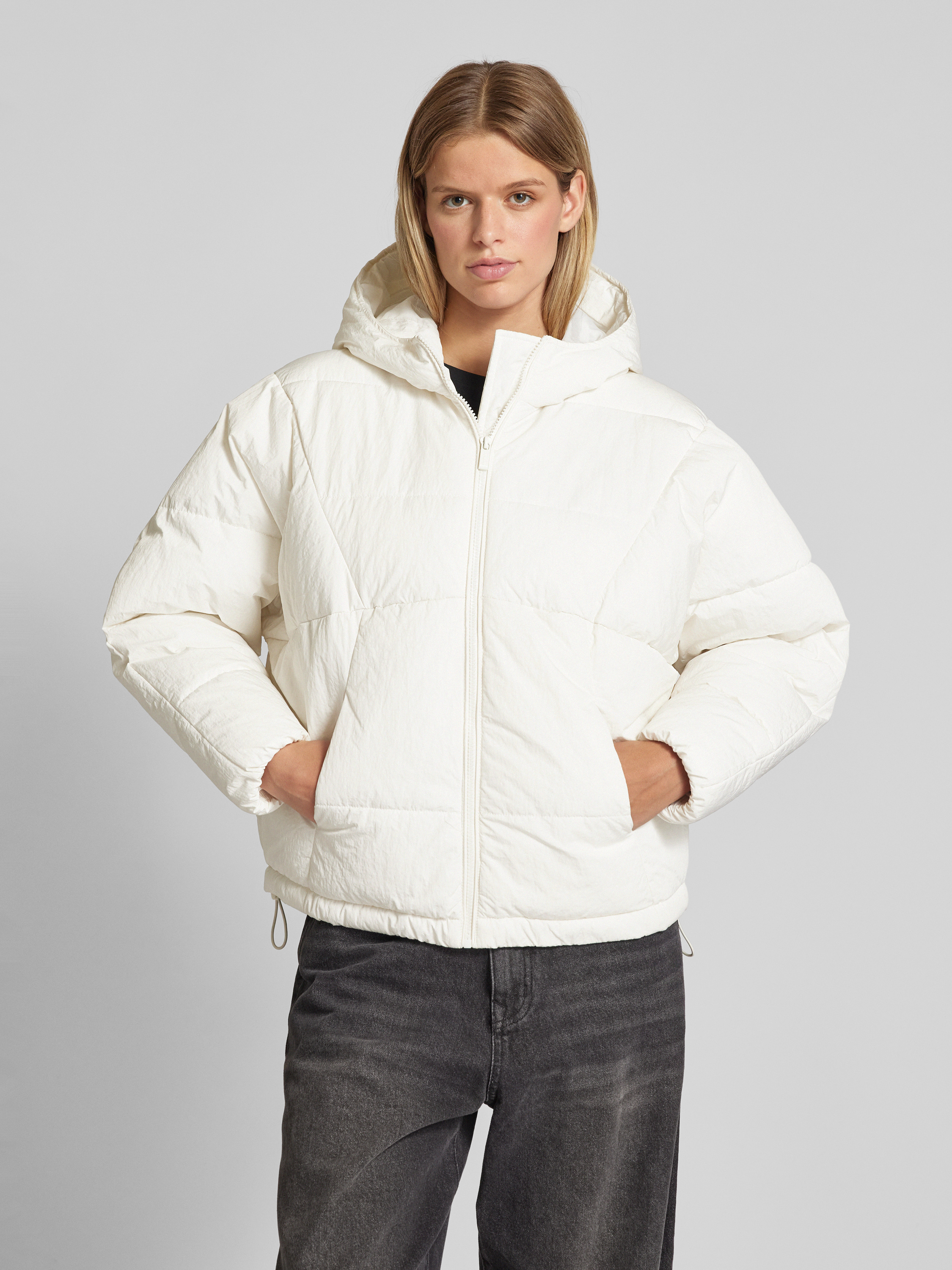 Kurtka pikowana z kapturem - złamany biały