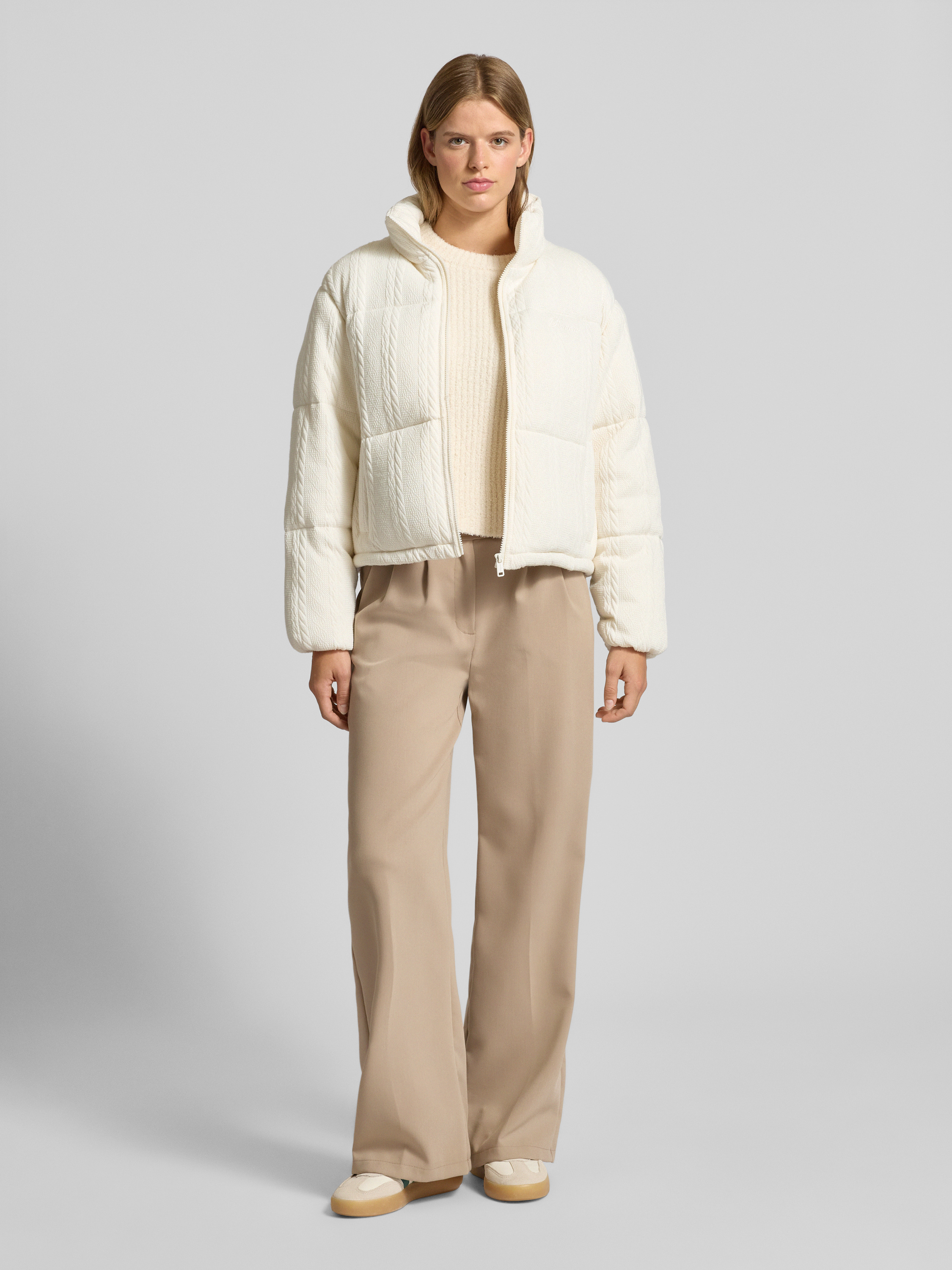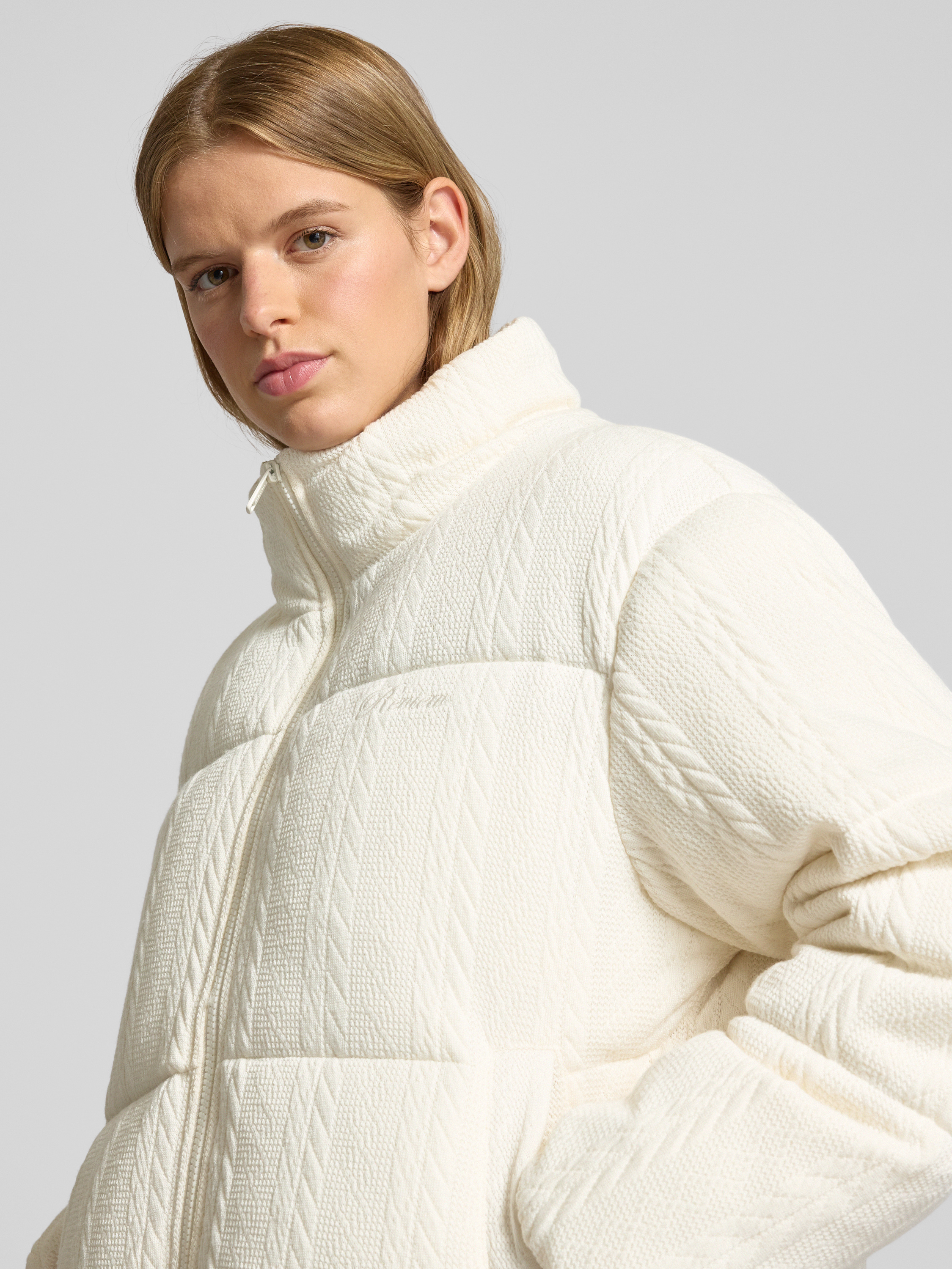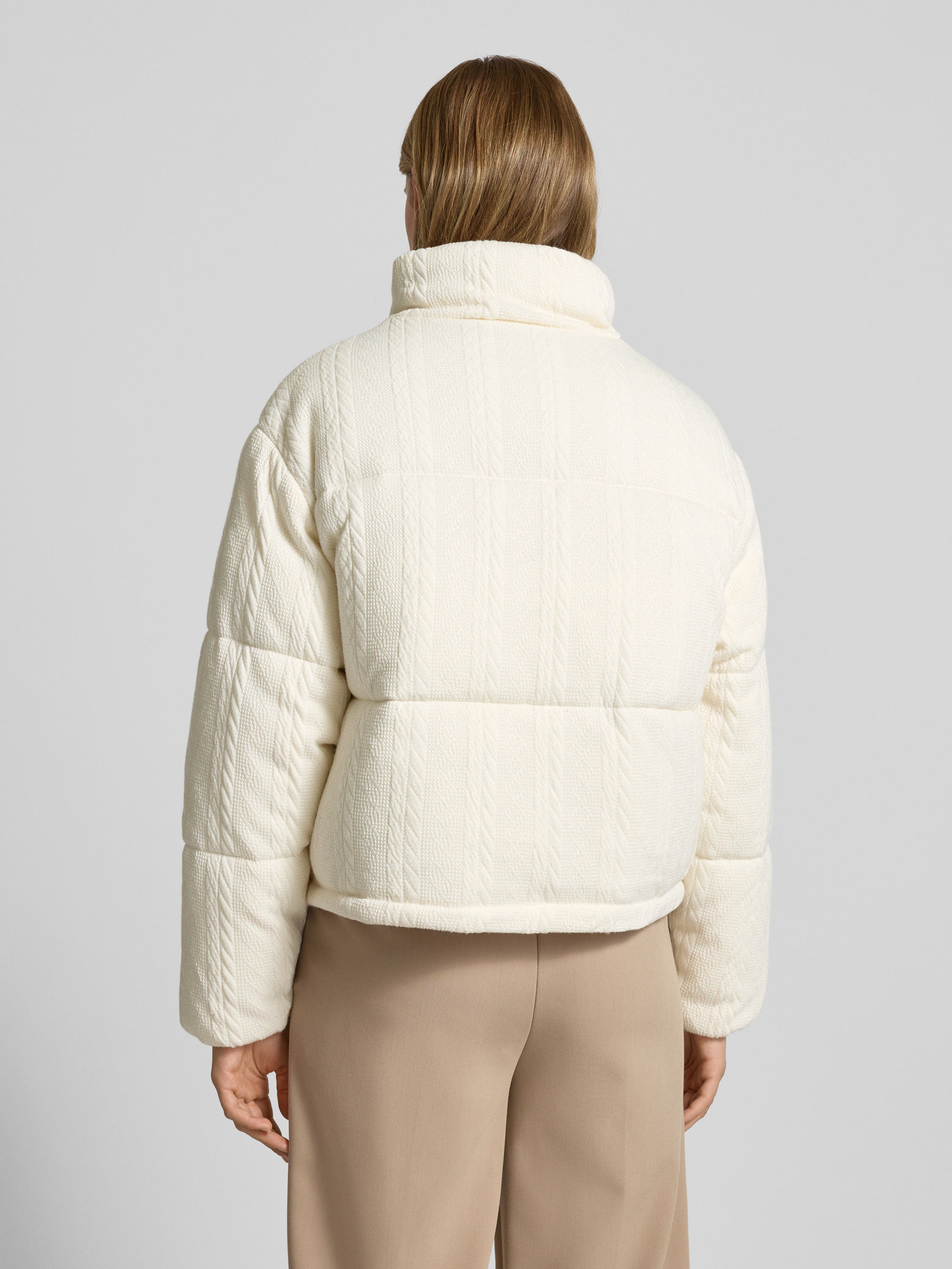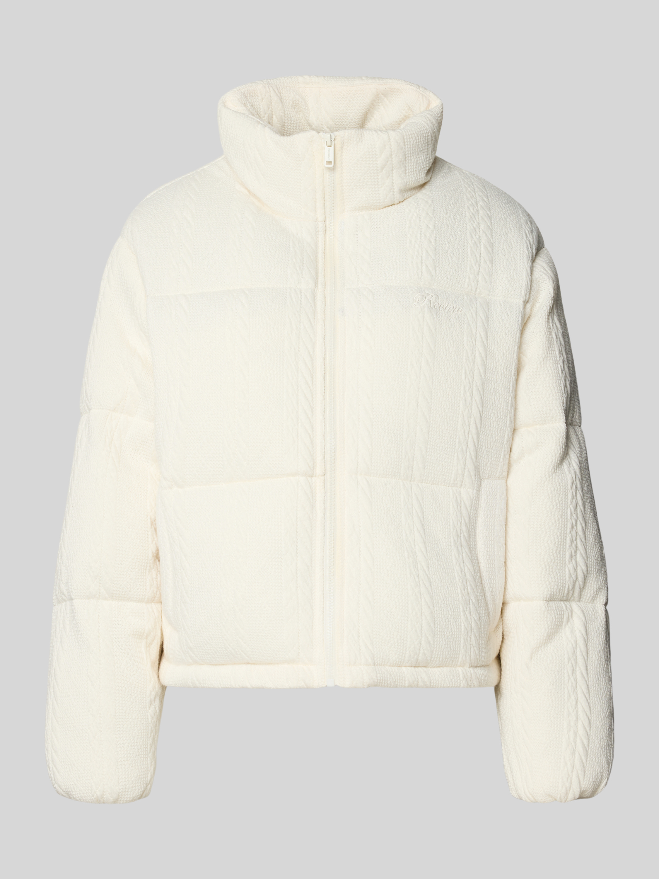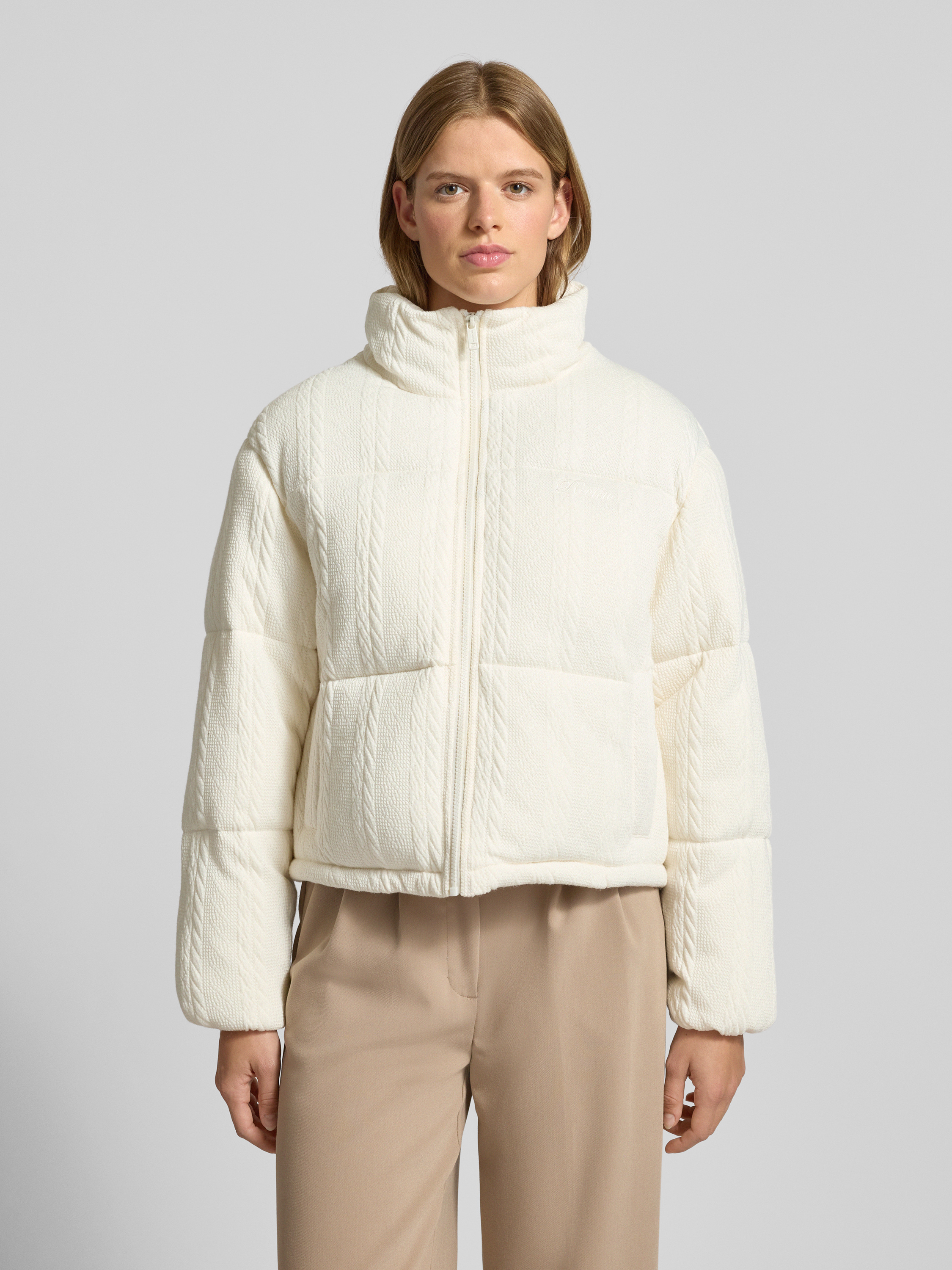 Kurtka pikowana ze stójką i wyhaftowanym logo - złamany biały