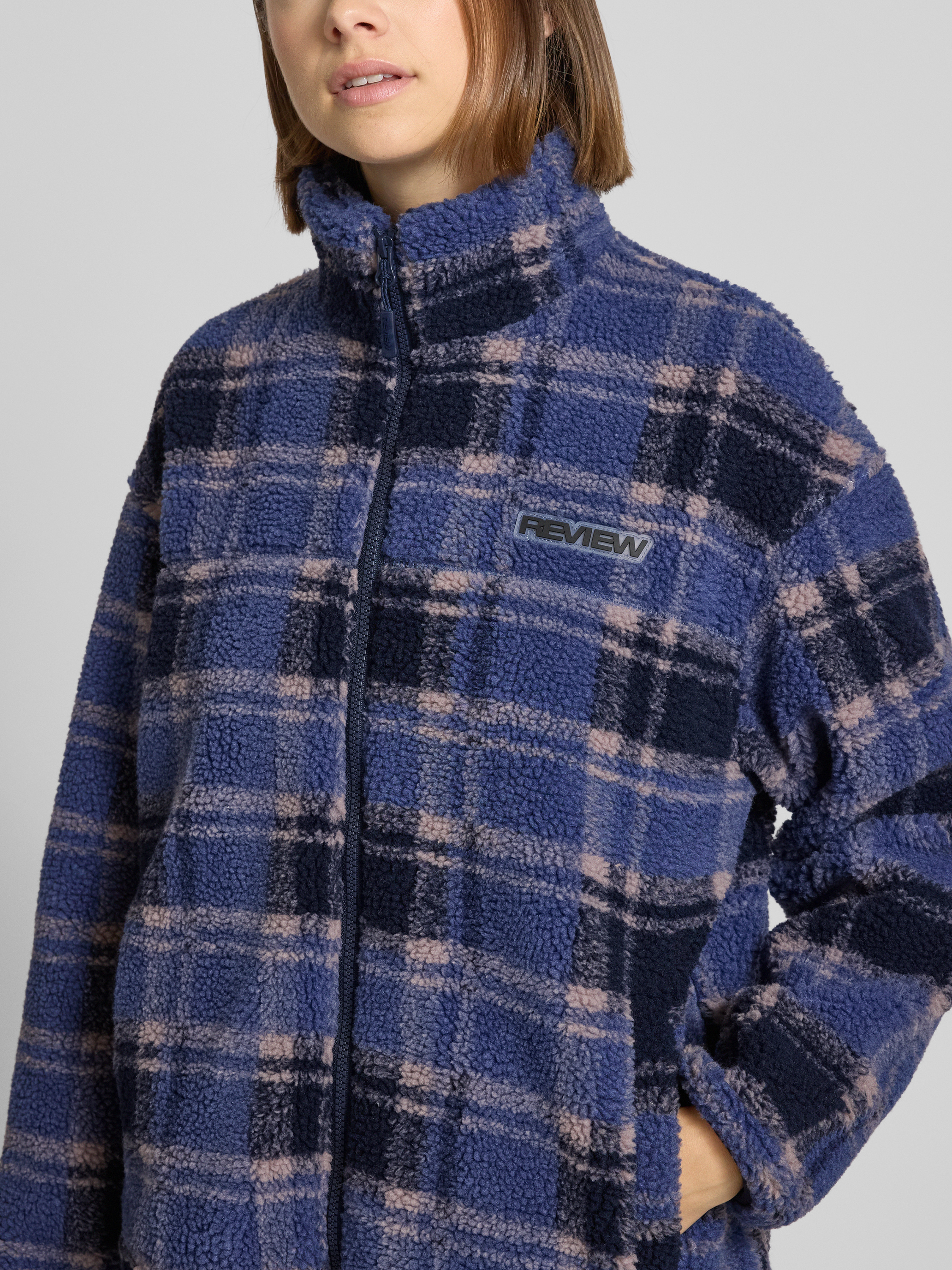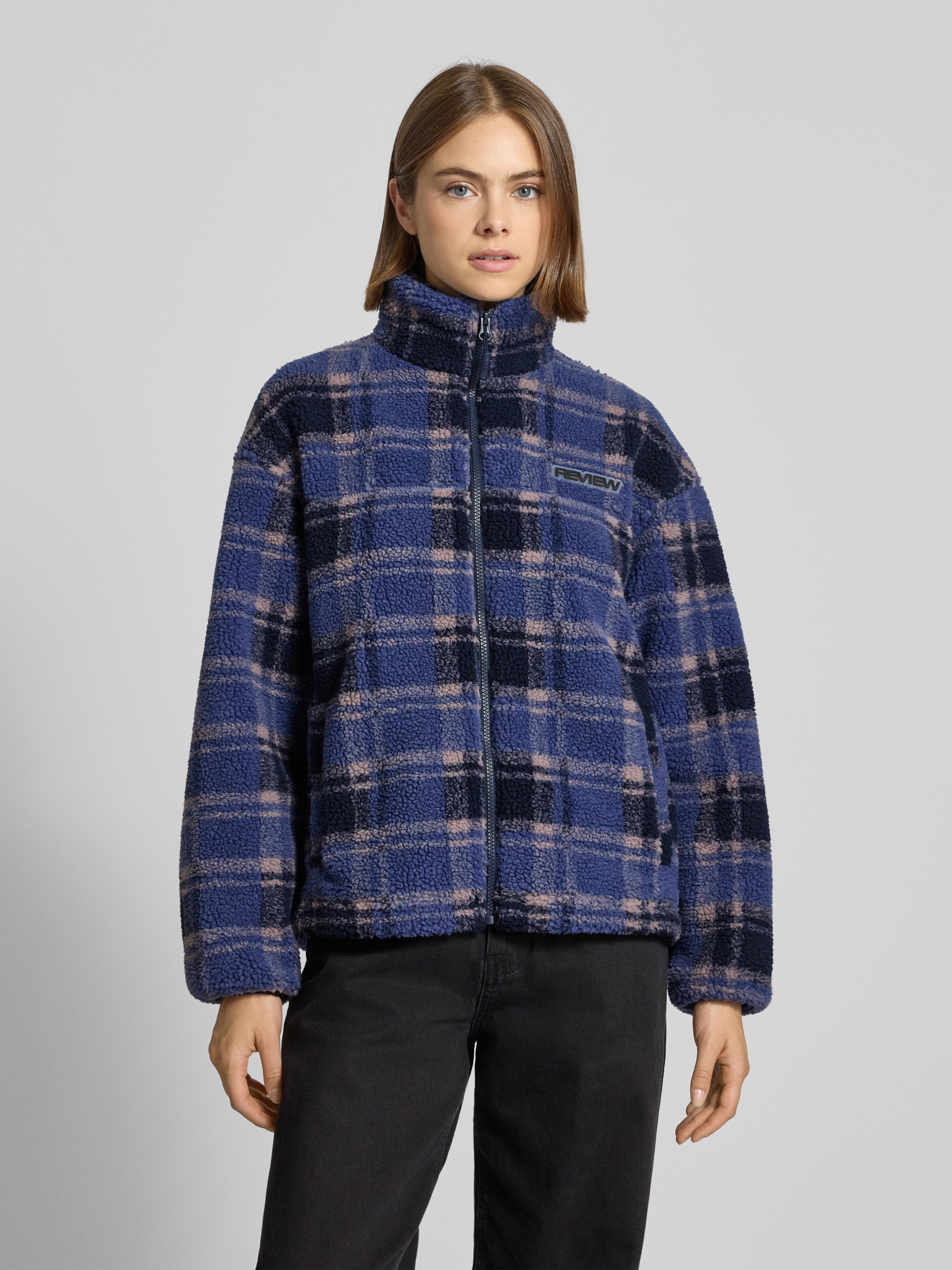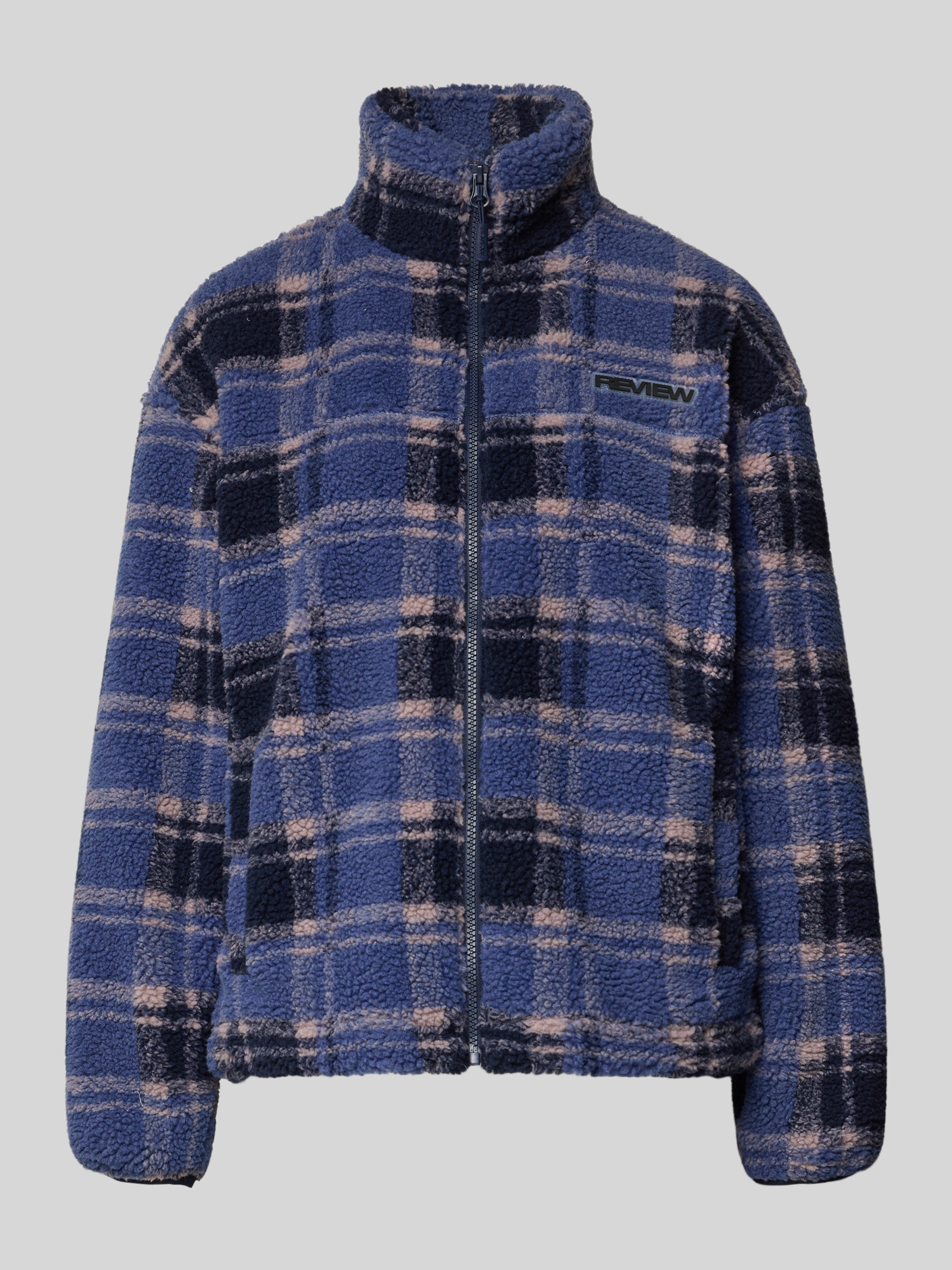 Kurtka polarowa ze stójką i detalem z logo - granatowy