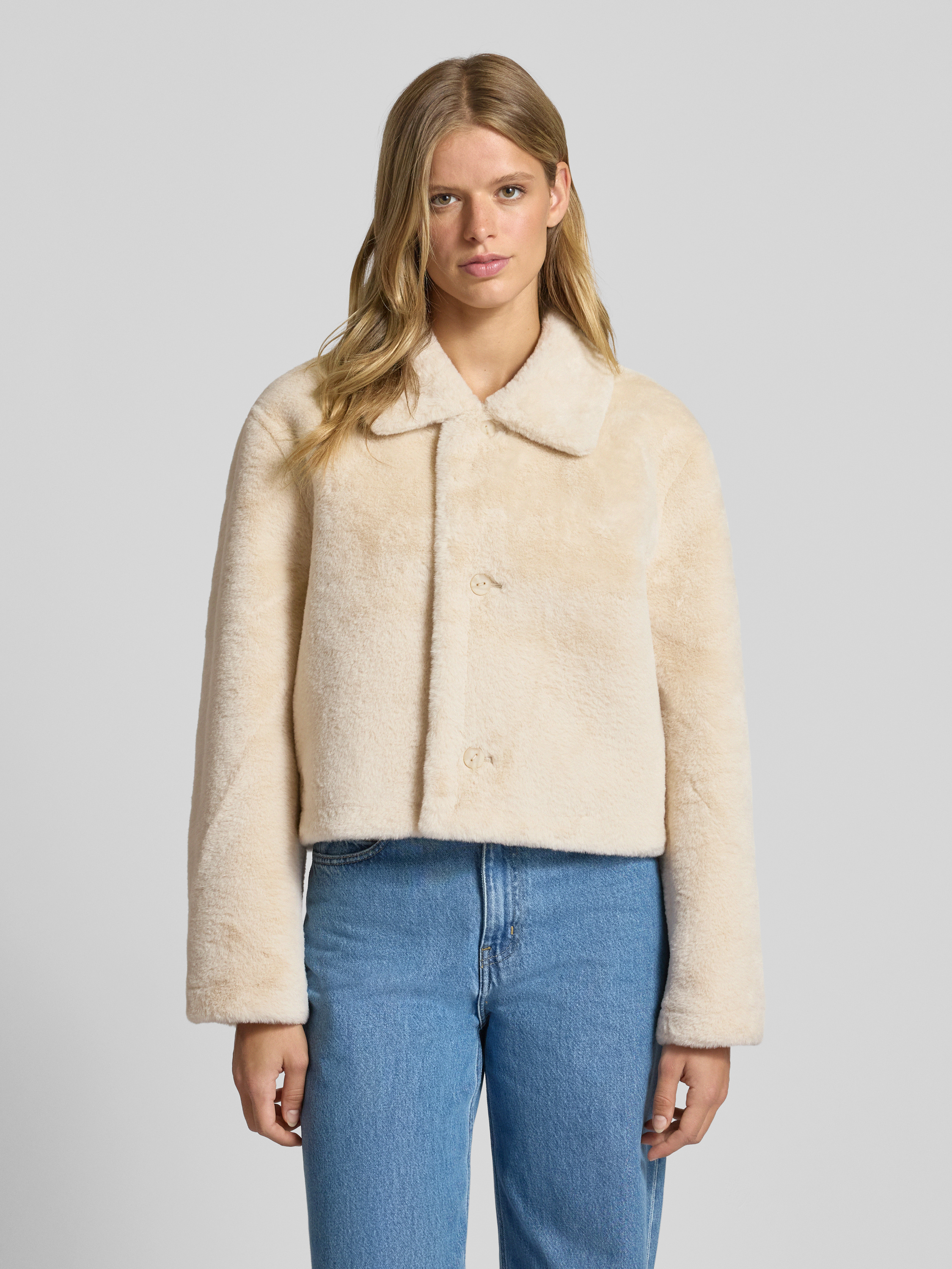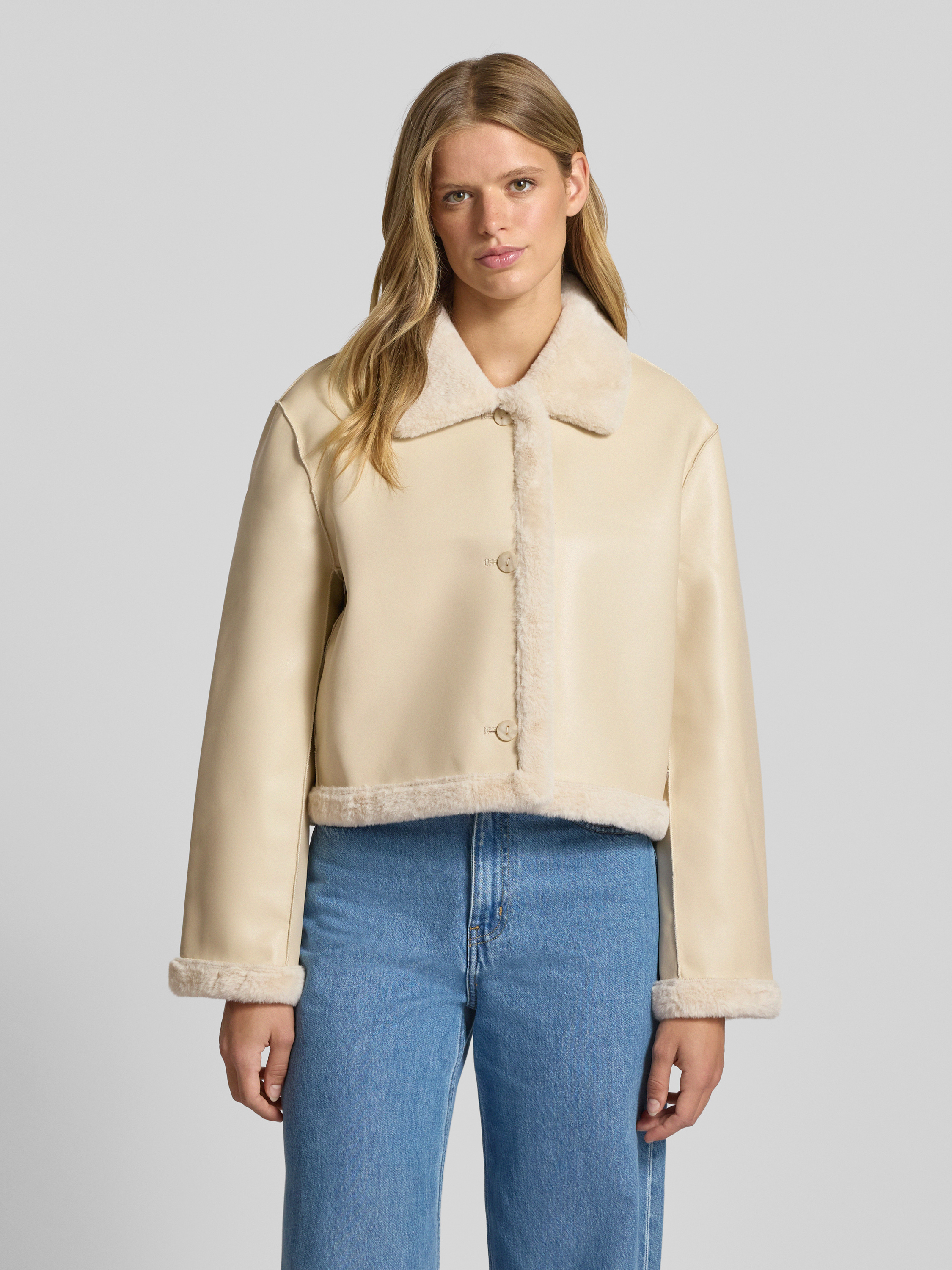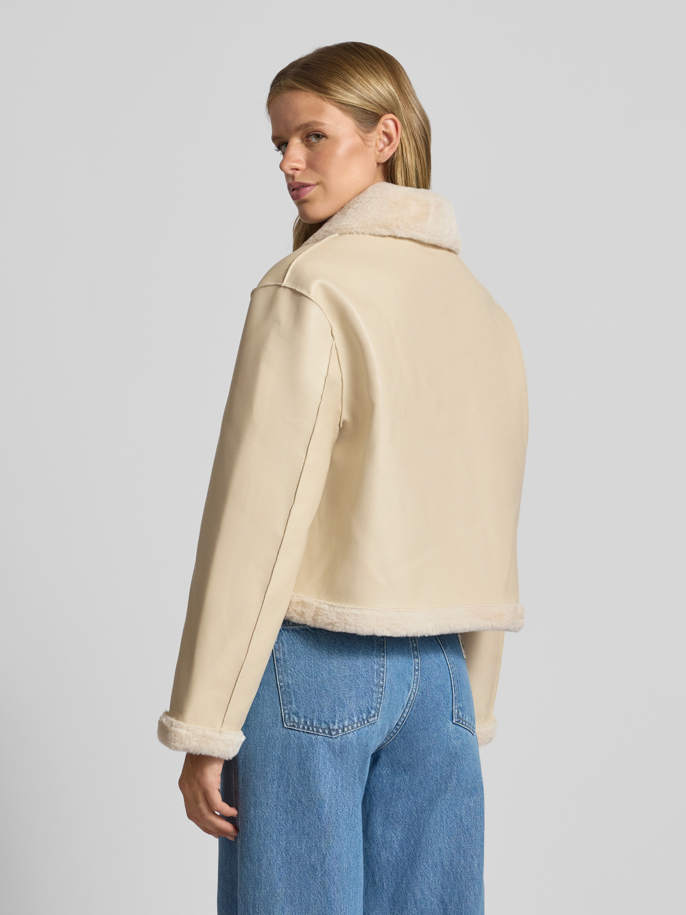 Kurtka z obszyciem ze sztucznego futra - złamany biały