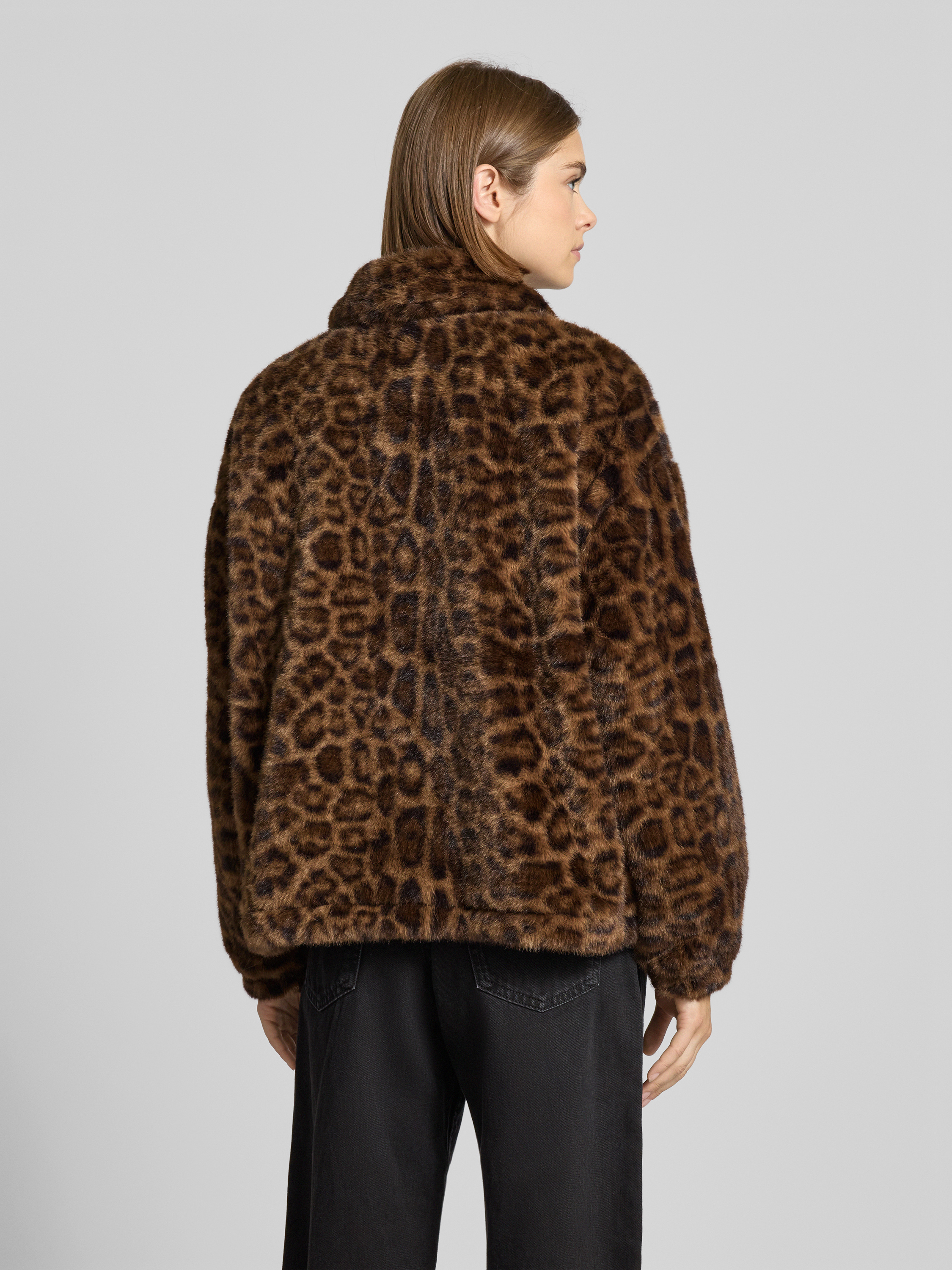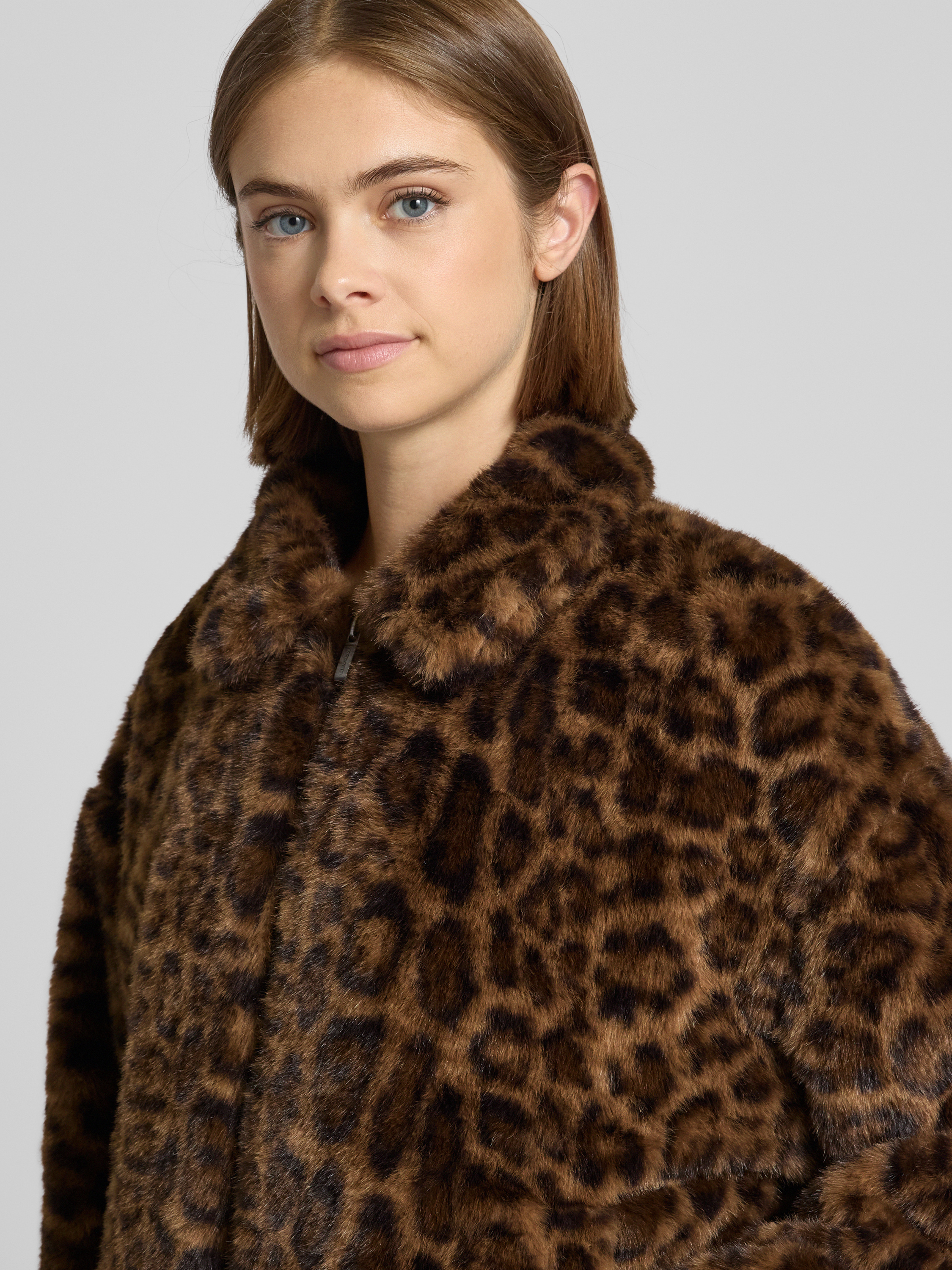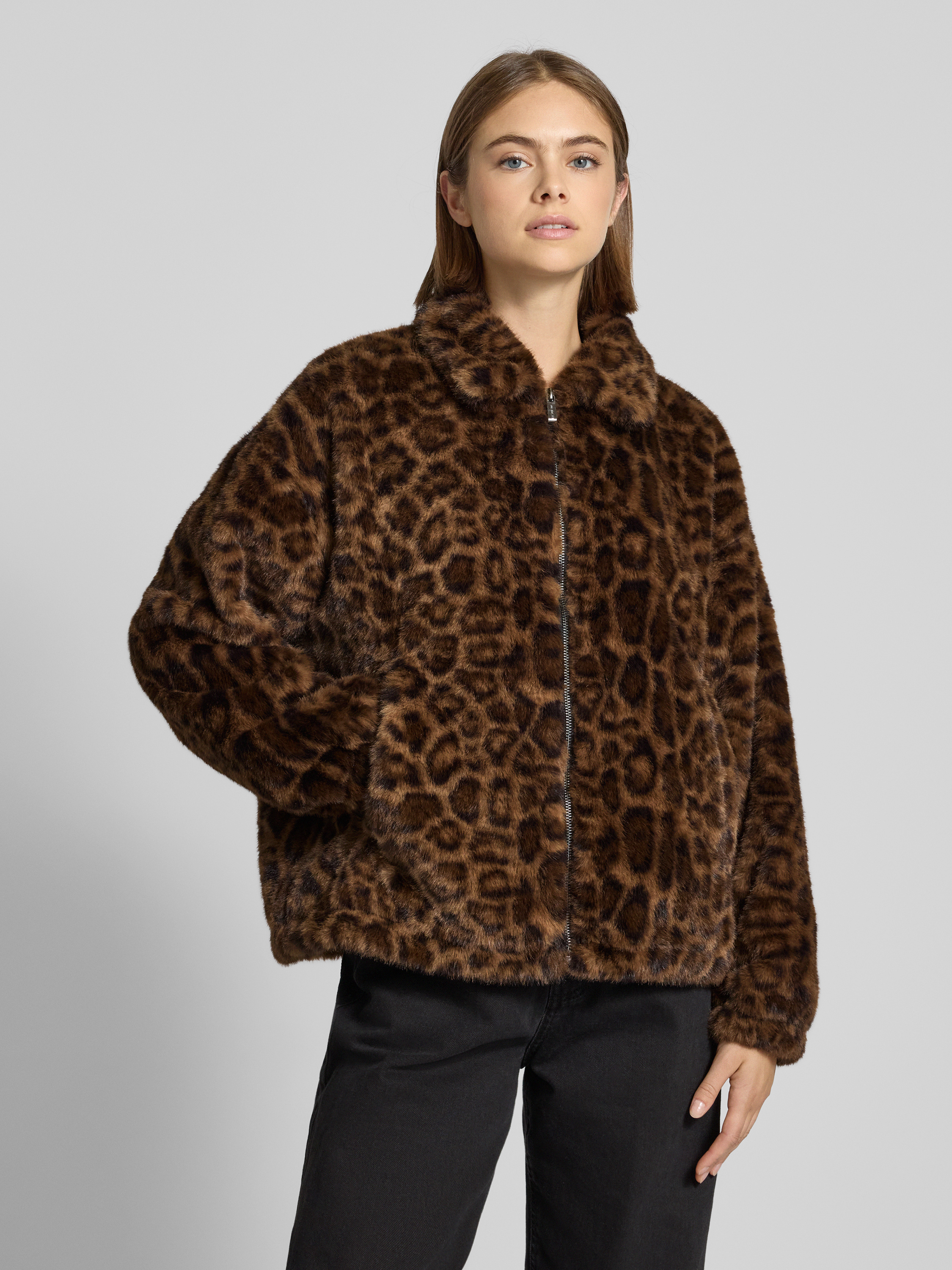Kurtka ze sztucznego futra z wykładanym kołnierzem i zamkiem błyskawicznym - ciemnobrązowy