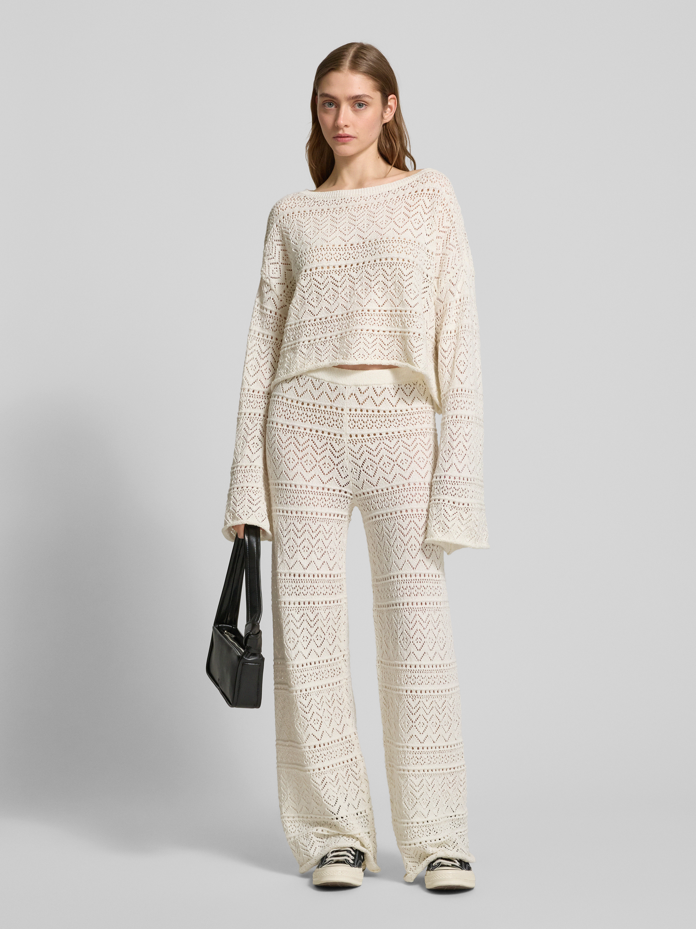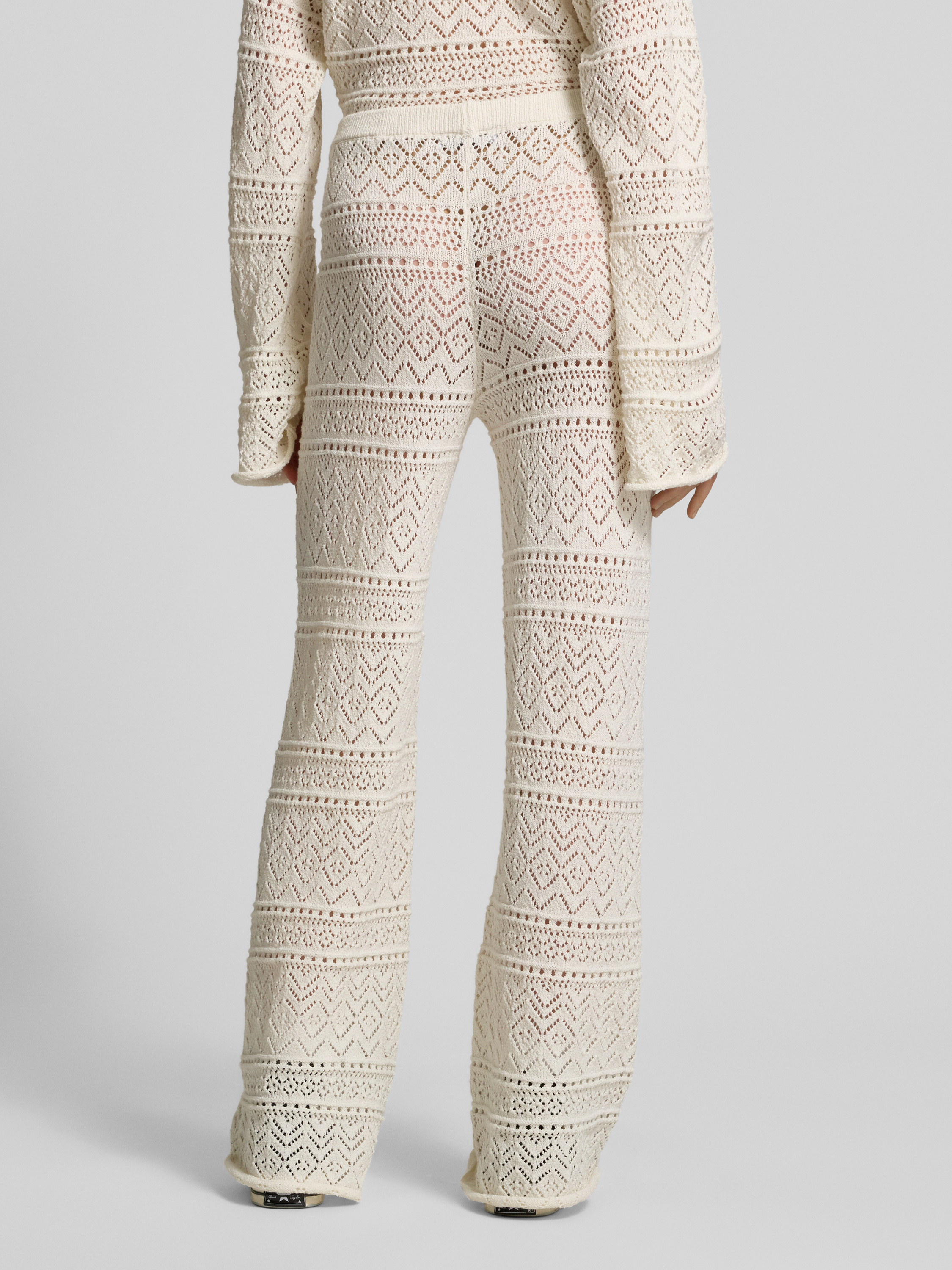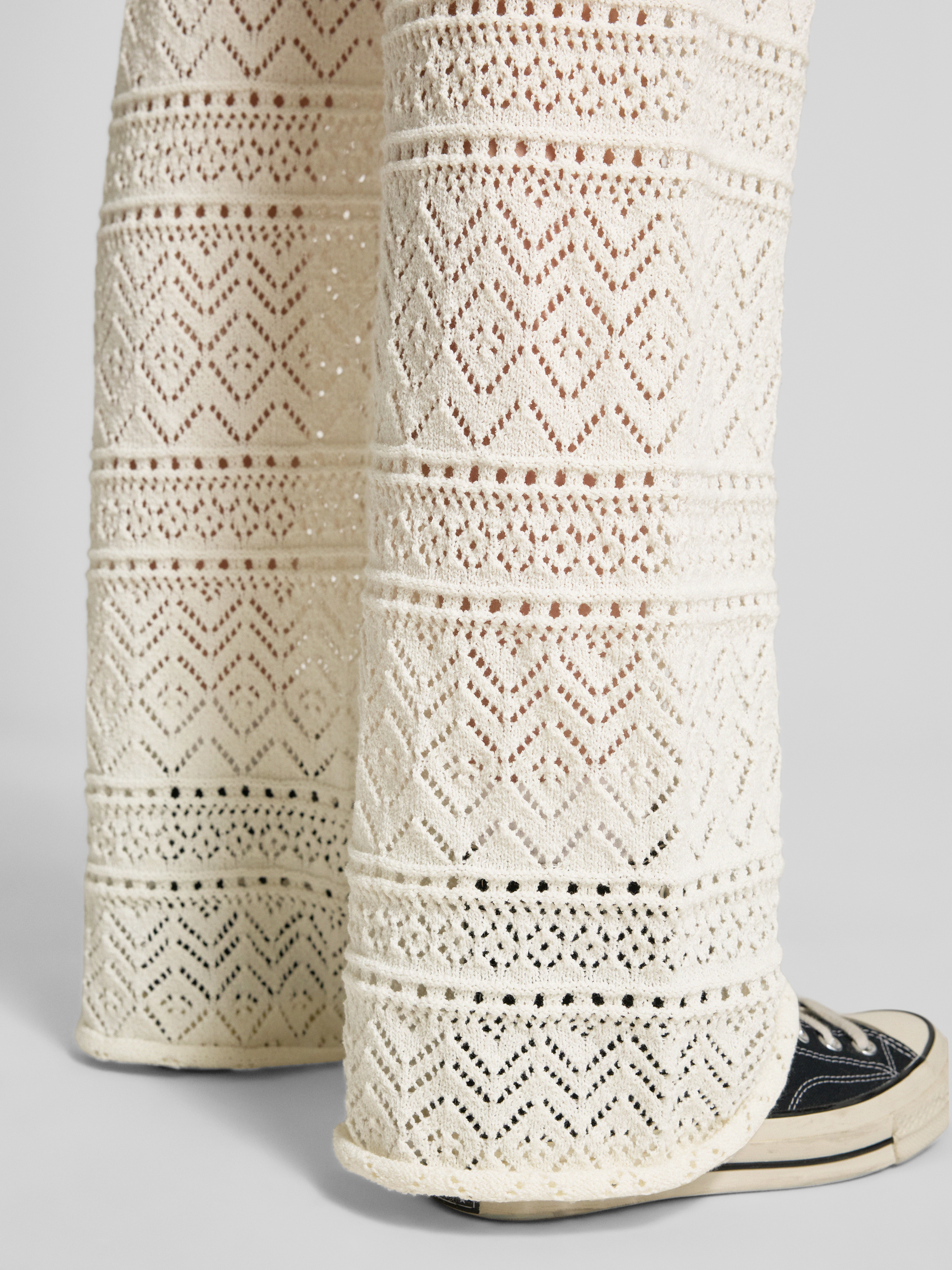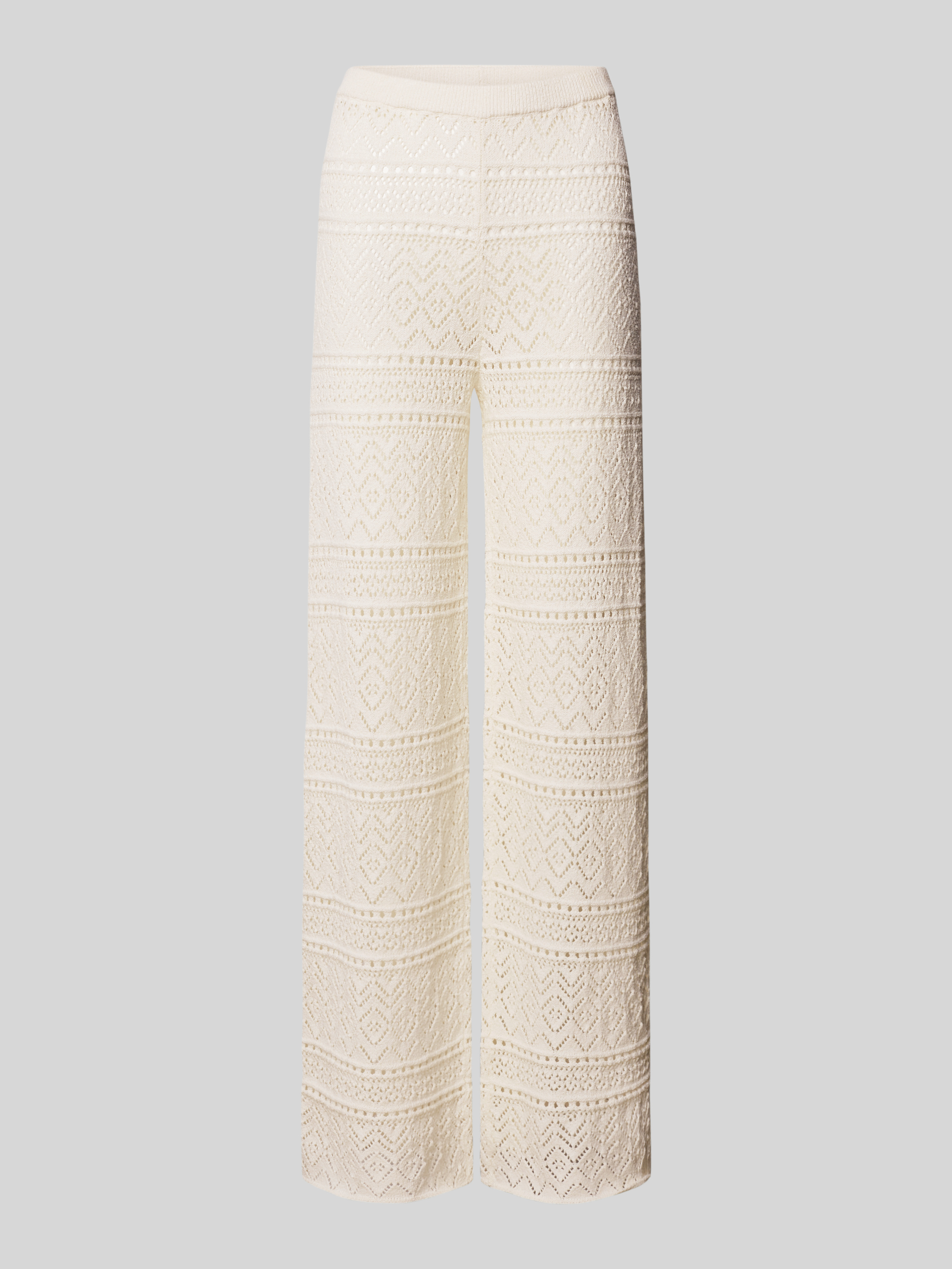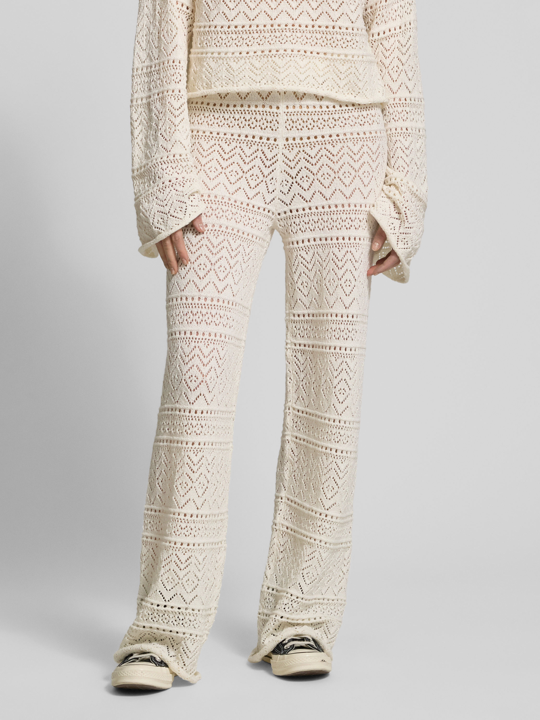 Spodnie materiałowe z kwiatowymi haftami - złamany biały