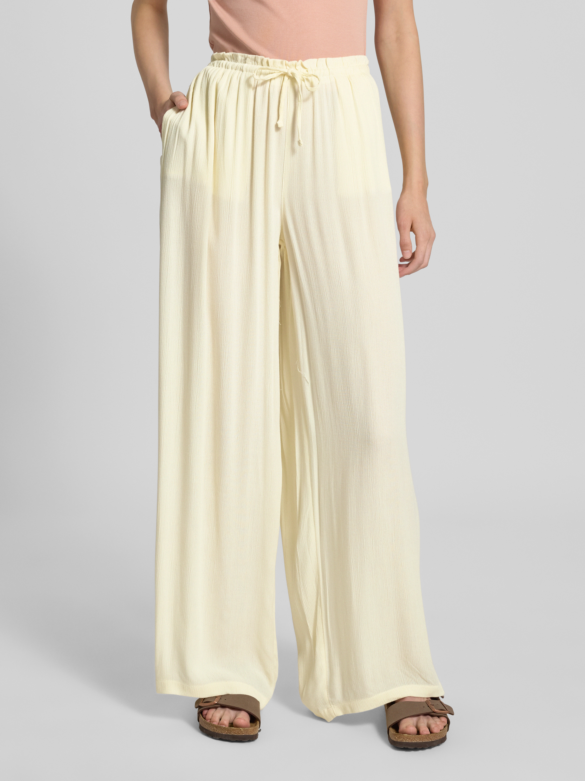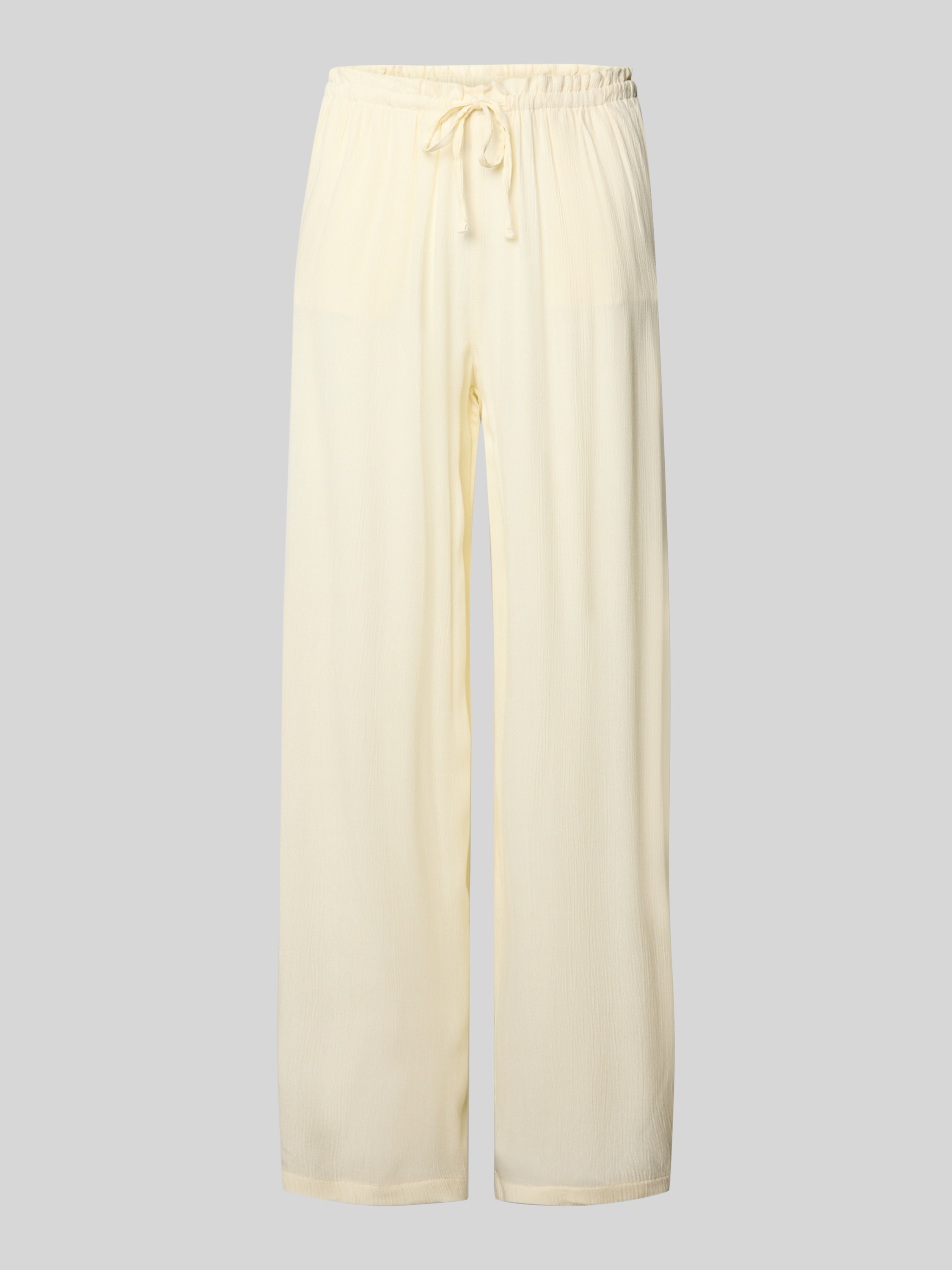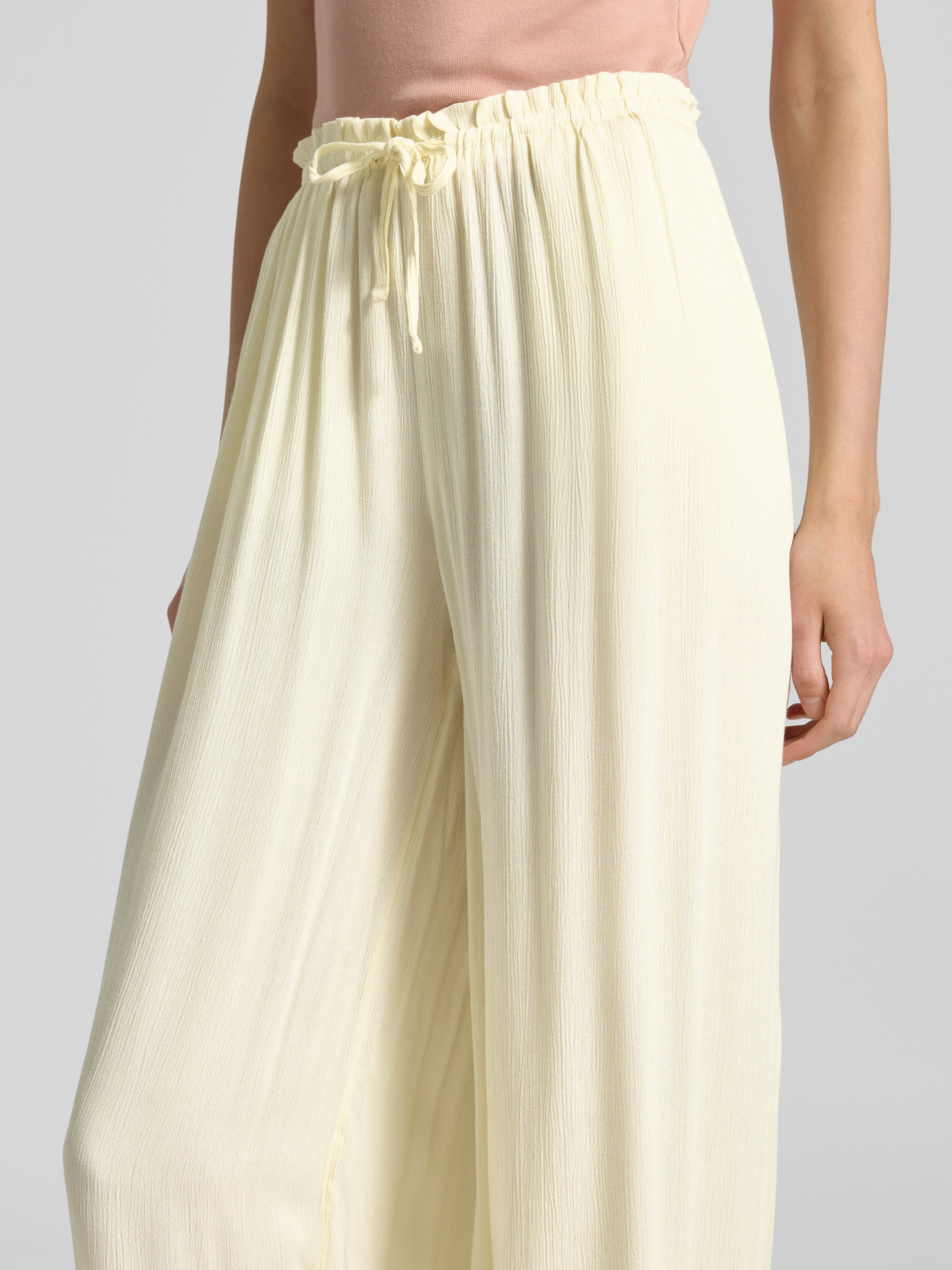 Spodnie materiałowe z szeroką nogawką i tunelem - złamany biały