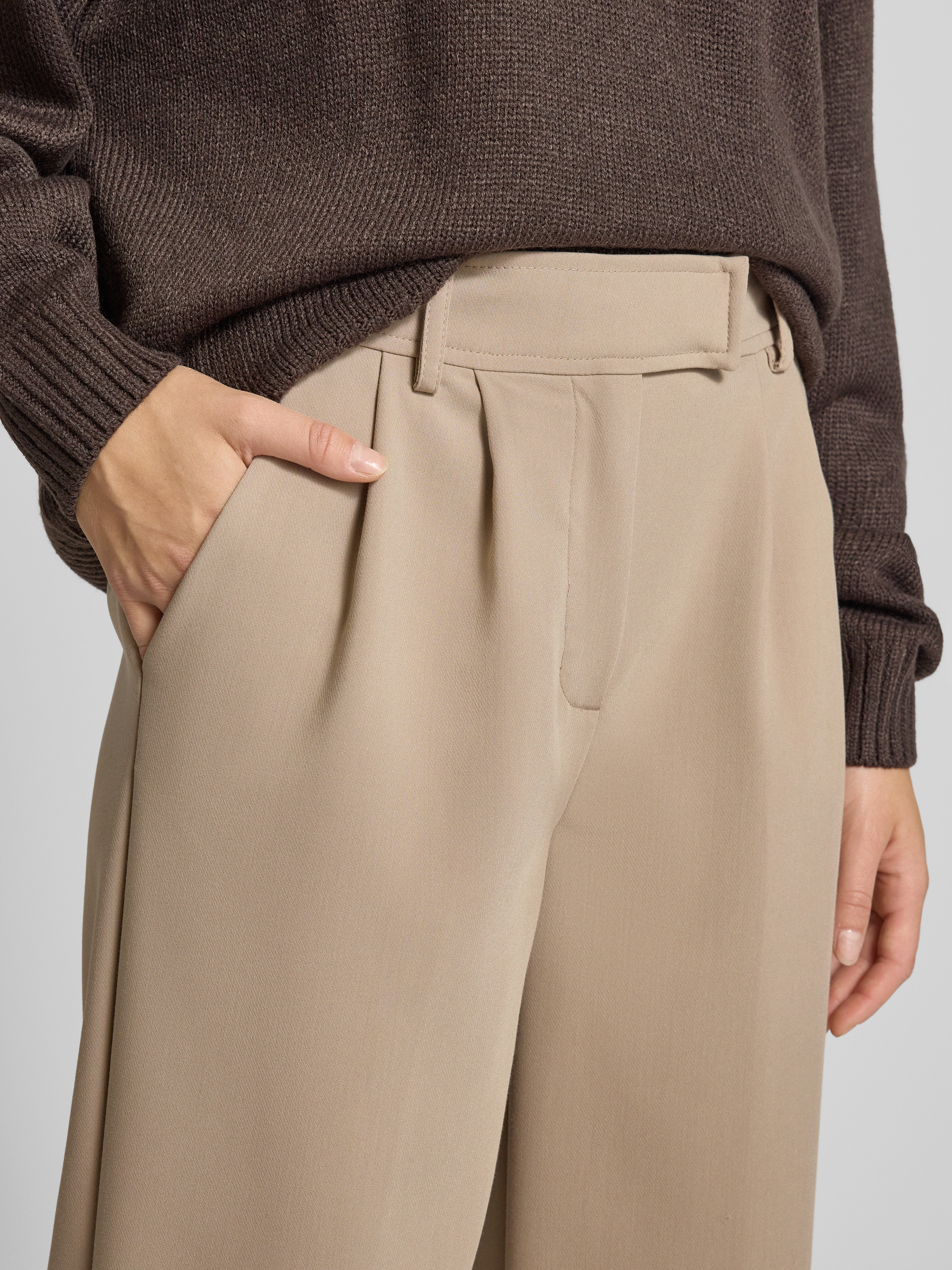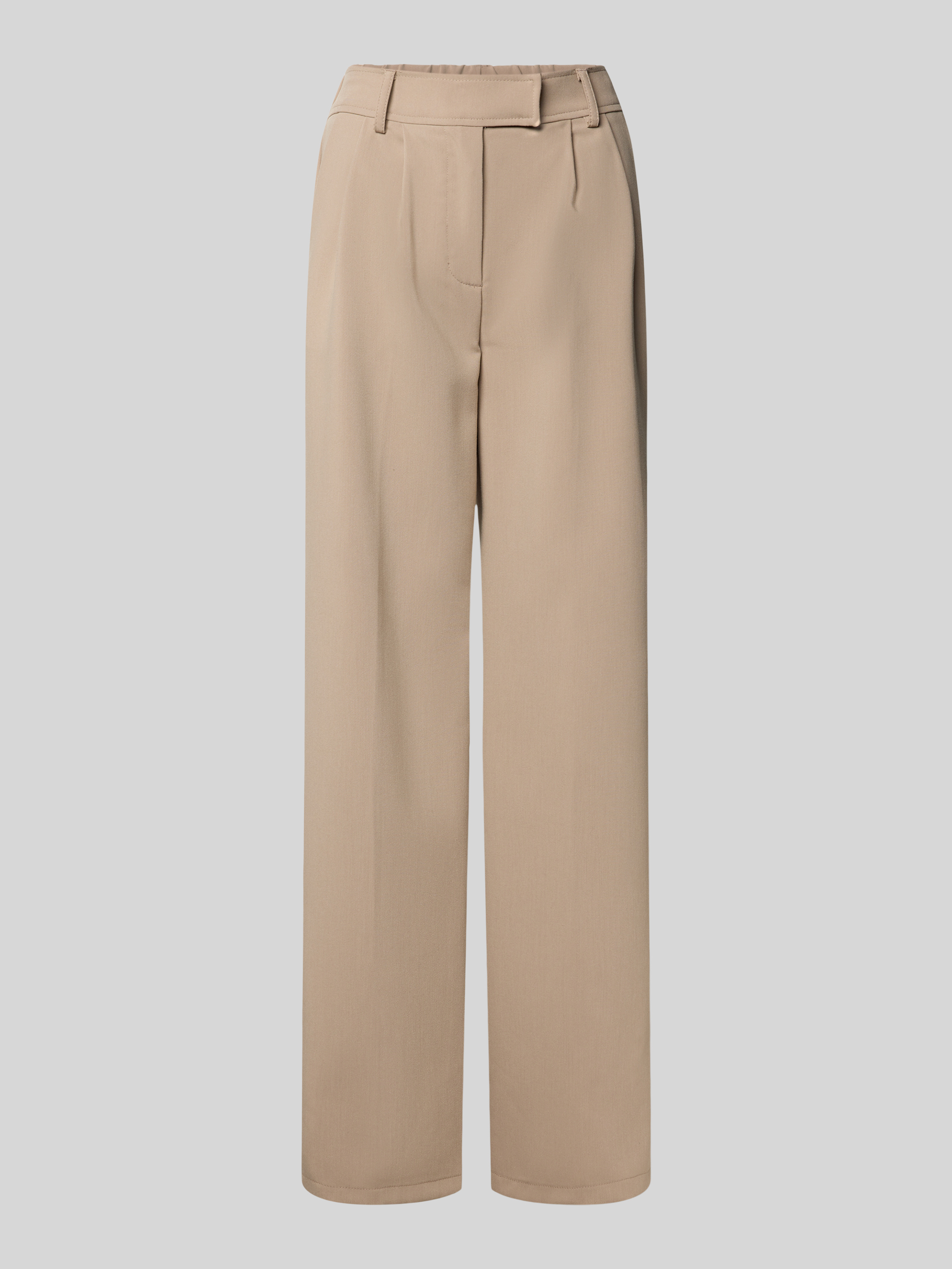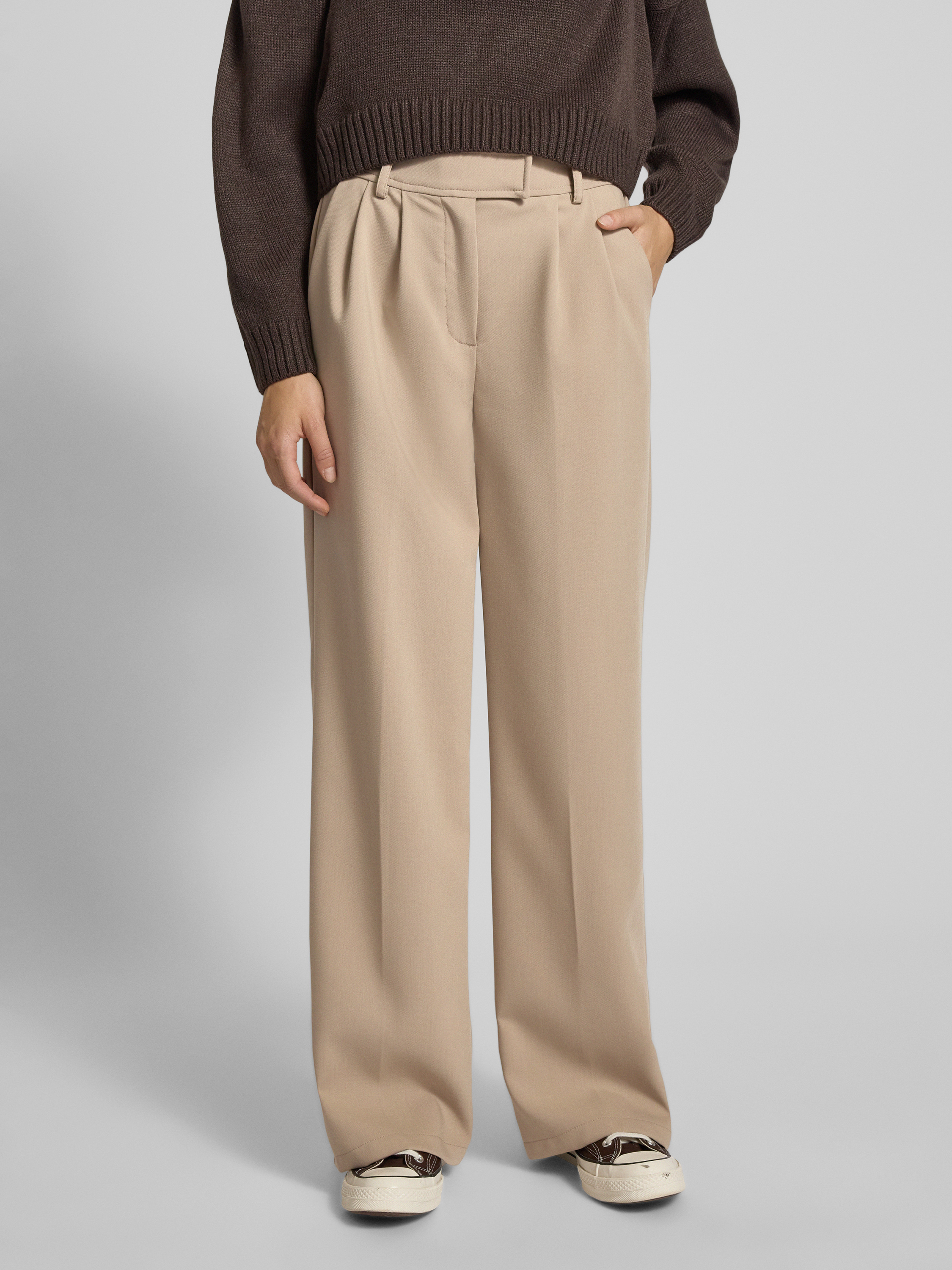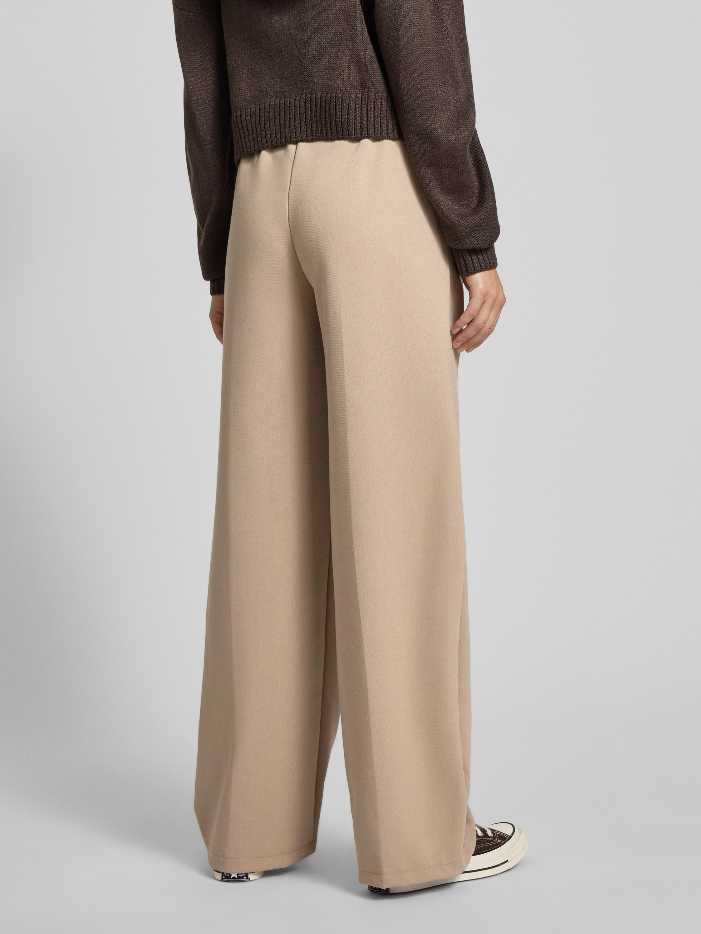 Spodnie materiałowe z szeroką nogawką i zakładkami w pasie - piaskowy