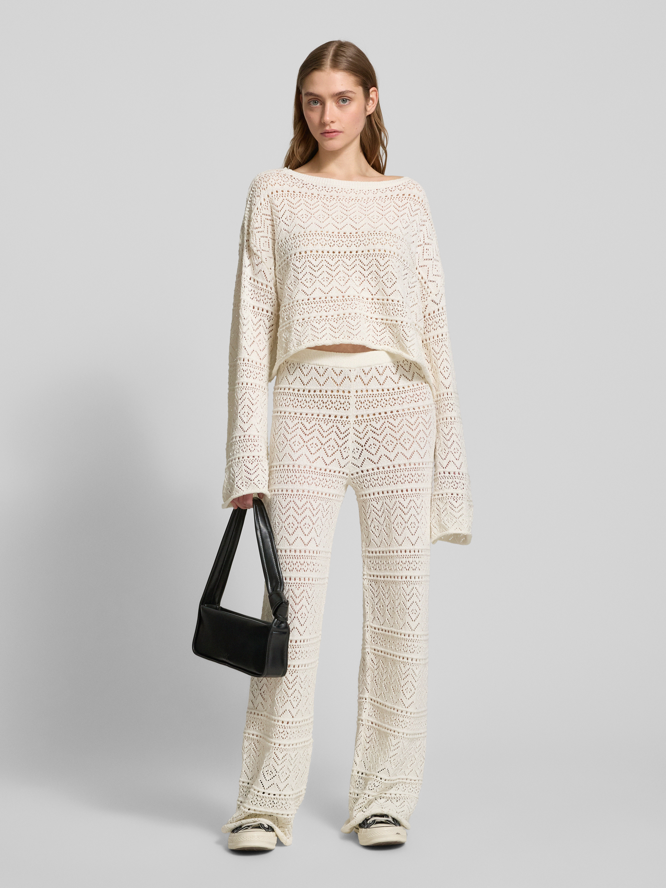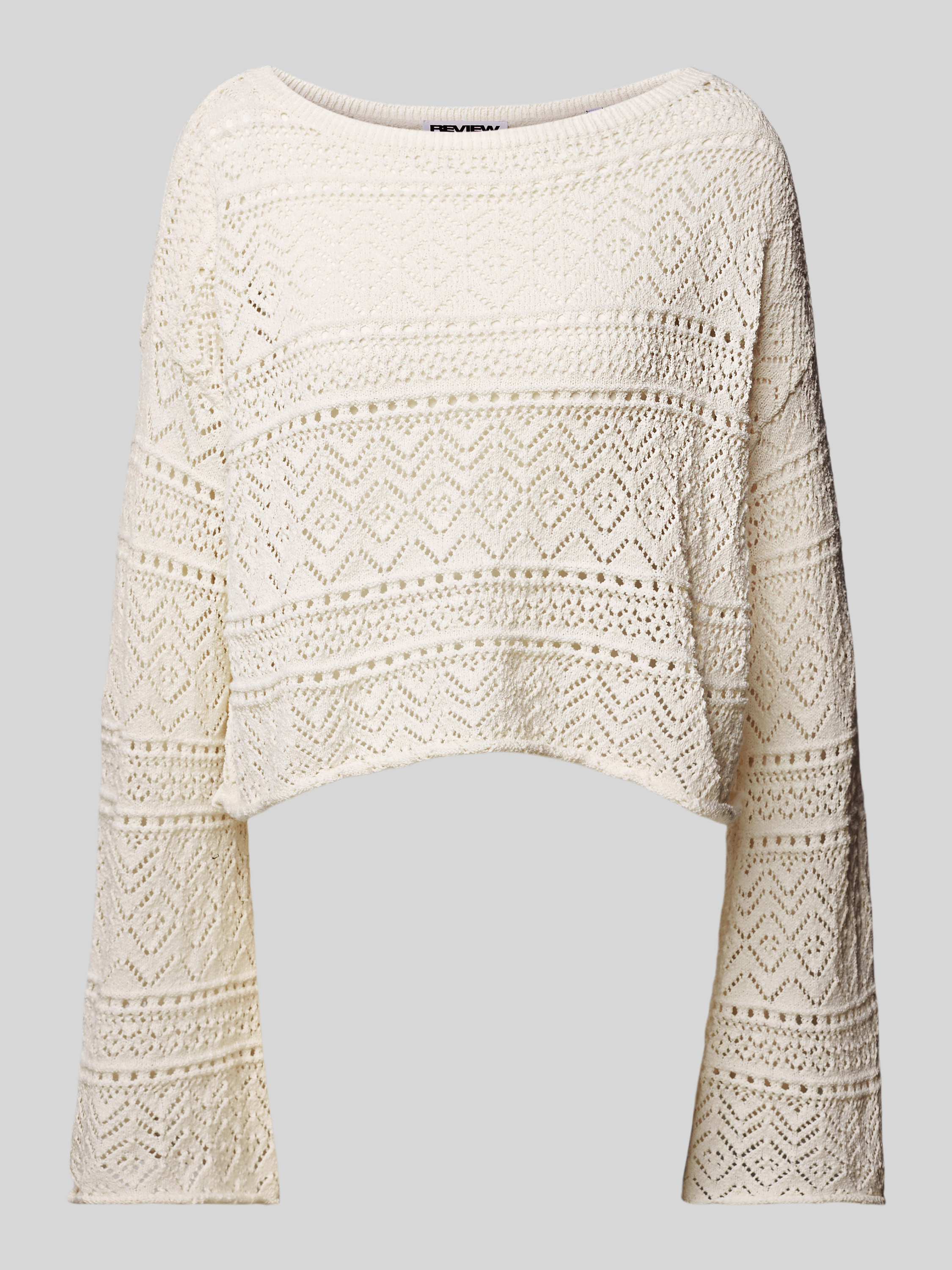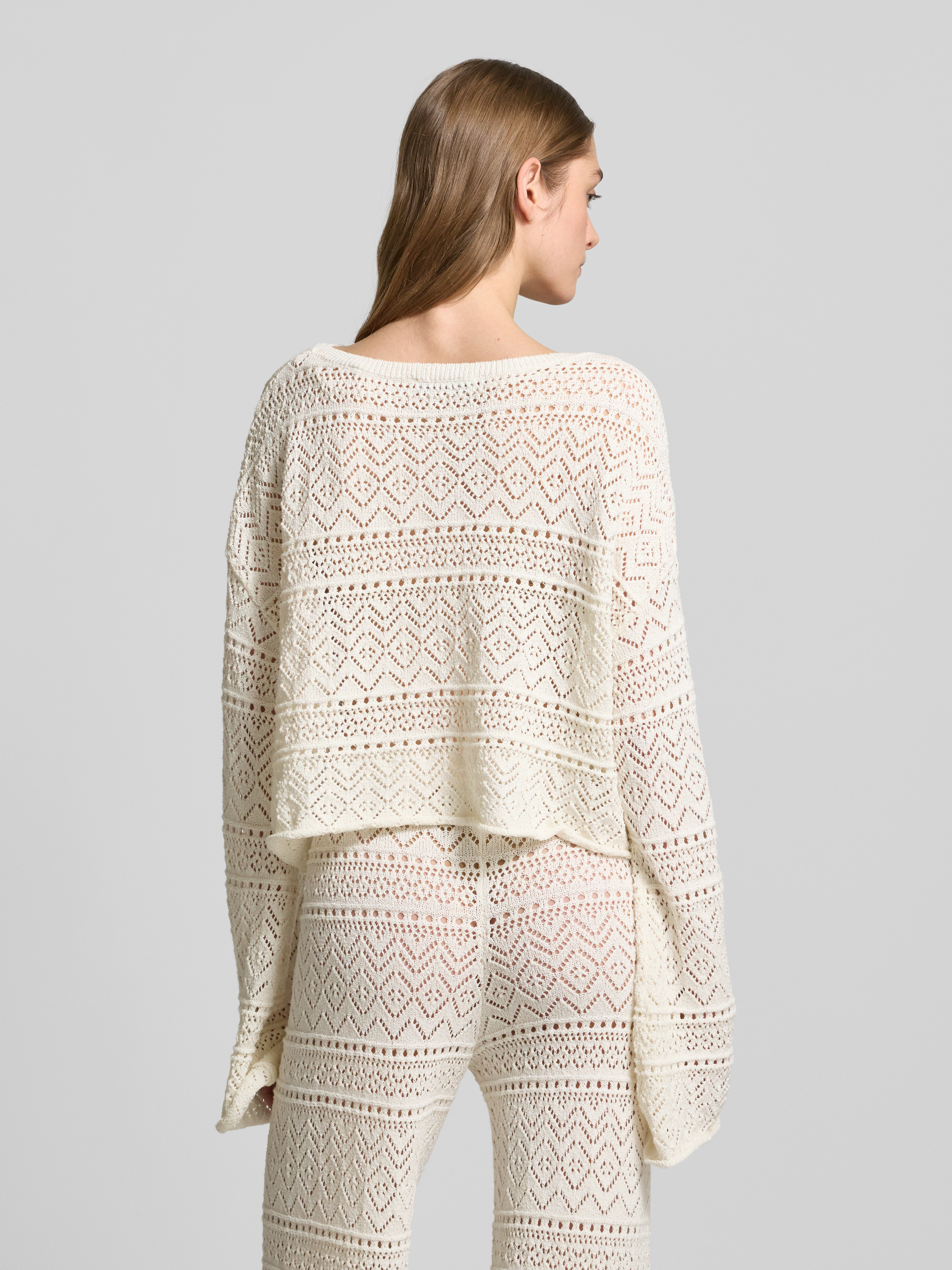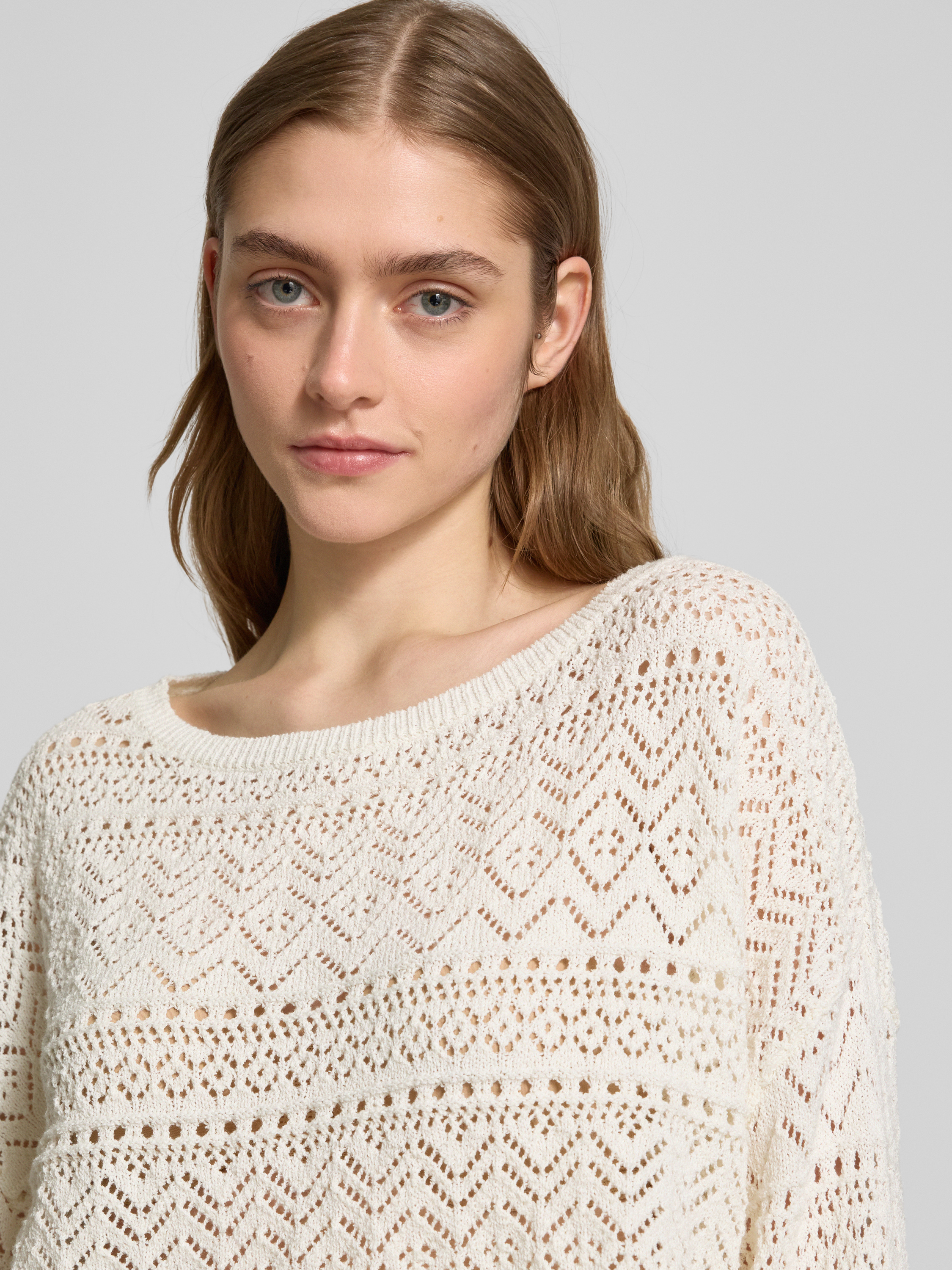 Sweter z dzianiny z ażurowym wzorem - złamany biały