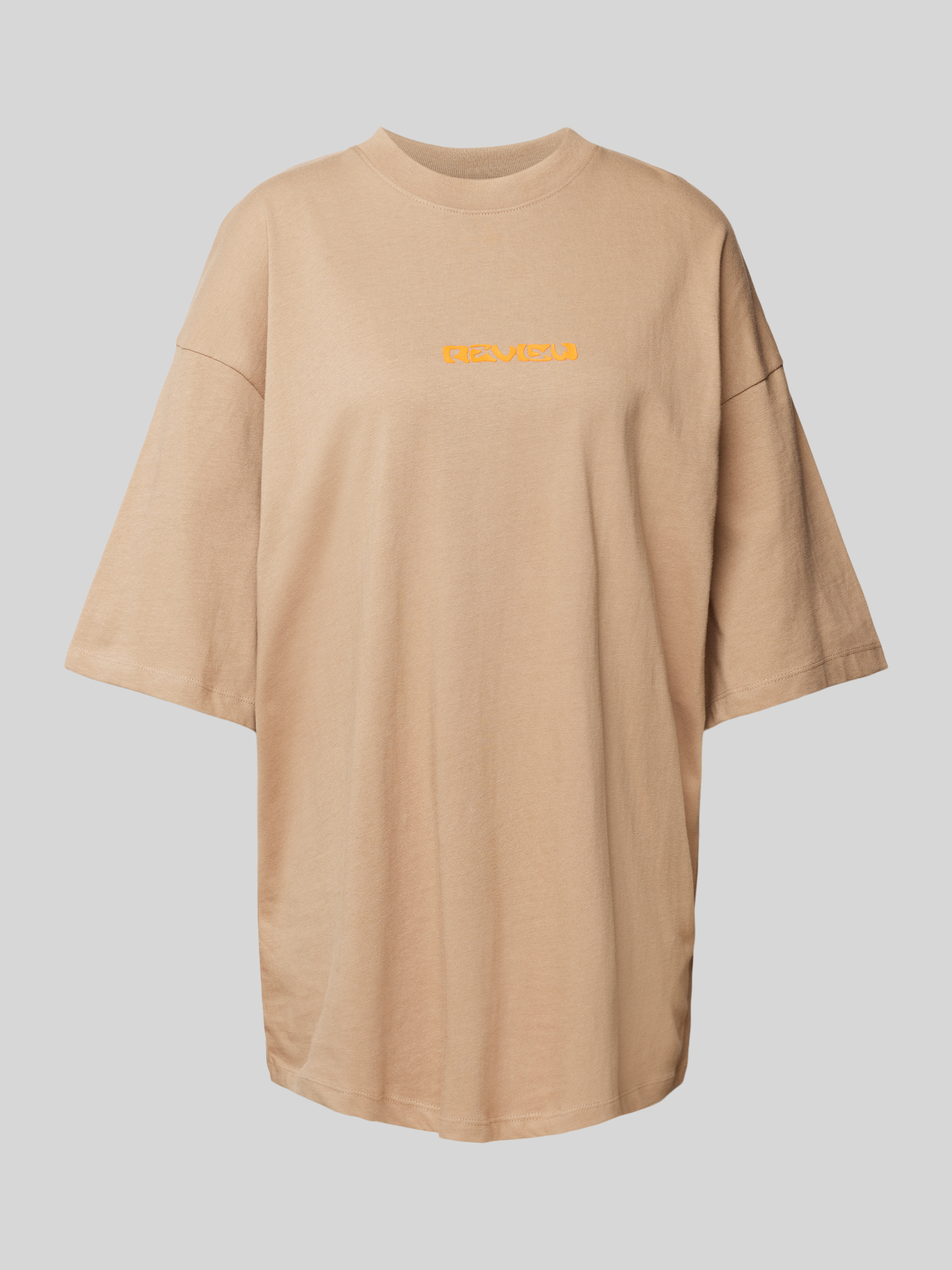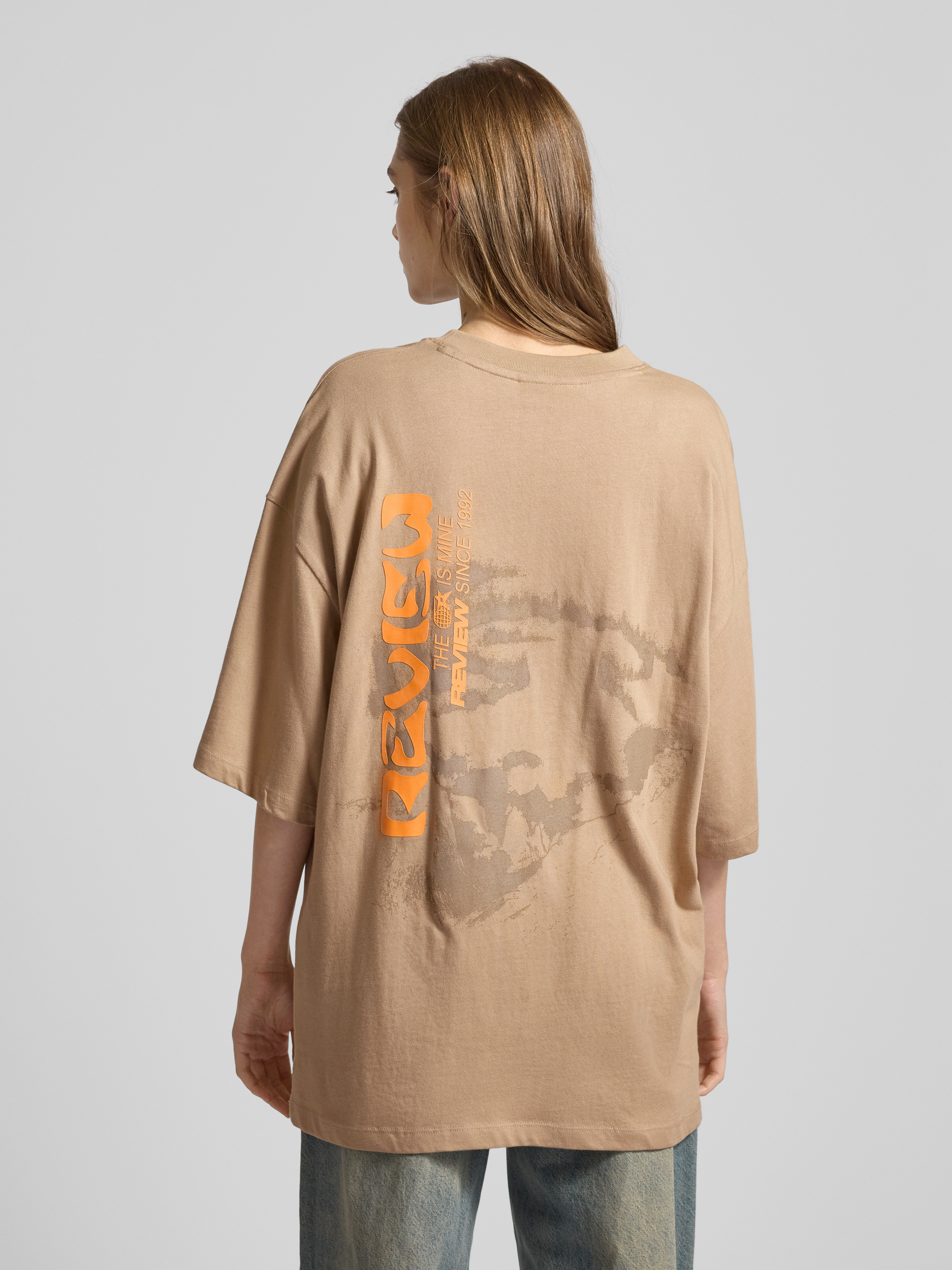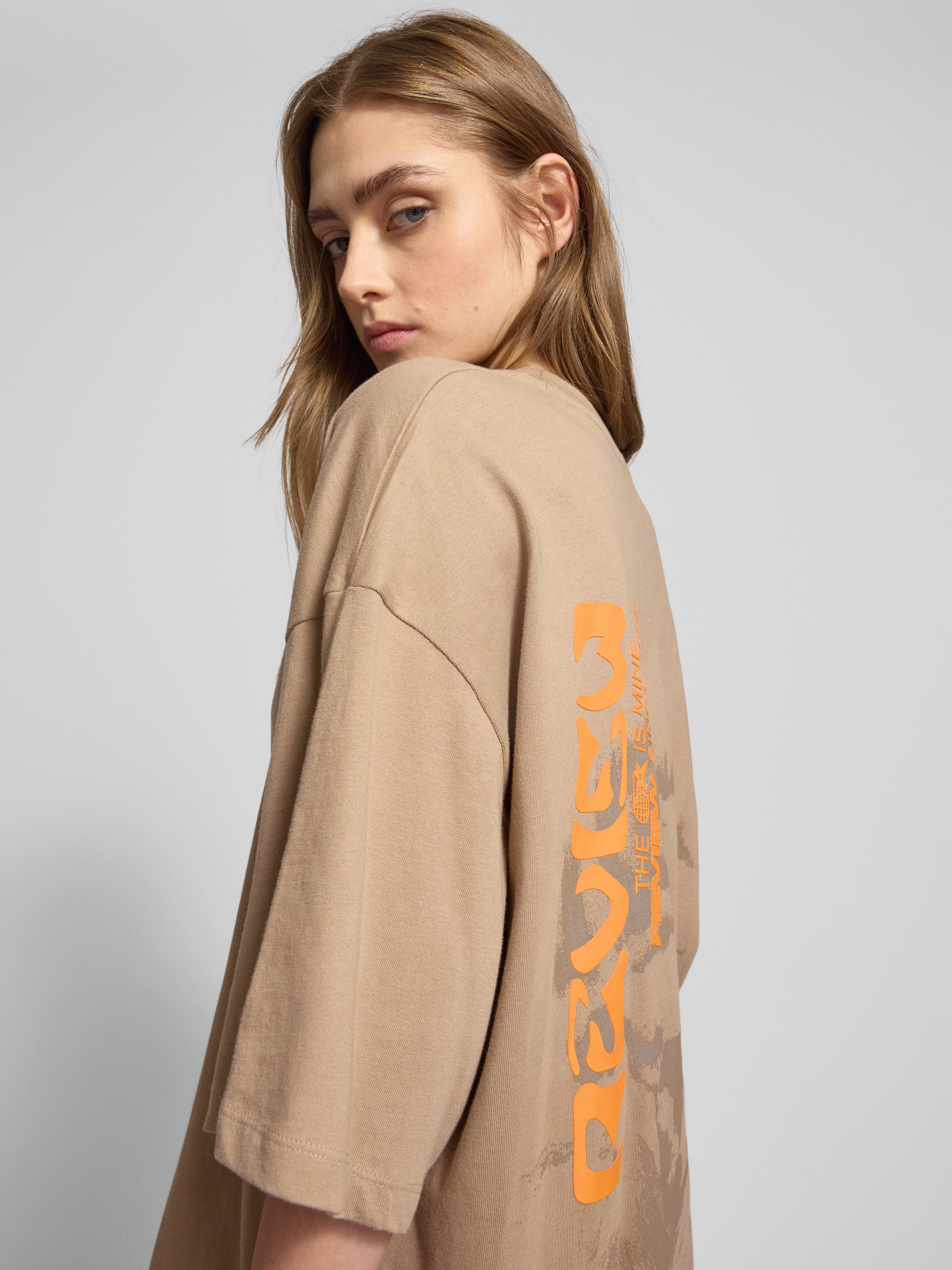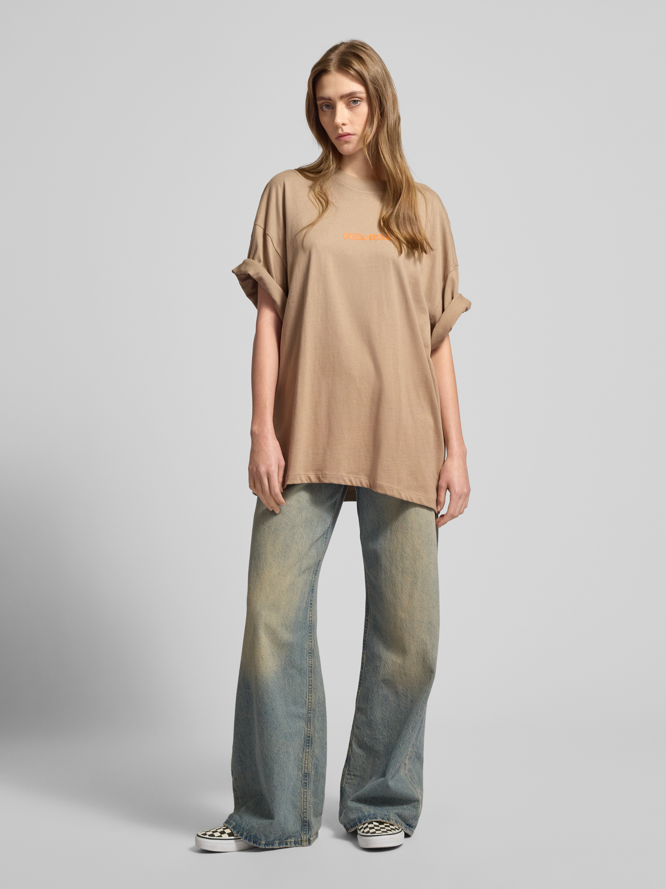 T-shirt o kroju oversized z nadrukiem z logo - szarobrązowy