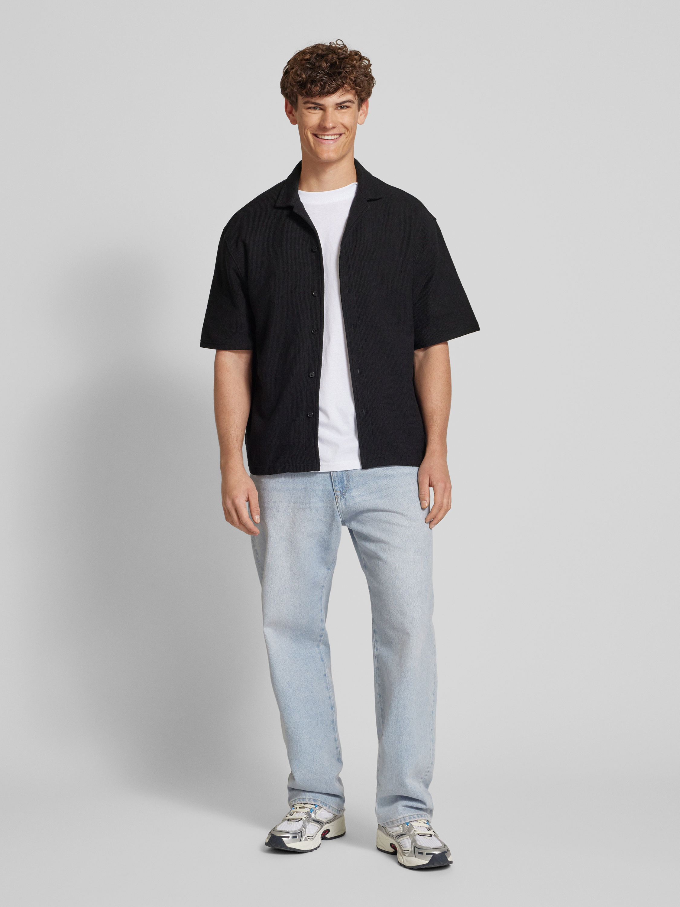 Koszula casualowa o kroju relaxed fit z fakturowanym wzorem - czarny