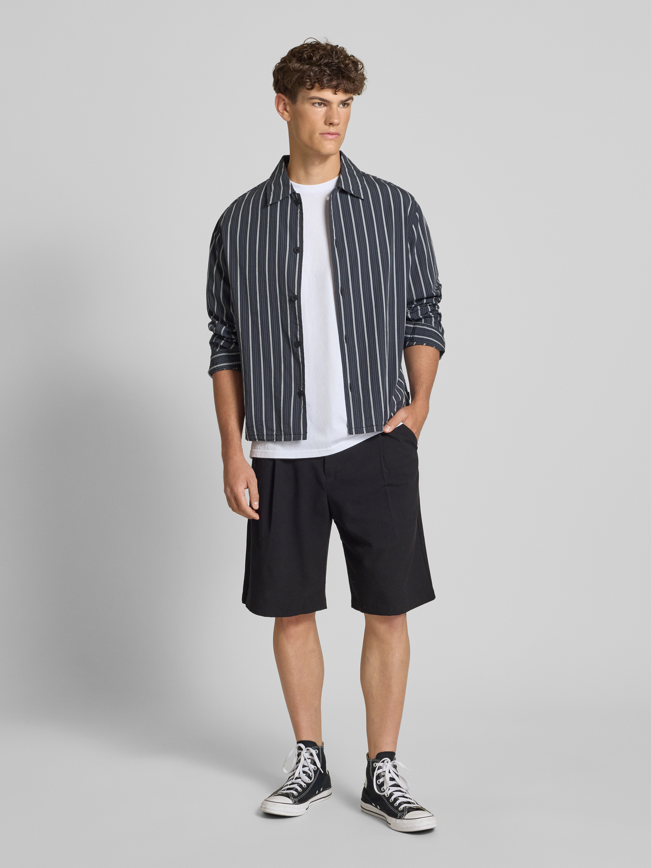 Szorty o kroju tailored fit z zakładkami w pasie