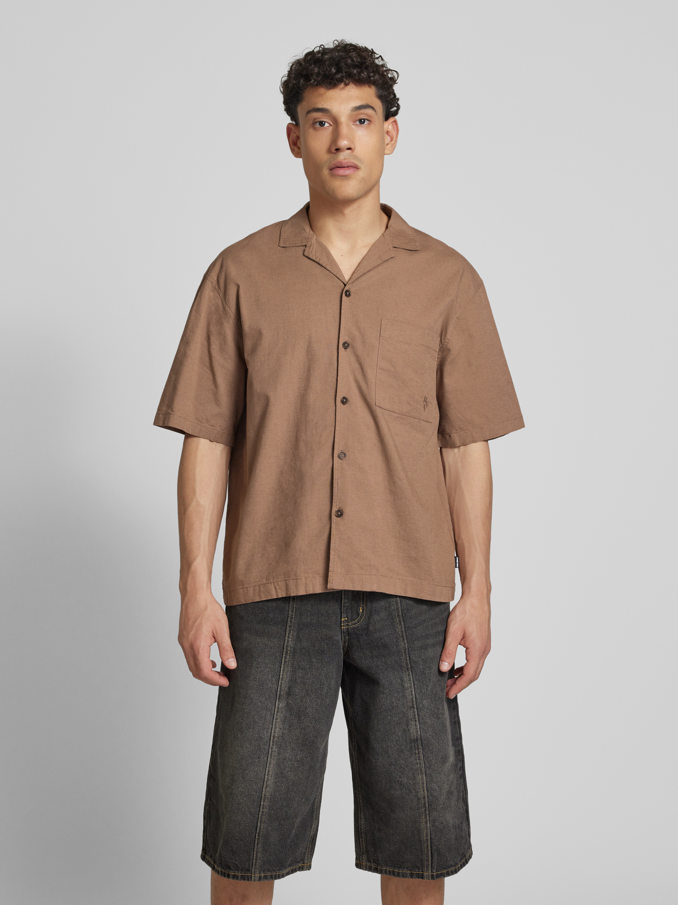 Koszula casualowa z listwą guzikową - ziemisty brązowy