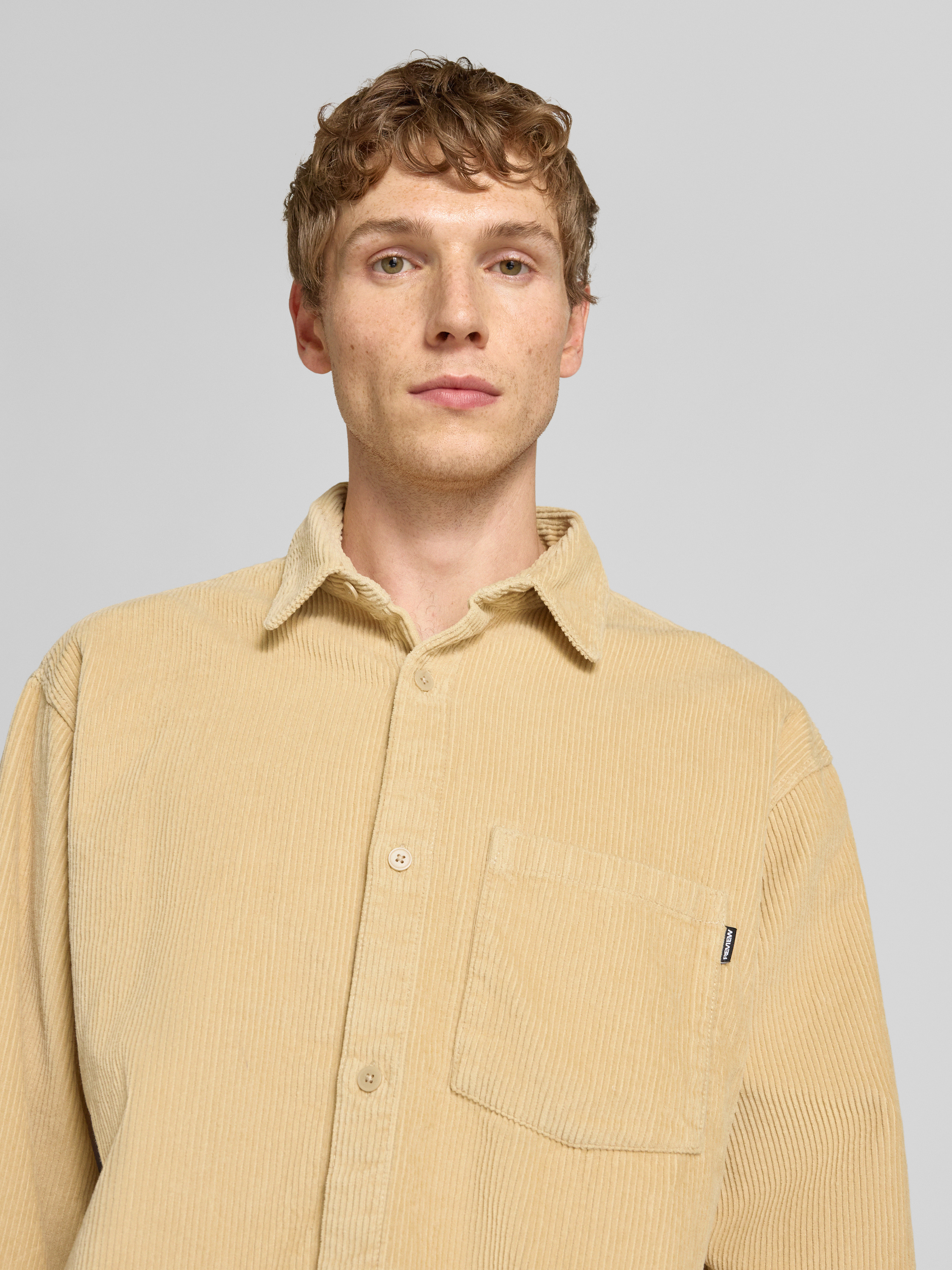 Koszula sztruksowa o kroju regular fit z detalem z logo - beżowy