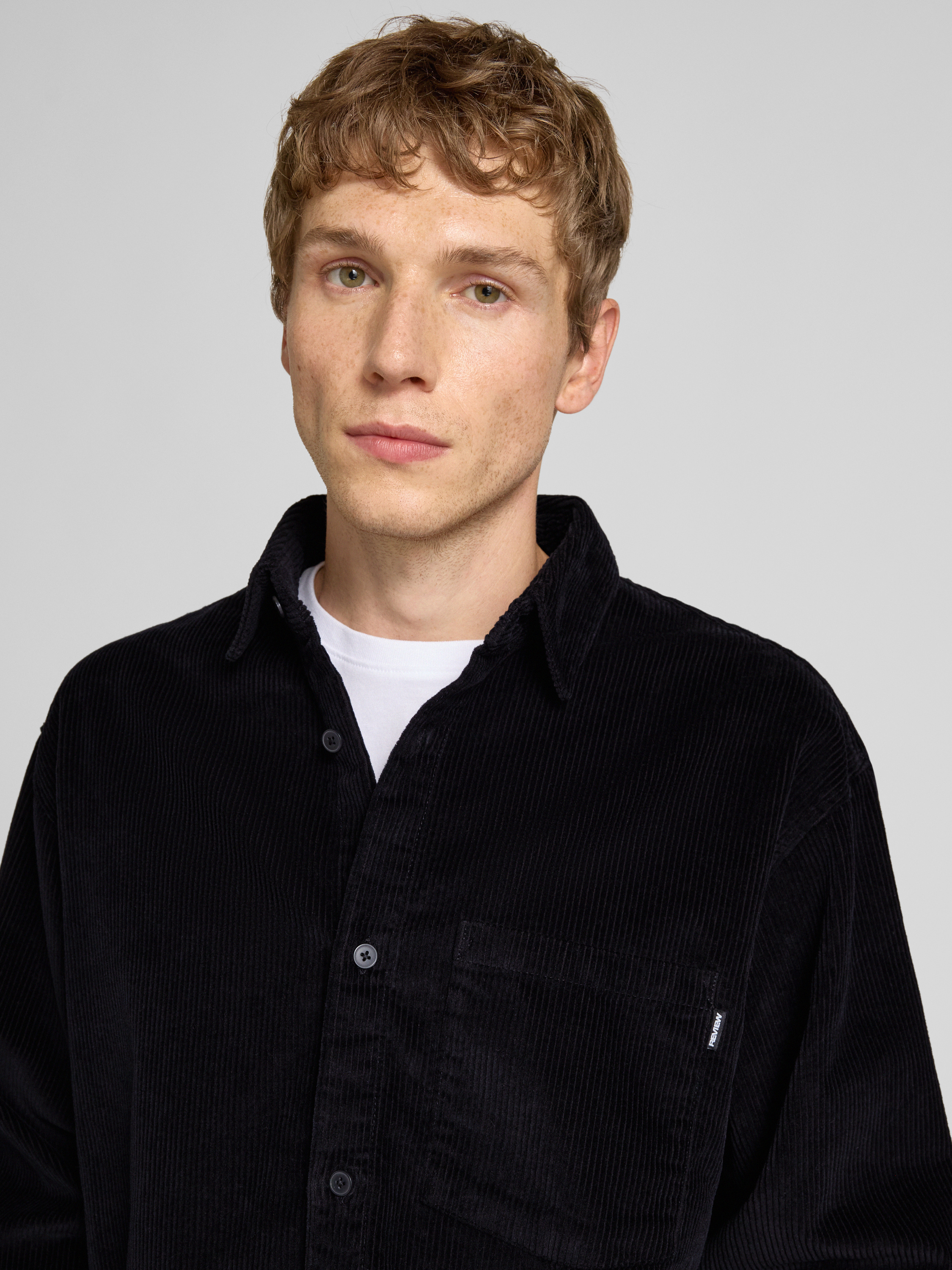 Koszula sztruksowa o kroju regular fit z detalem z logo - czarny