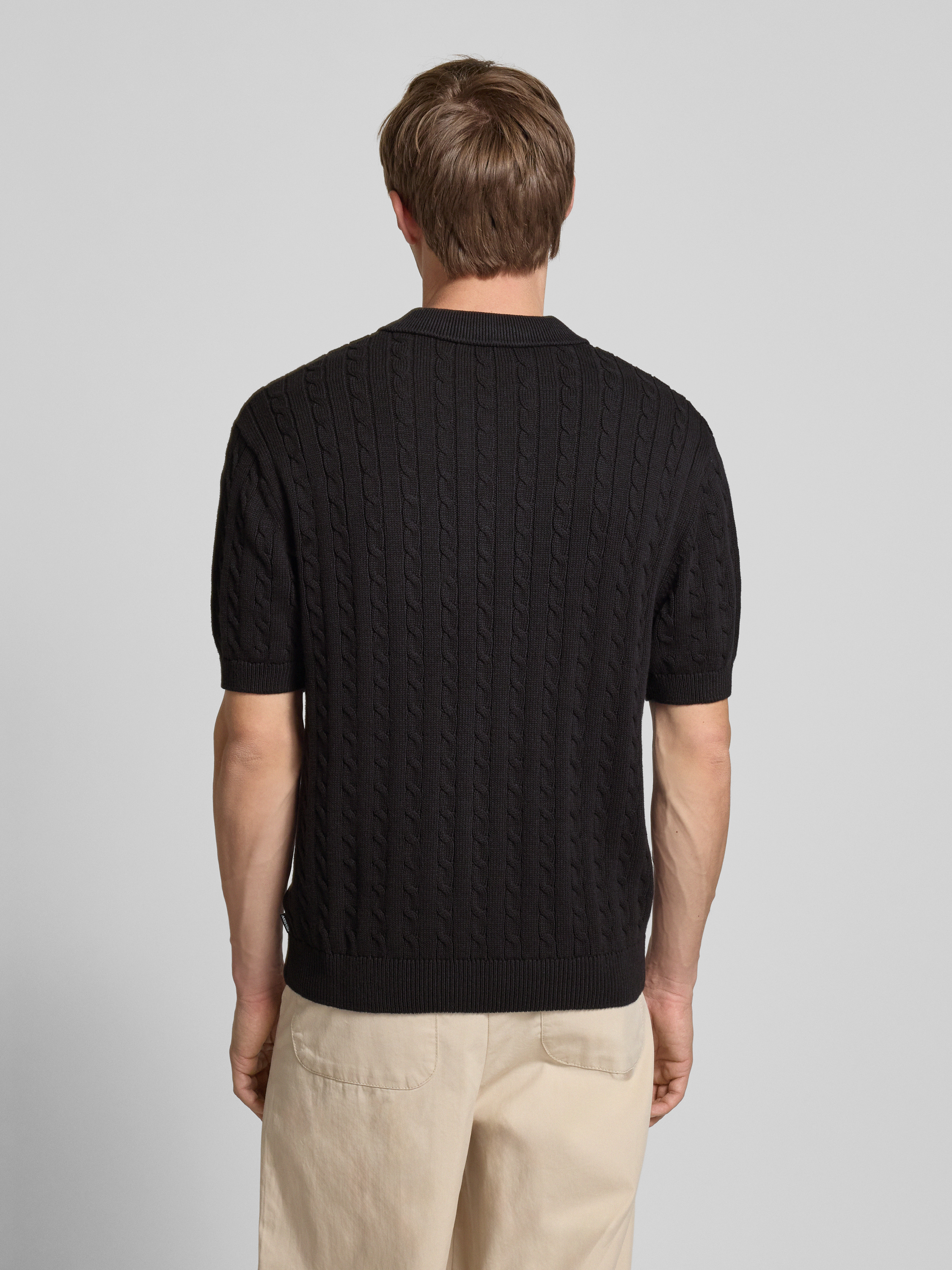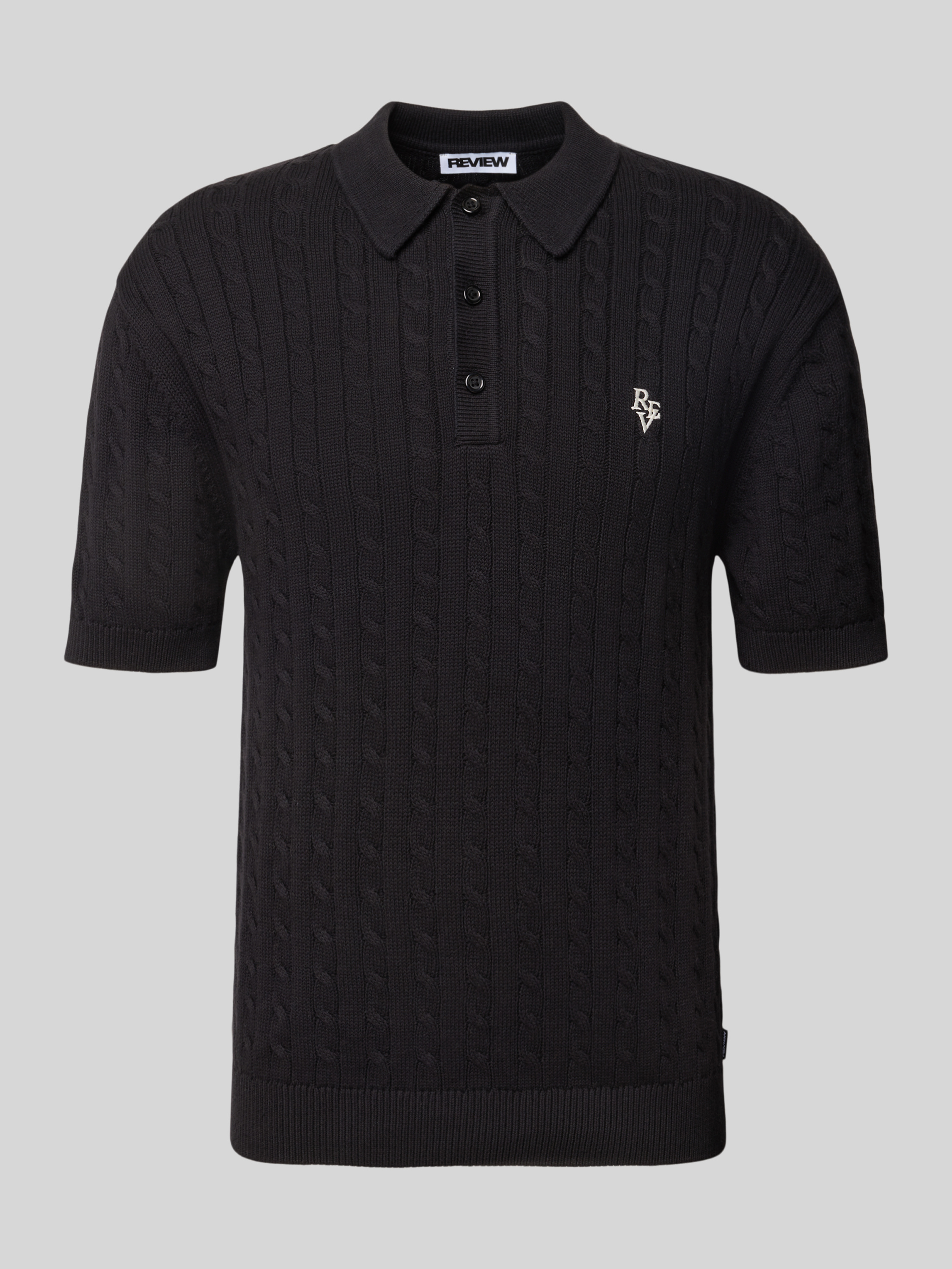 Koszulka polo o kroju slim fit ze ściegiem warkoczowym - czarny