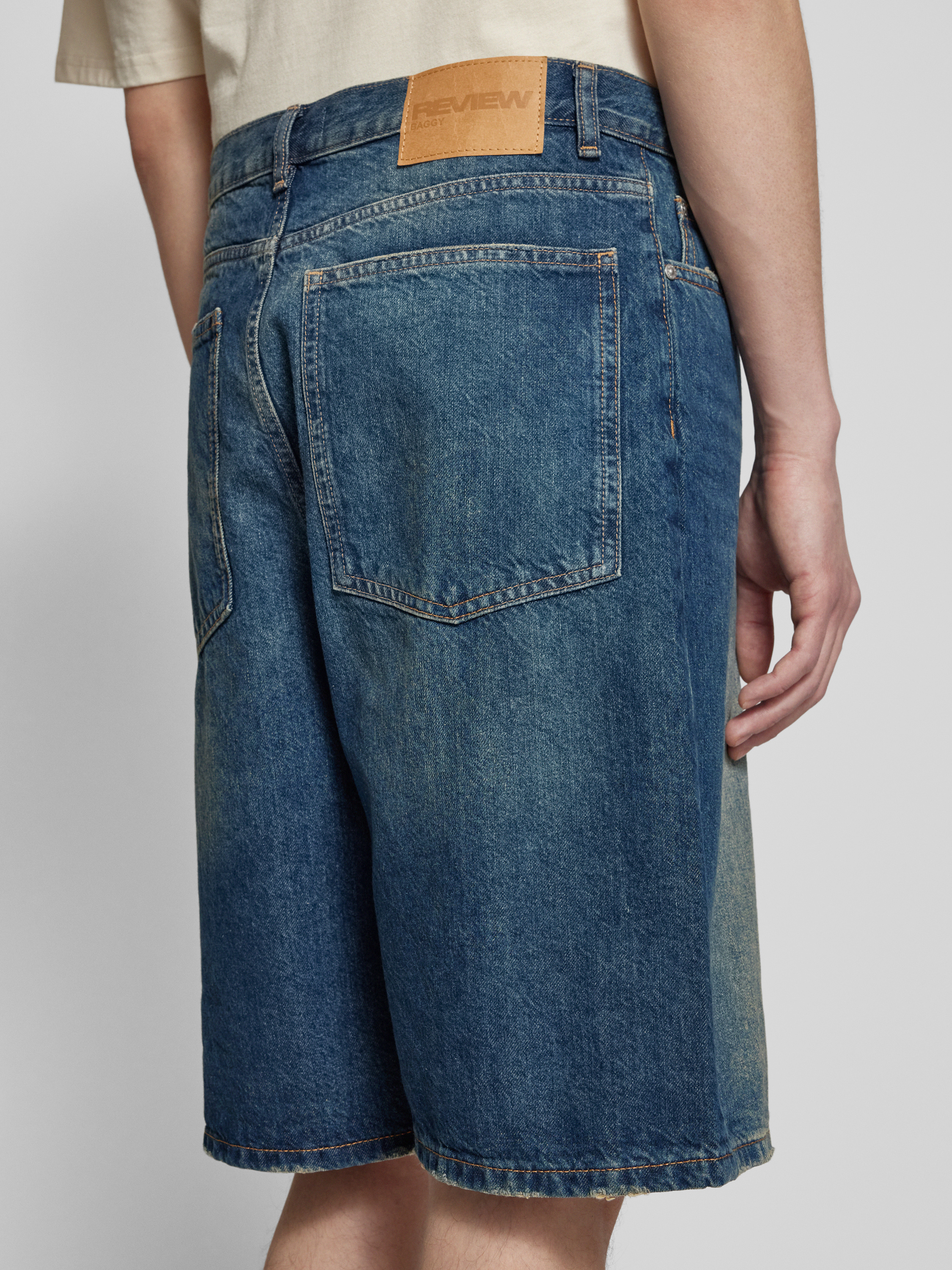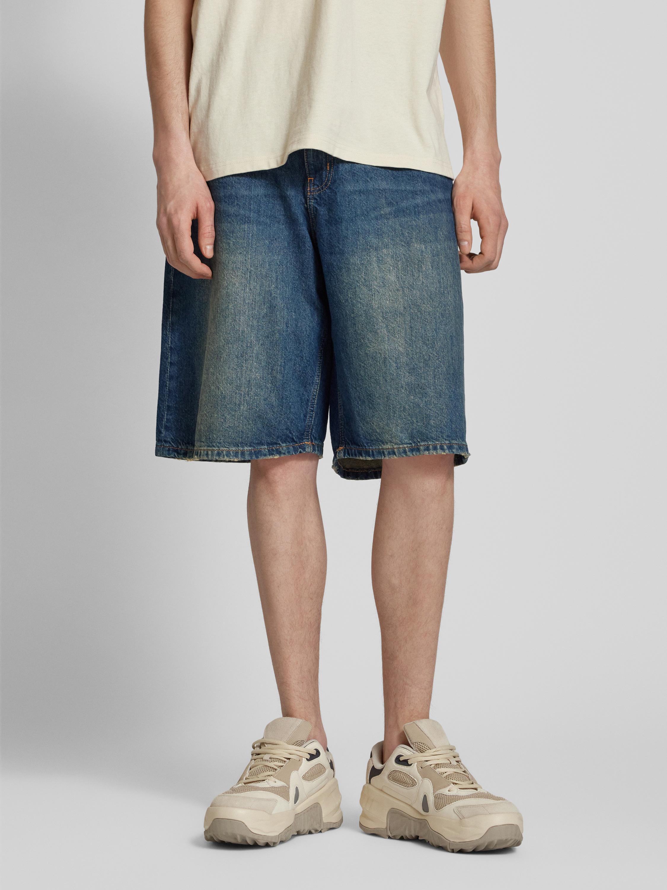 Szorty jeansowe o kroju baggy fit z 5 kieszeniami - ciemnoniebieski