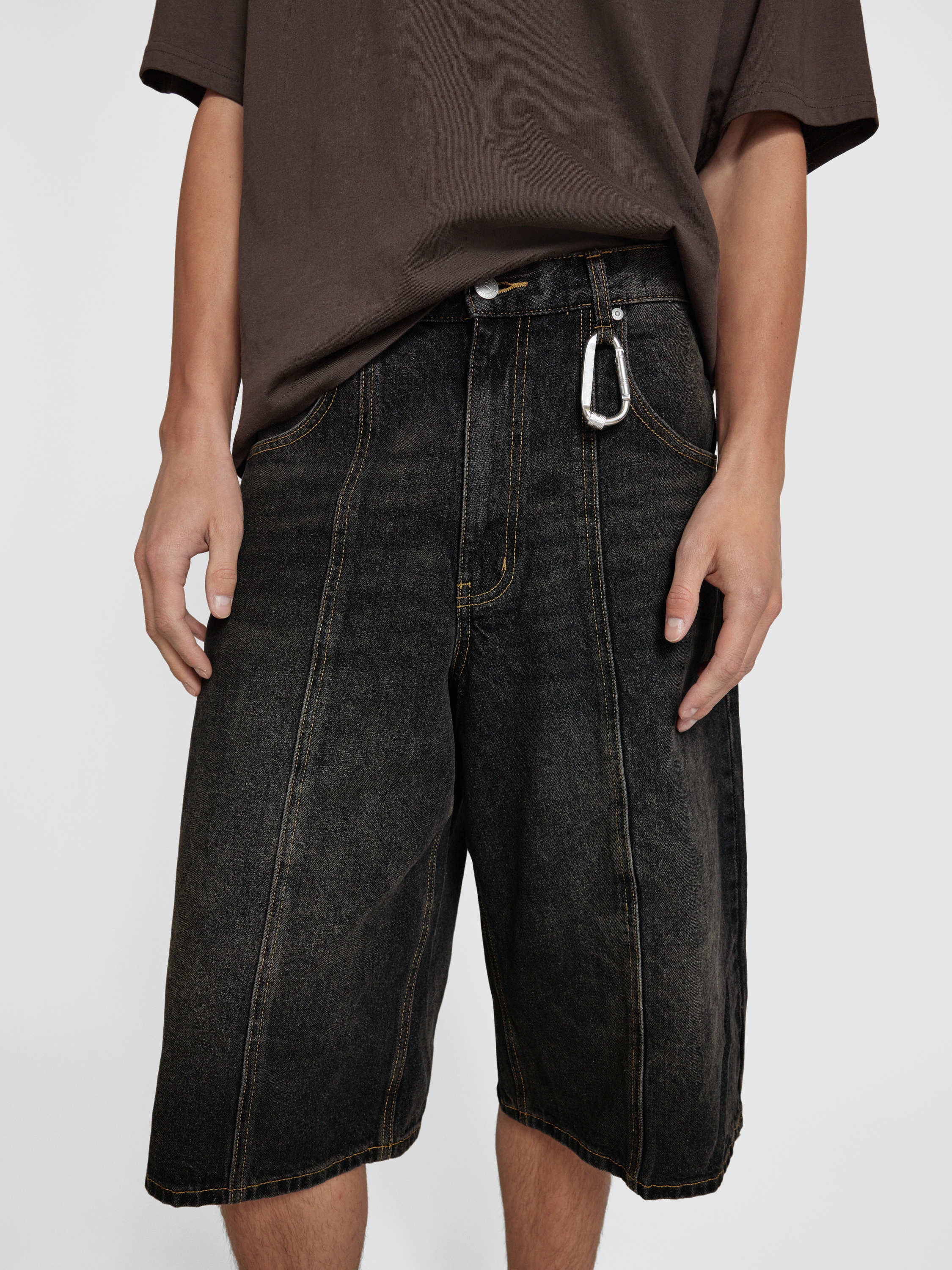 Szorty jeansowe o kroju superbaggy fit z 5 kieszeniami - czarny