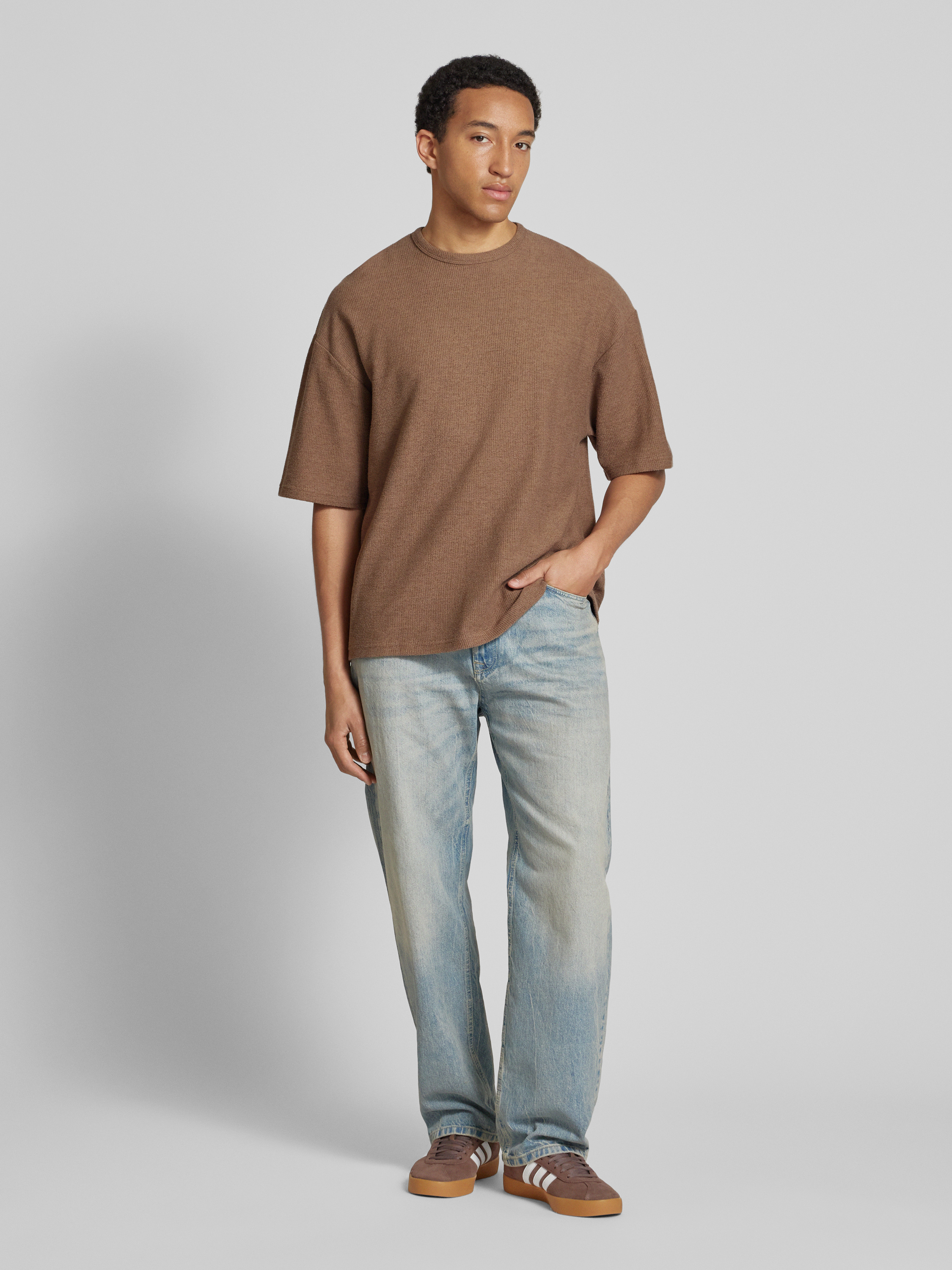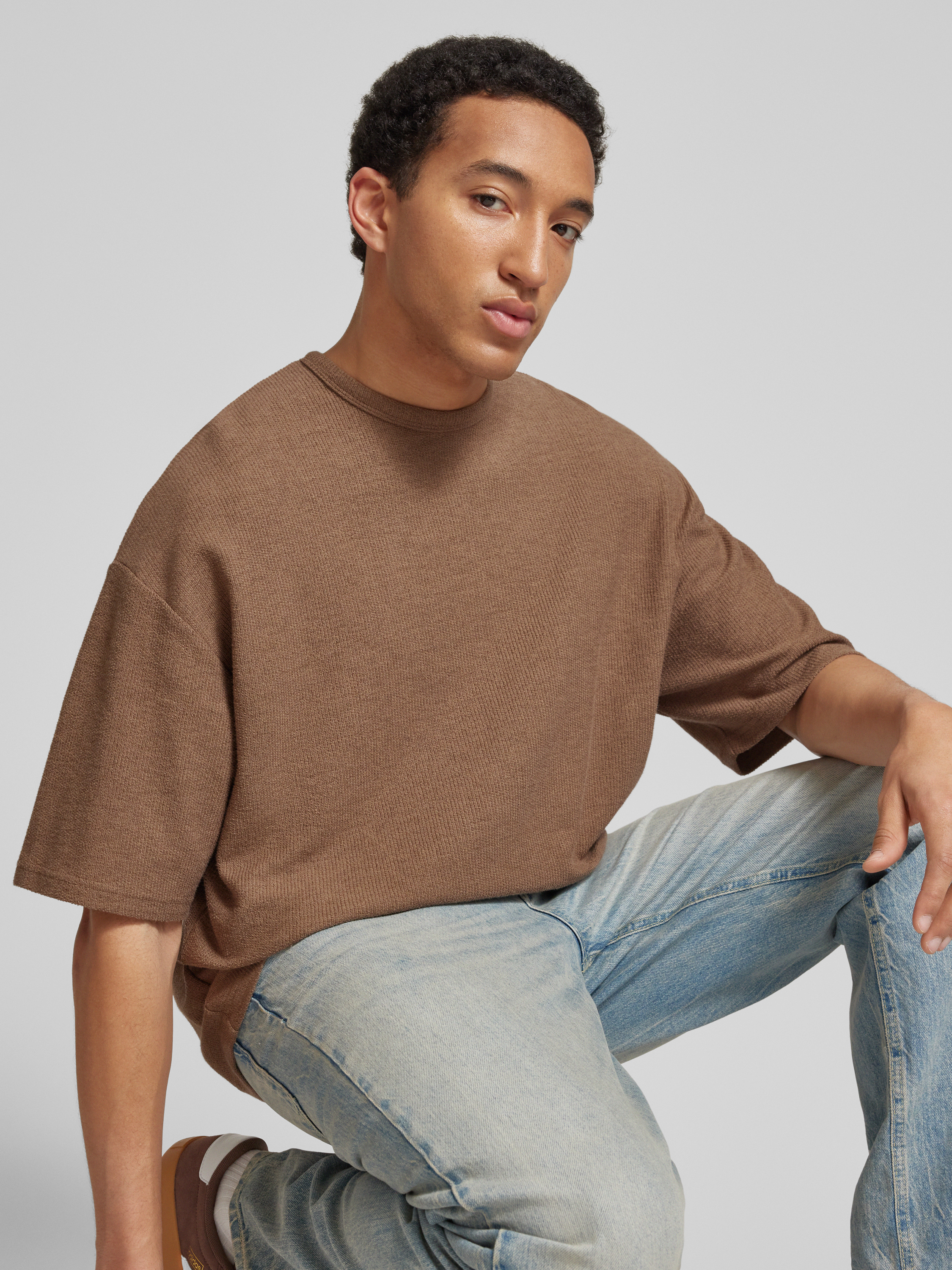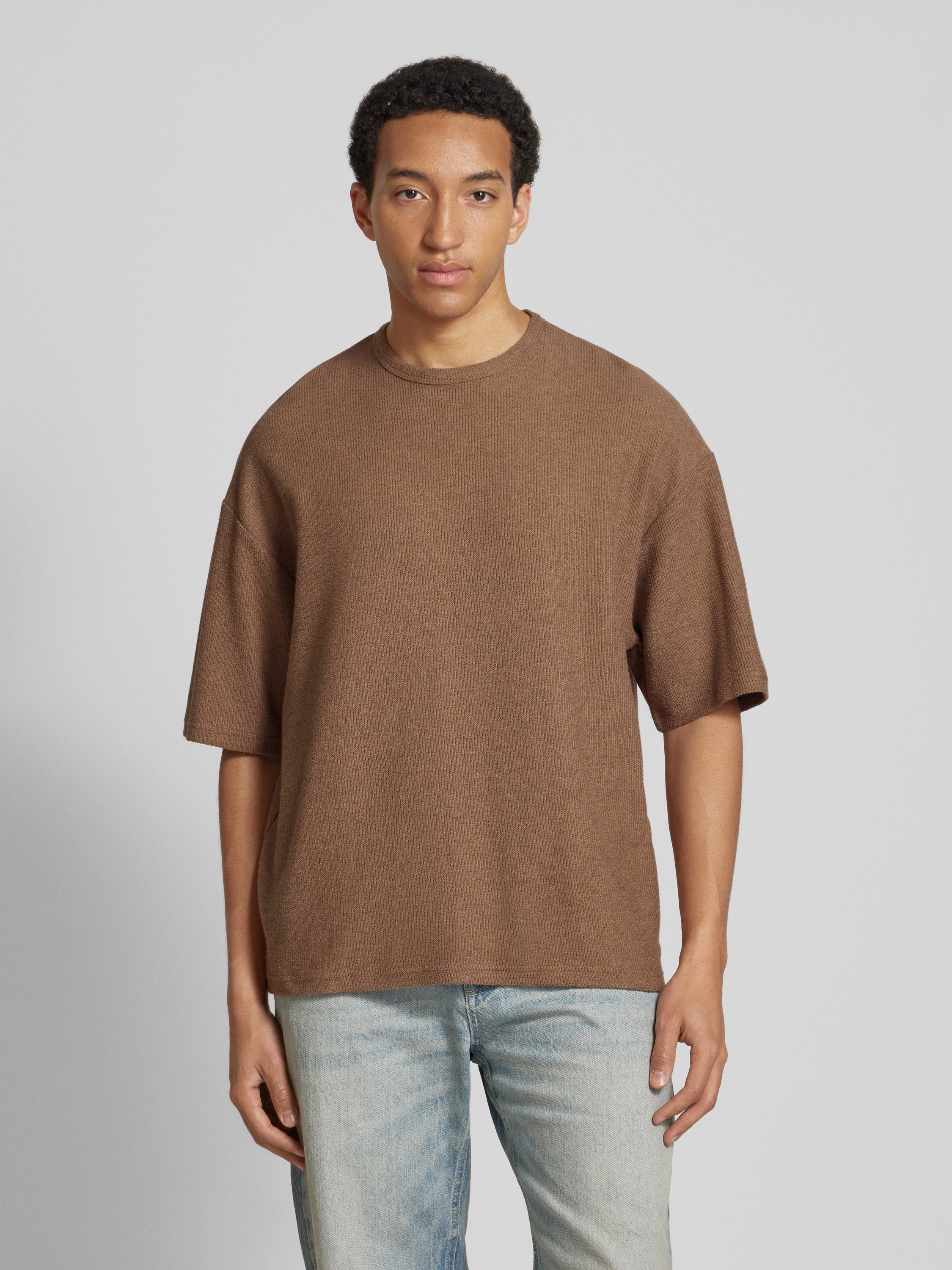T-shirt z fakturowanym wzorem - ziemisty brązowy
