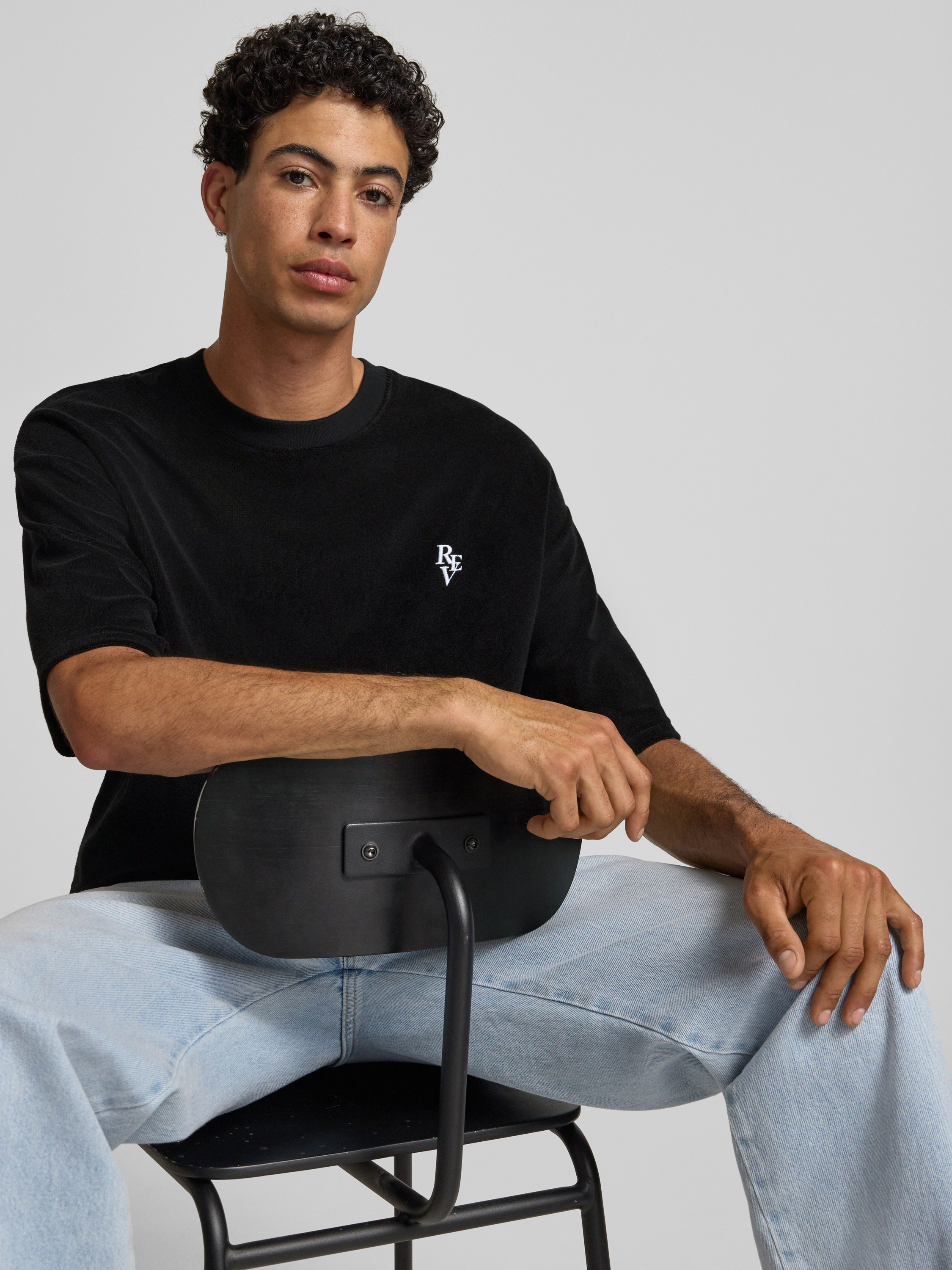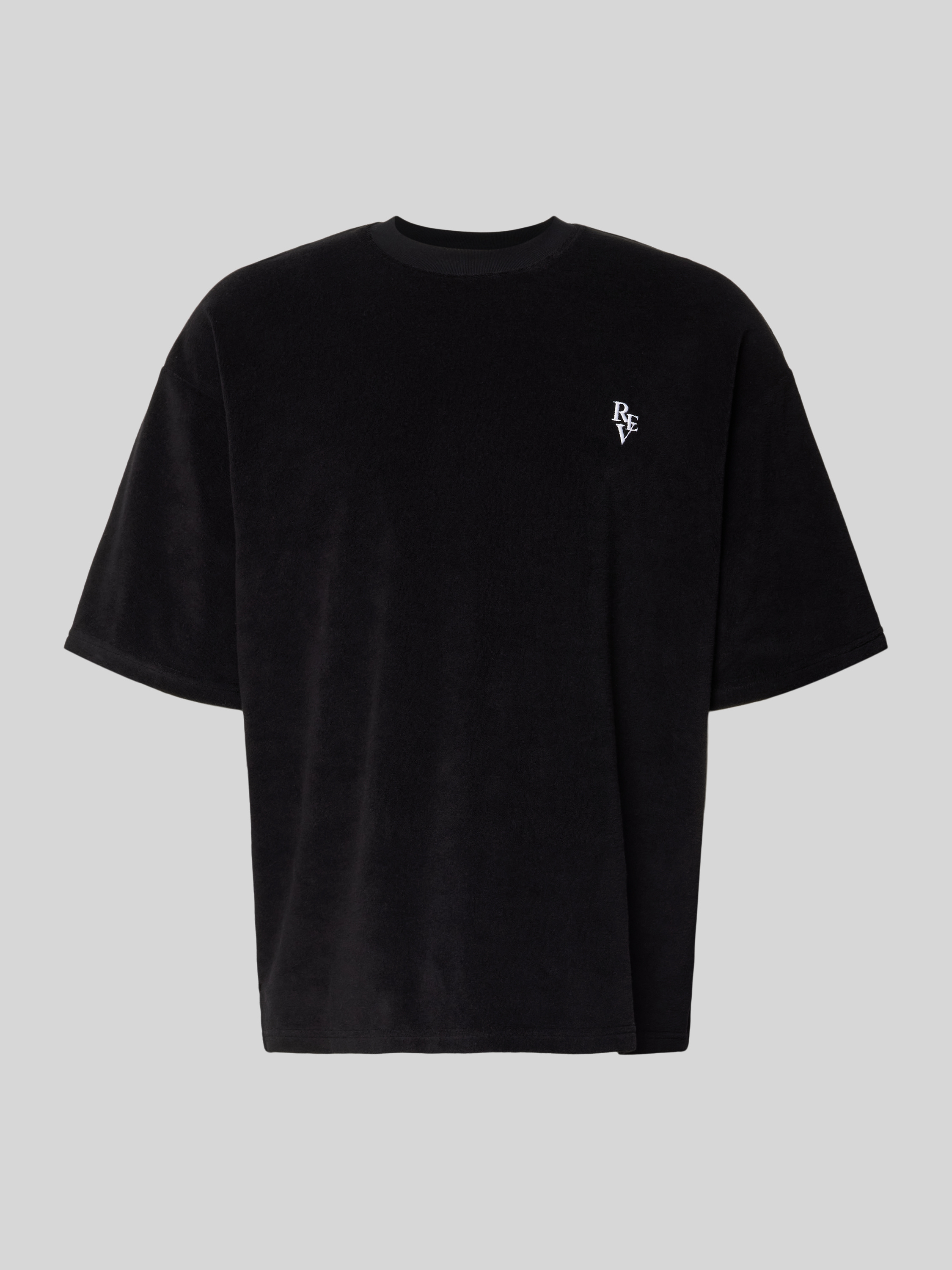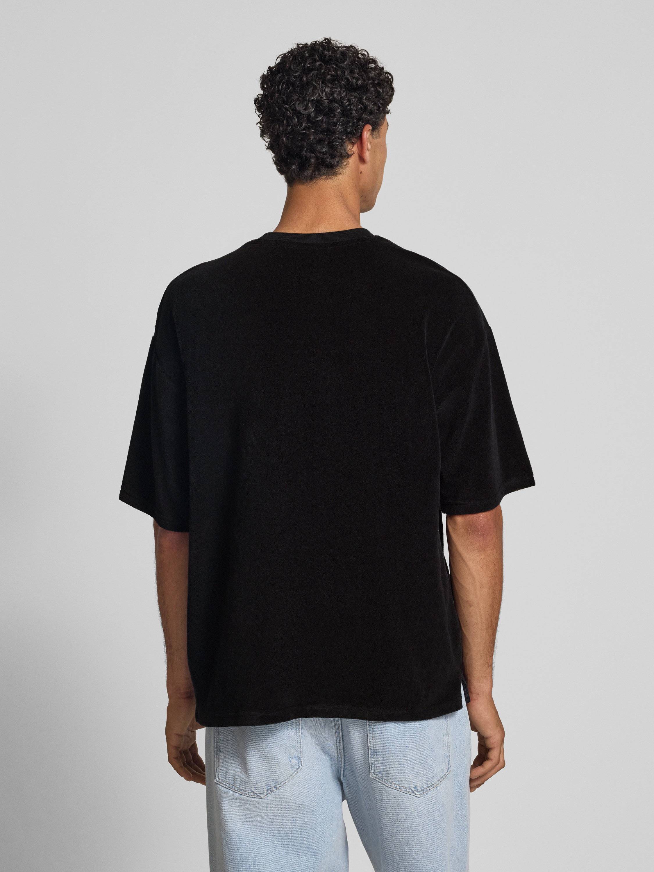T-shirt z prążkowanym okrągłym dekoltem - czarny